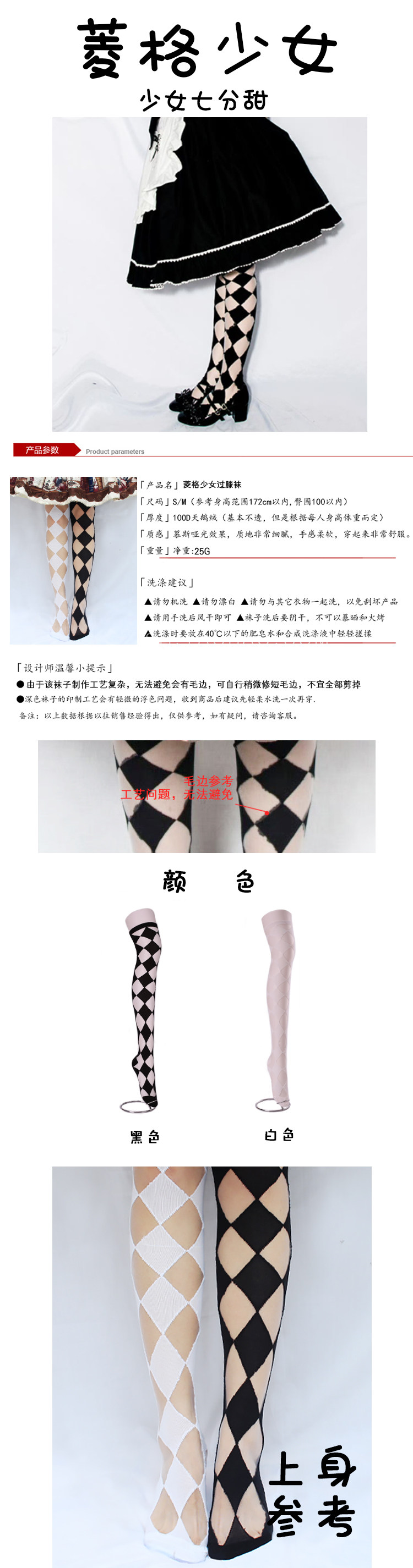 少女七分甜 原创菱格少女夏季薄透百搭菱格水晶玻璃lolita过膝袜 [Original Page Link]