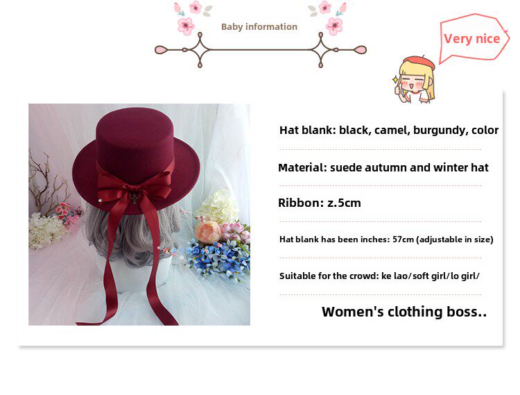一顶洛丽塔平顶宽边秋冬羊毛帽子英国覆古同性恋绅士礼服帽 [Original Page Link]