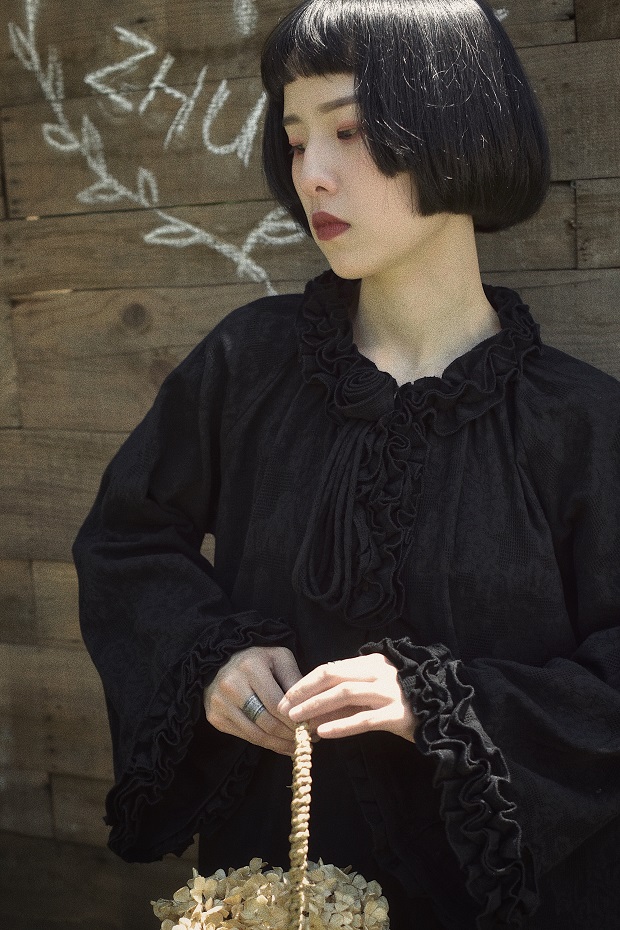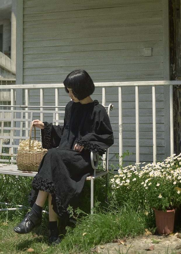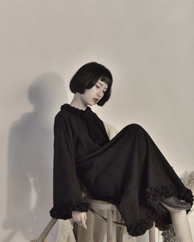 然而和风原创设计小黑裙覆古少女暗黑色山本洋装女新款春秋裙子 [Original Page Link]
