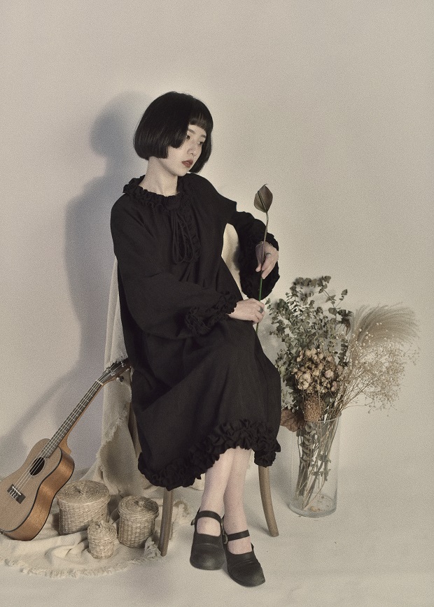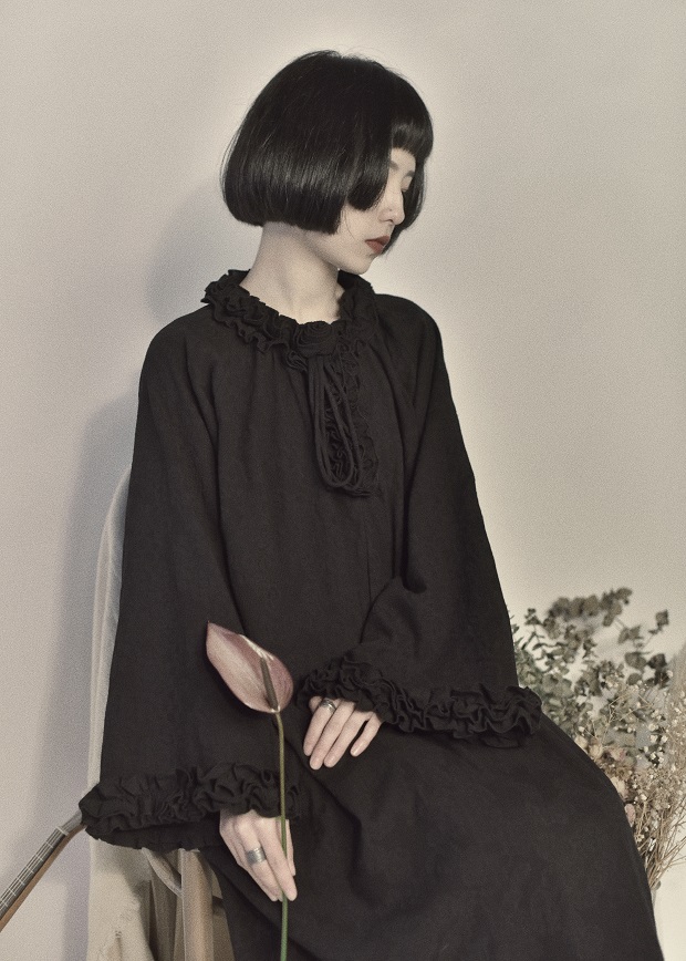 However, the Japanese style original design little black dress covers the ancient girl's dark black Yamamoto dress female new spring and autumn skirt