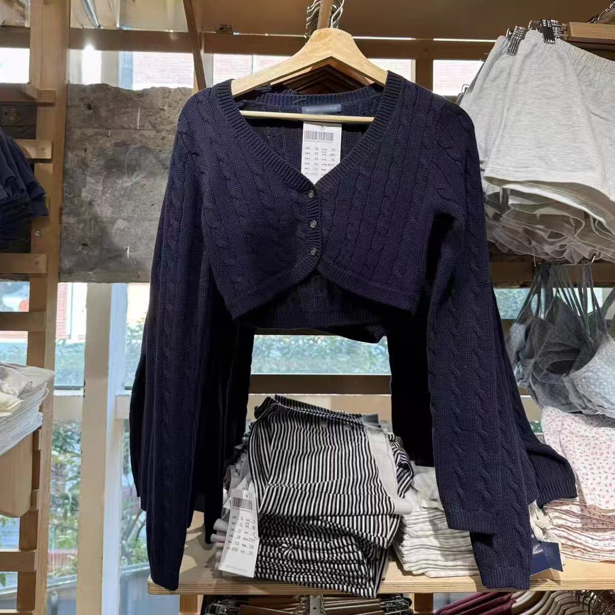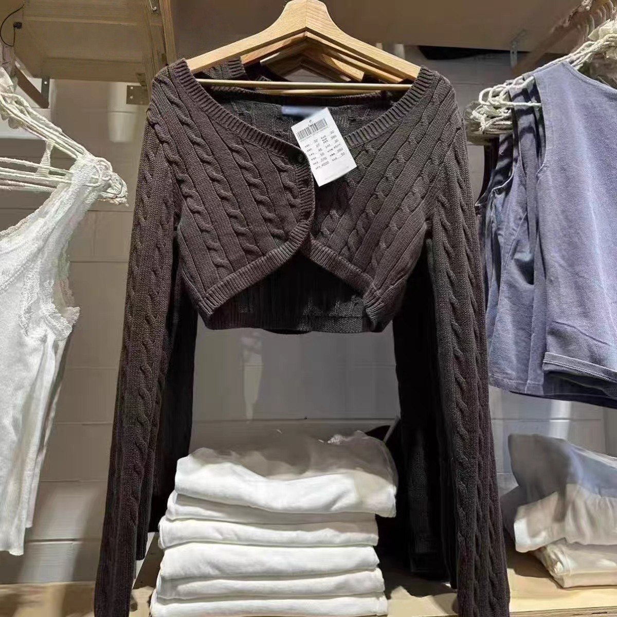 Brandy BM3粒扣V领短款麻花针织开衫bm叠穿上衣毛衣zoa Cardigan [Original Page Link]