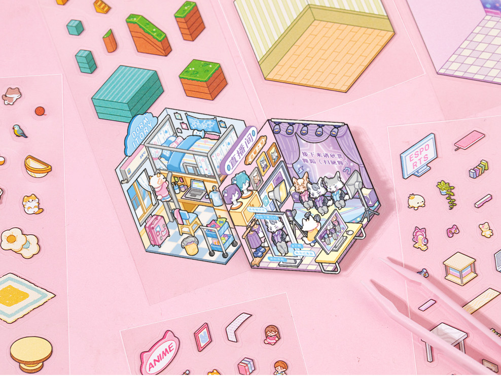 语闲掌心迷你微缩场景合集本造景贴纸本叠堆立体微缩小屋解压贴画 [Original Page Link]