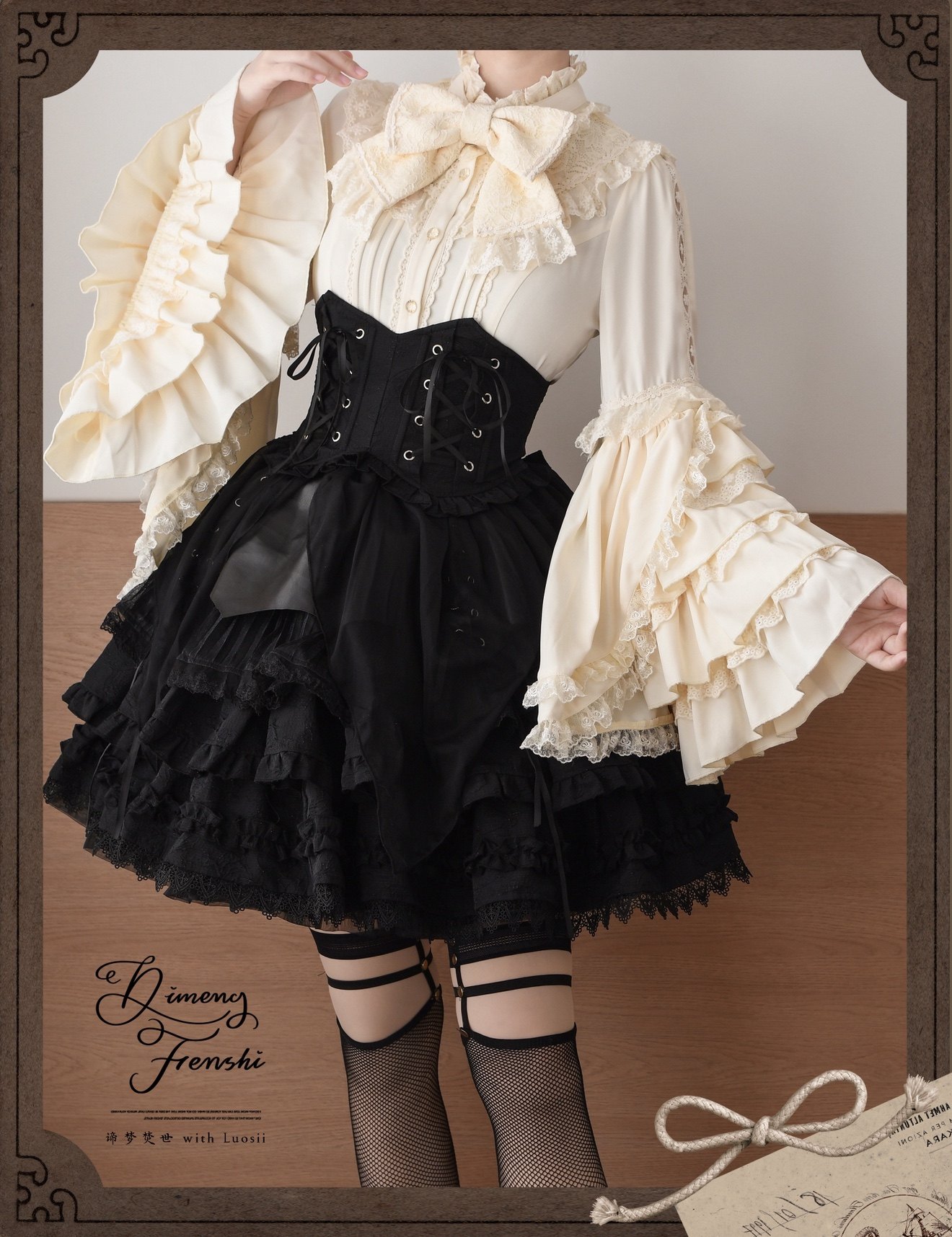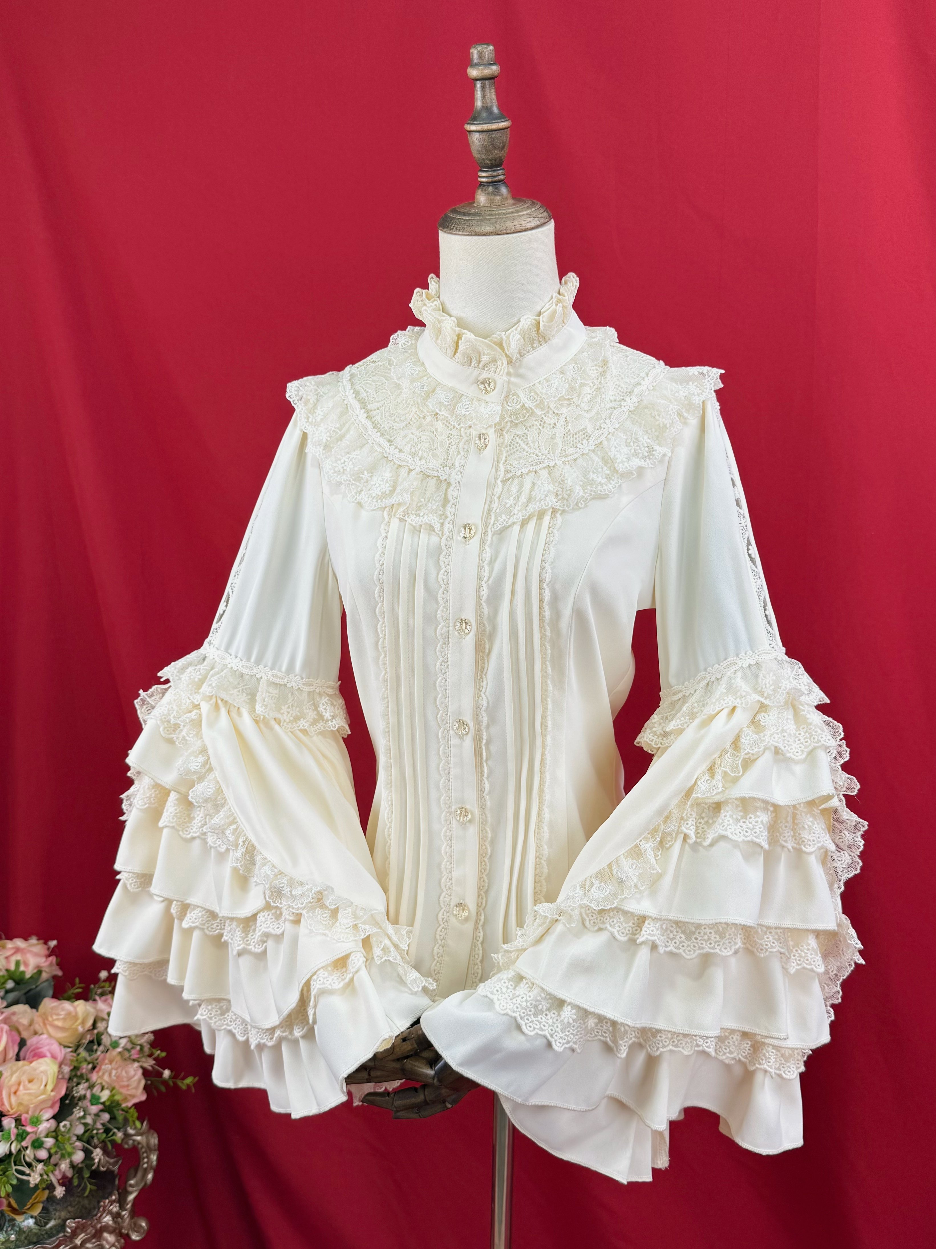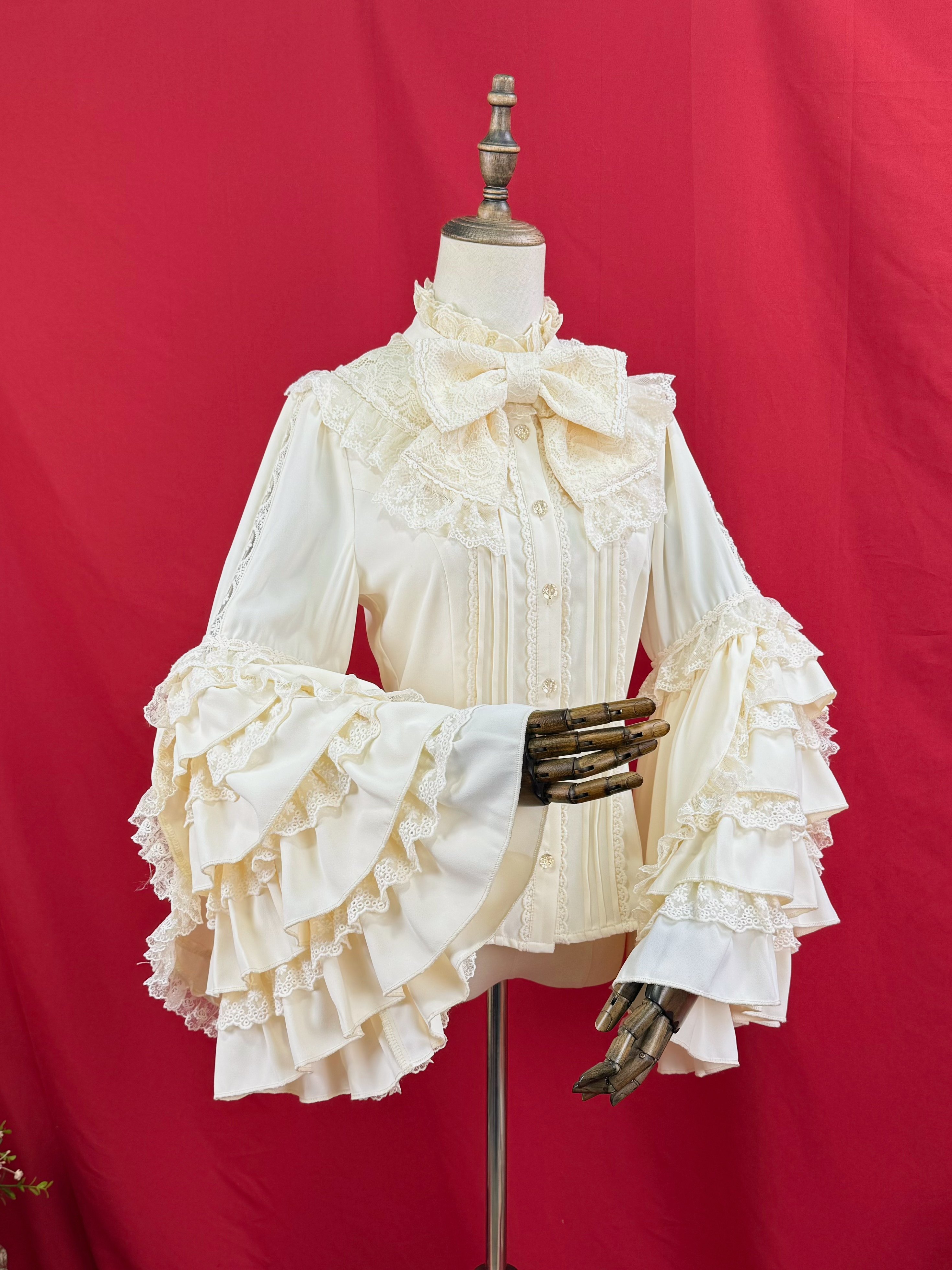 全款【雪媚娘】原创lolita洋装立领衬衫大姬袖复古修身内搭上衣 [Original Page Link]
