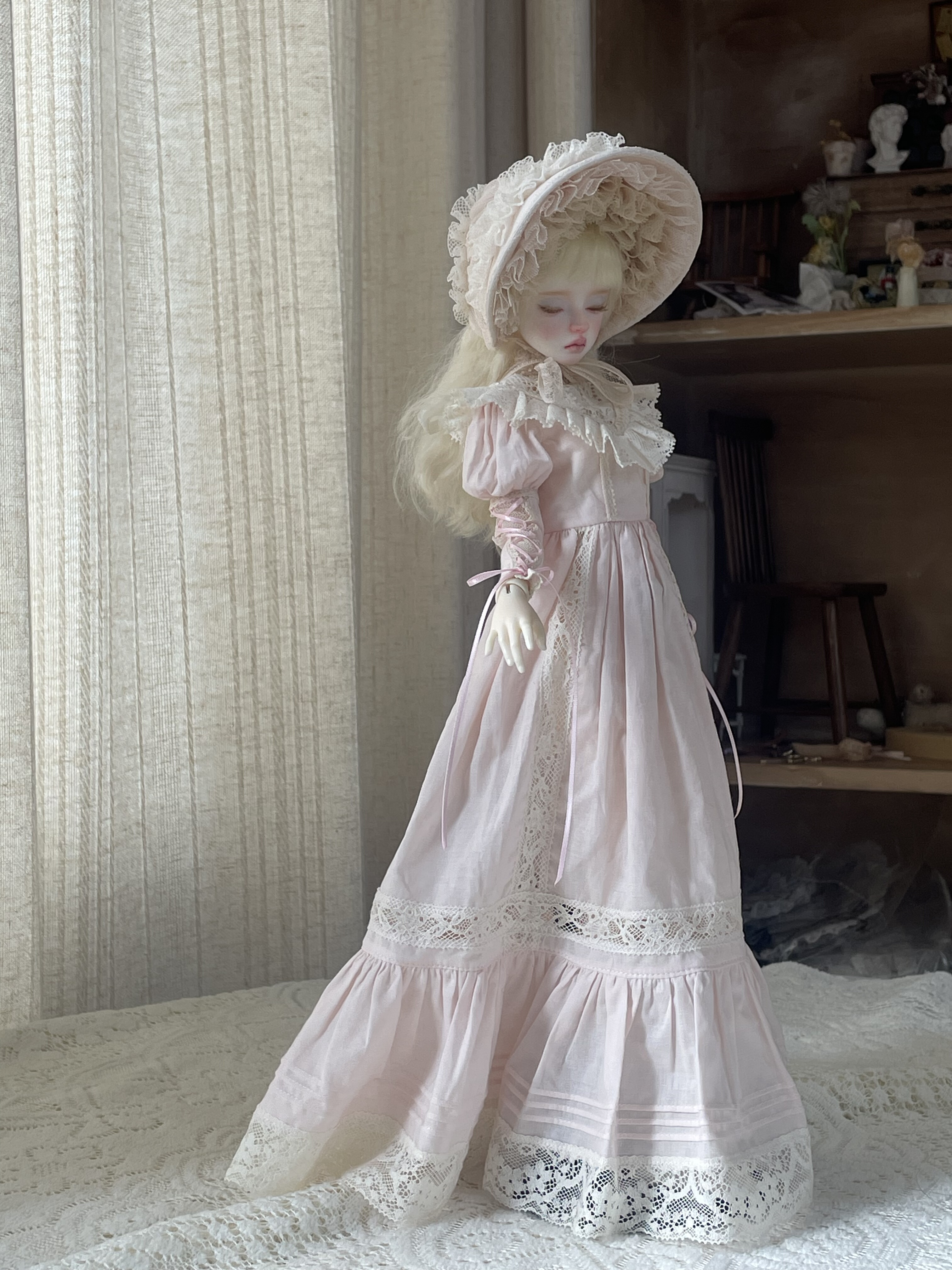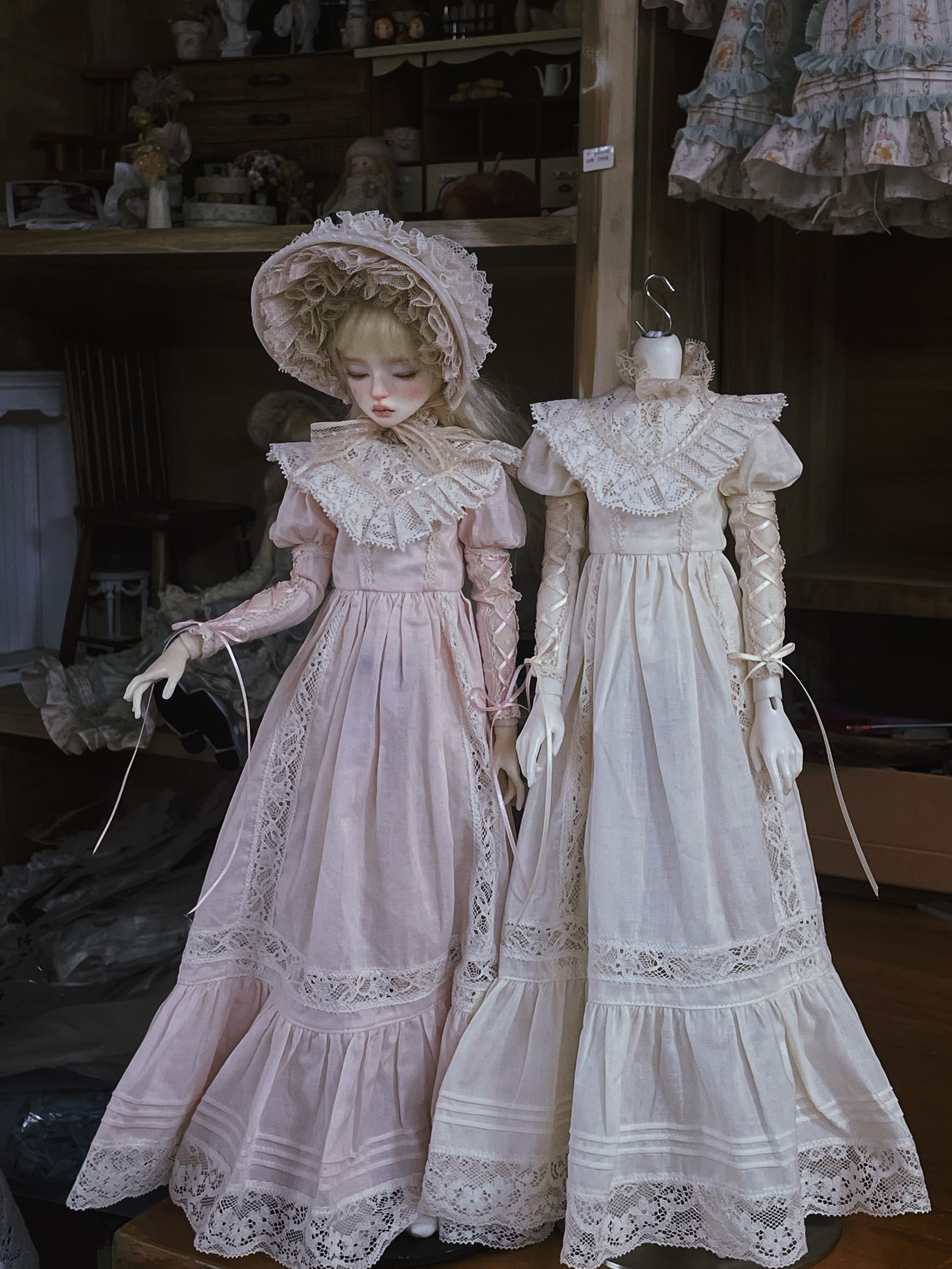 古董蕾丝裙成衣 单裙 bjd娃衣 小布娃衣 伯奈特帽 [Original Page Link]