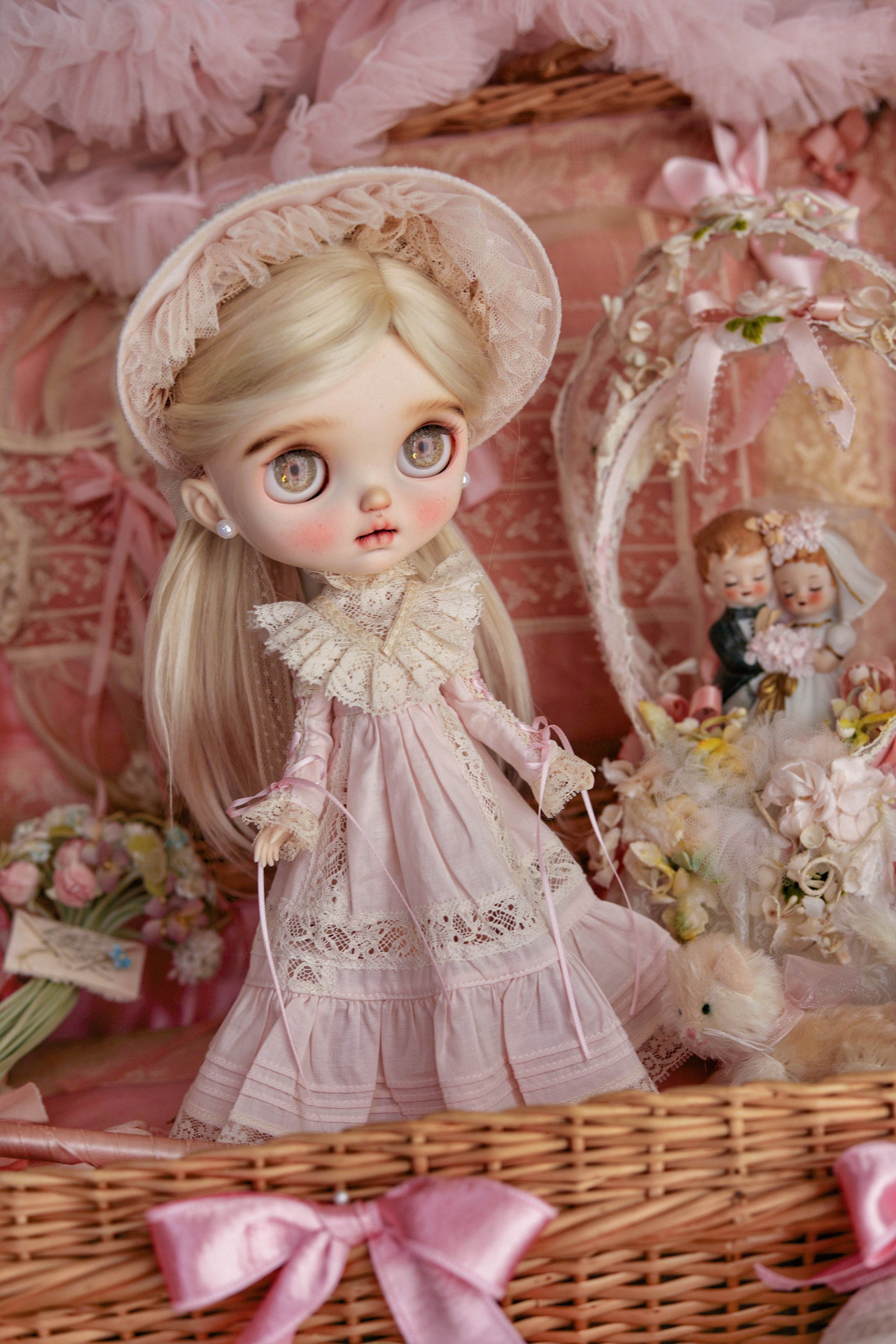 Vintage lace dress, ready-to-wear skirt, BJD doll clothes, little rag doll clothes, Bernette hat