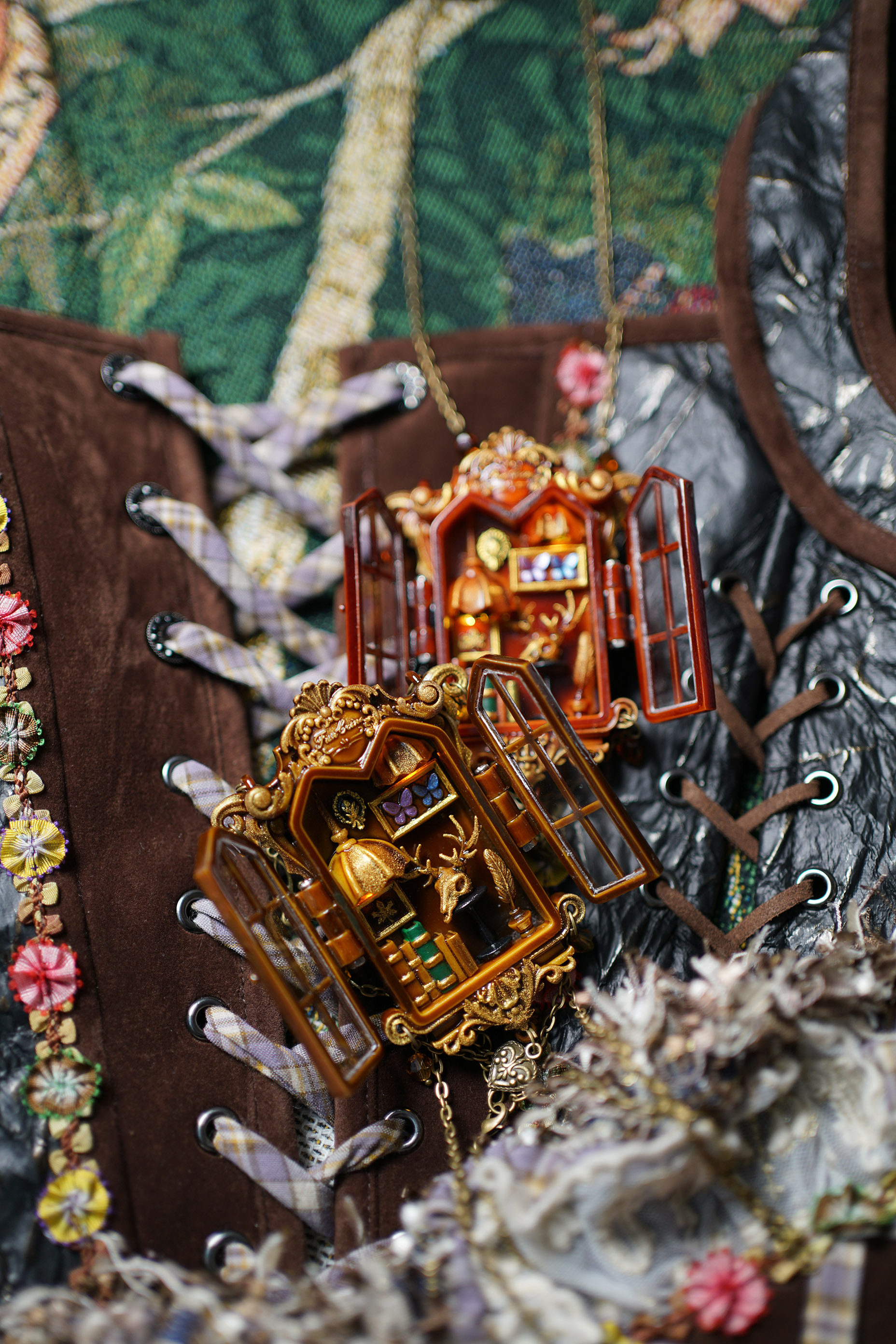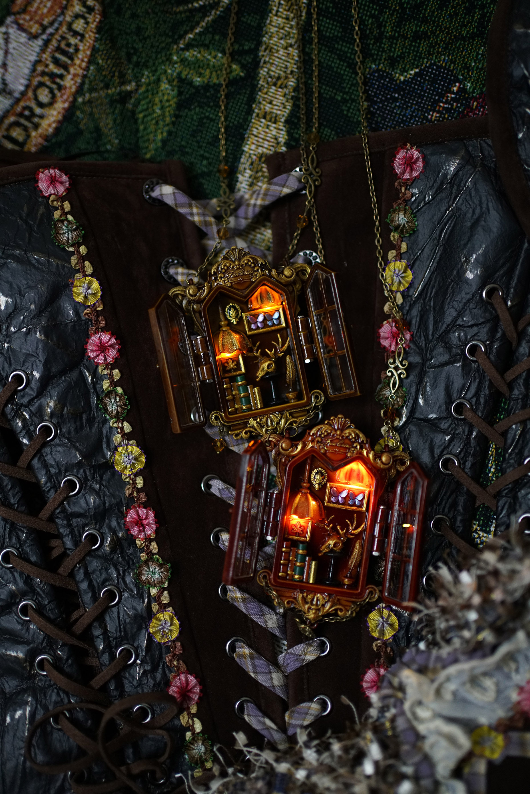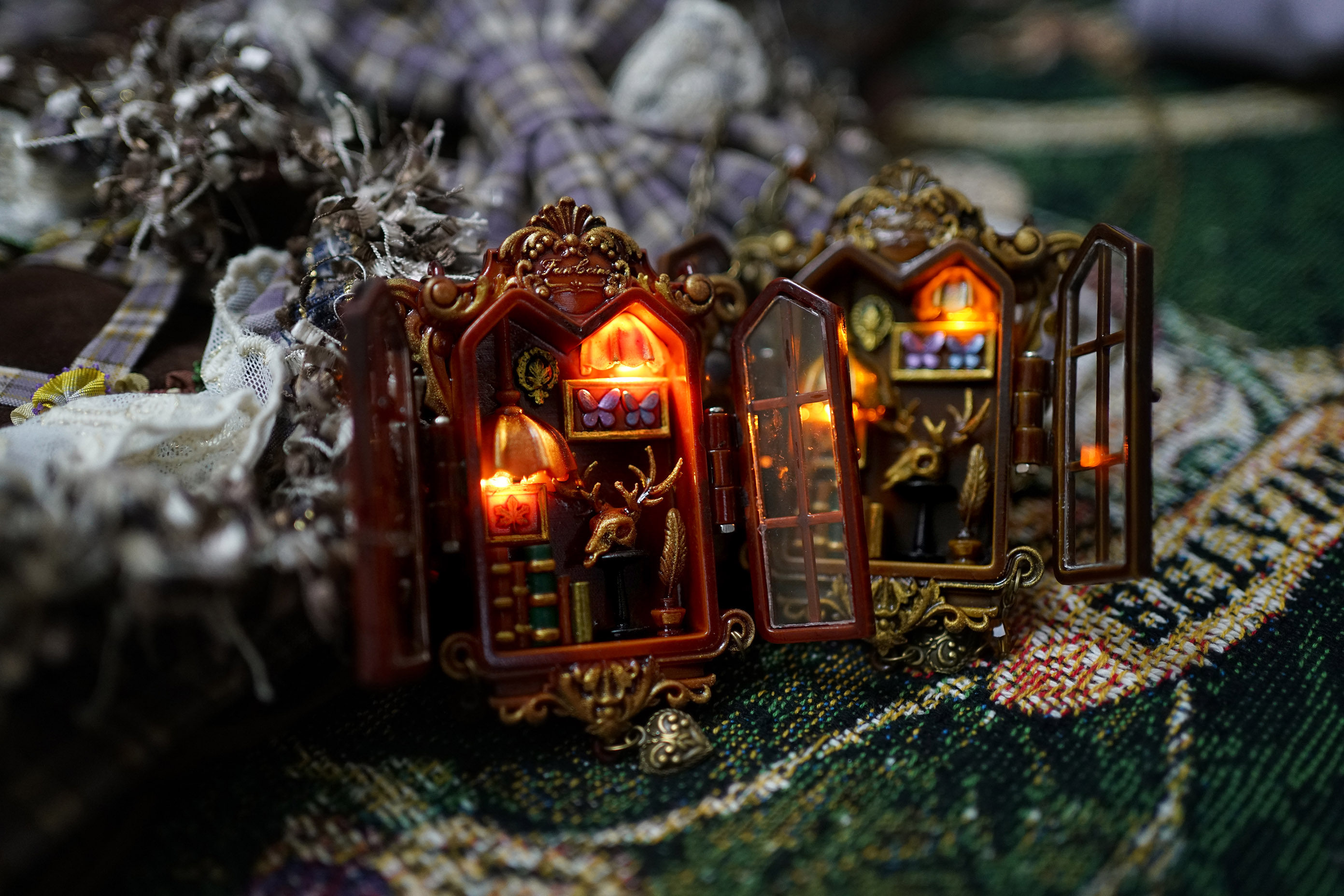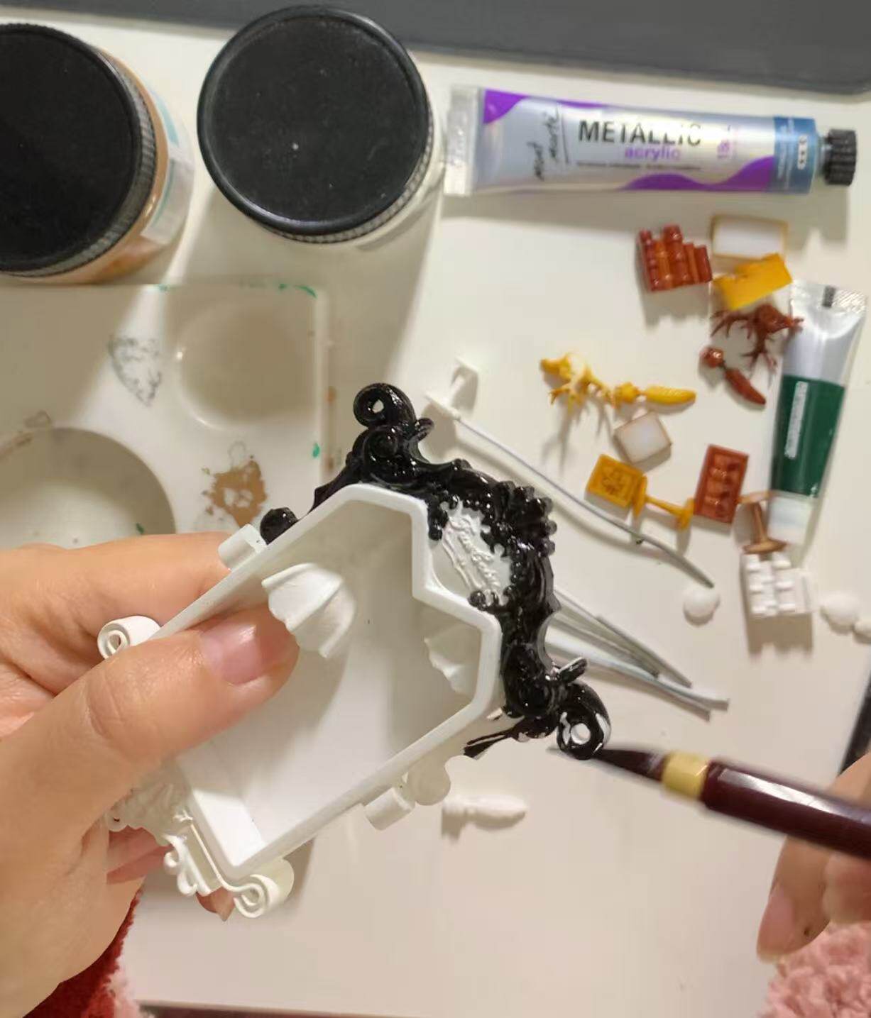 项链主体为手工上色,会有不均匀和笔触痕迹,有些小零件会粘蓝丁胶固定在木棍上进行上色,会留下一些痕迹(背盖的印子比较大),窗框会有胶水的痕迹,合页连接处安装螺丝测试的时候有脱漆,补漆后会出现不均匀的色块,放电池的背盖里面颜料堆积太厚导致合不上,后期用刮刀刮掉了(外观看不到,不属于瑕疵)。一个链接对应一个项链,可以放大图片查看细节,拍下即默认上述手工小瑕疵。
