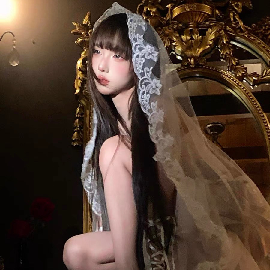 万圣节头饰cos鬼新娘复古白色蕾丝花边头纱结婚装扮拍照道具发饰 [Original Page Link]