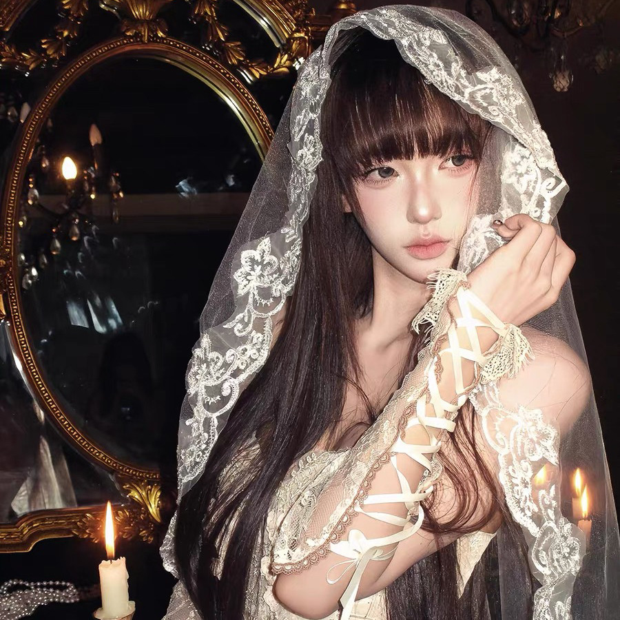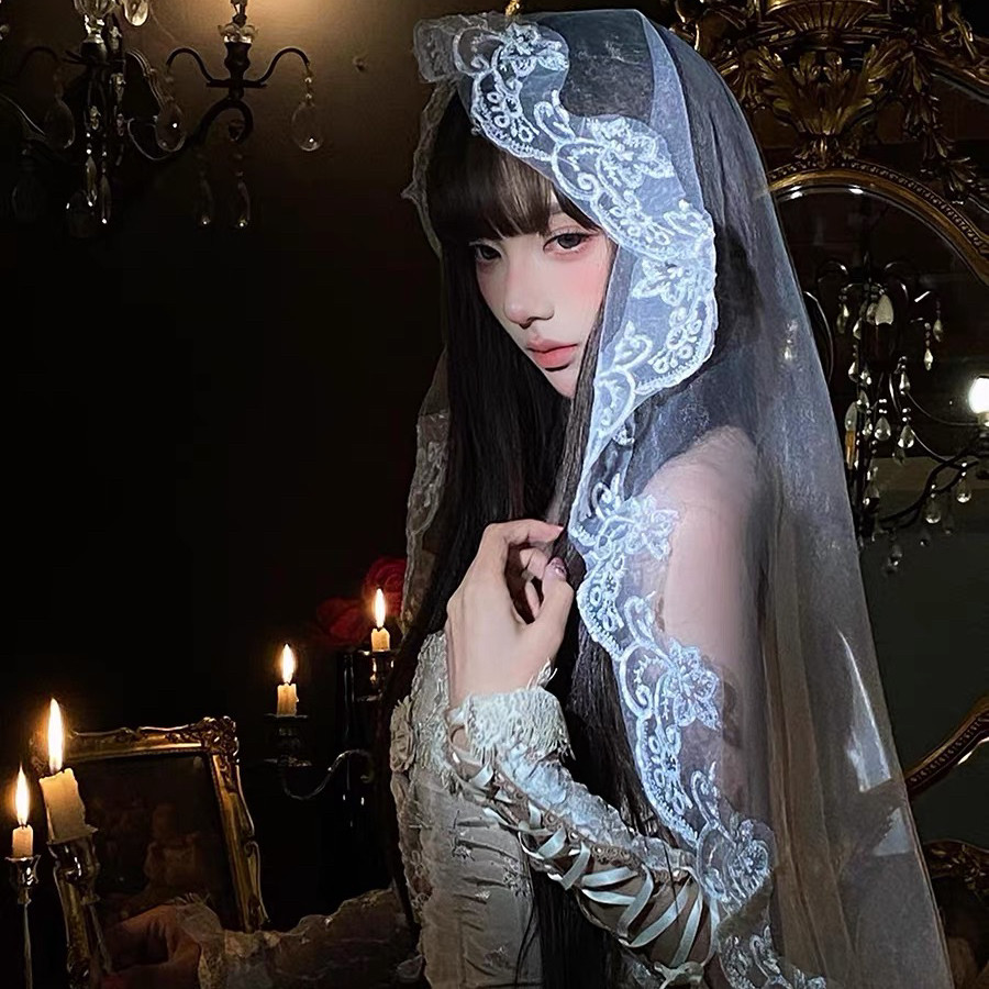 Halloween headdress, cosplay ghost bride, retro white lace veil, wedding outfit, photo props, hair accessories