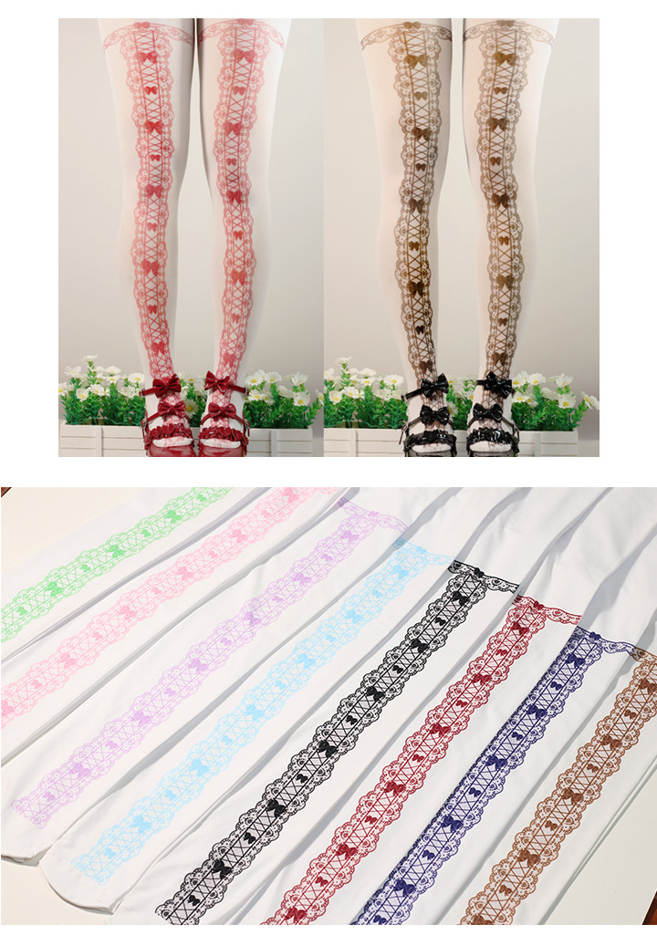少女七分甜原创 少女初衷 Lolita袜子印花连裤袜蝴蝶结印花袜 [Original Page Link]