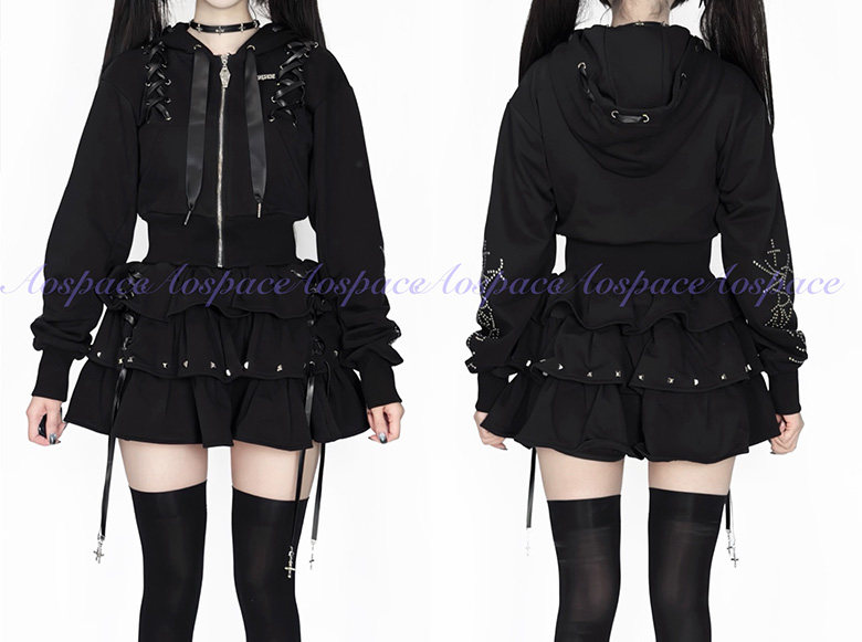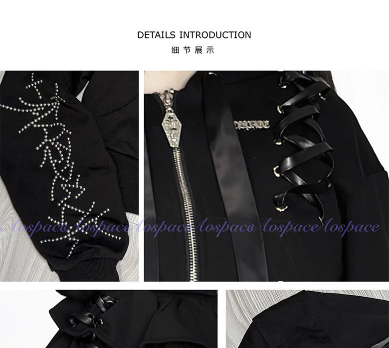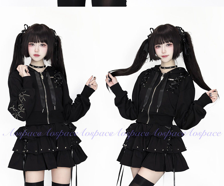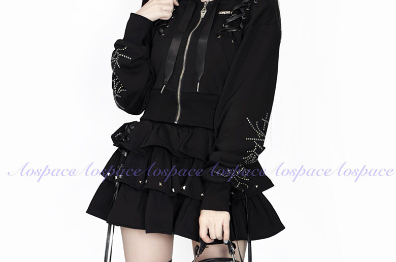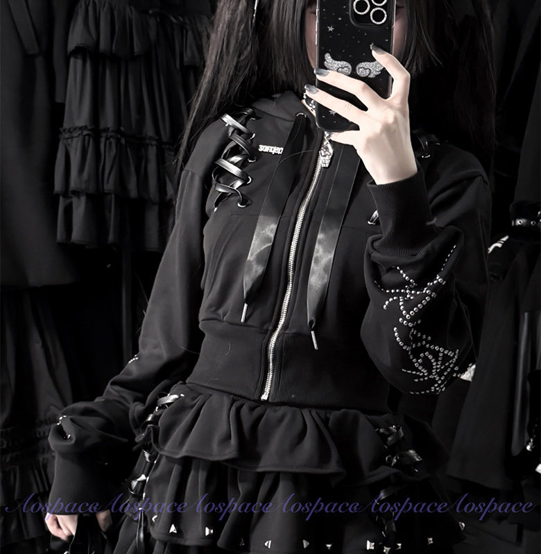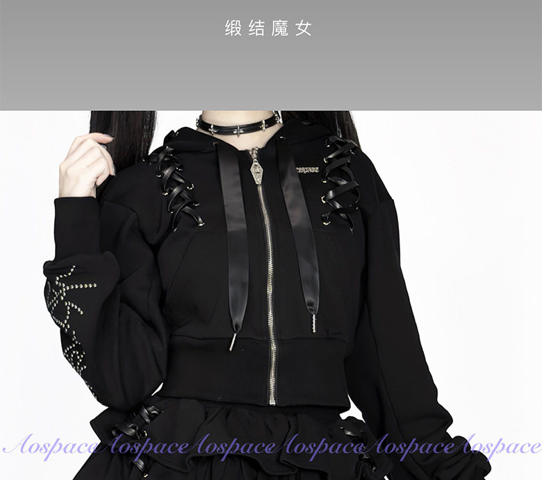 缺氧外太空【缎结魔女】原创亚文化烫钉绑带运动风外套短裙套装 [Original Page Link]