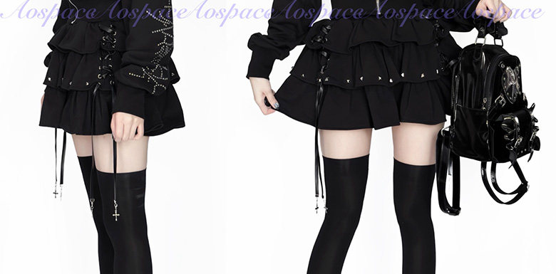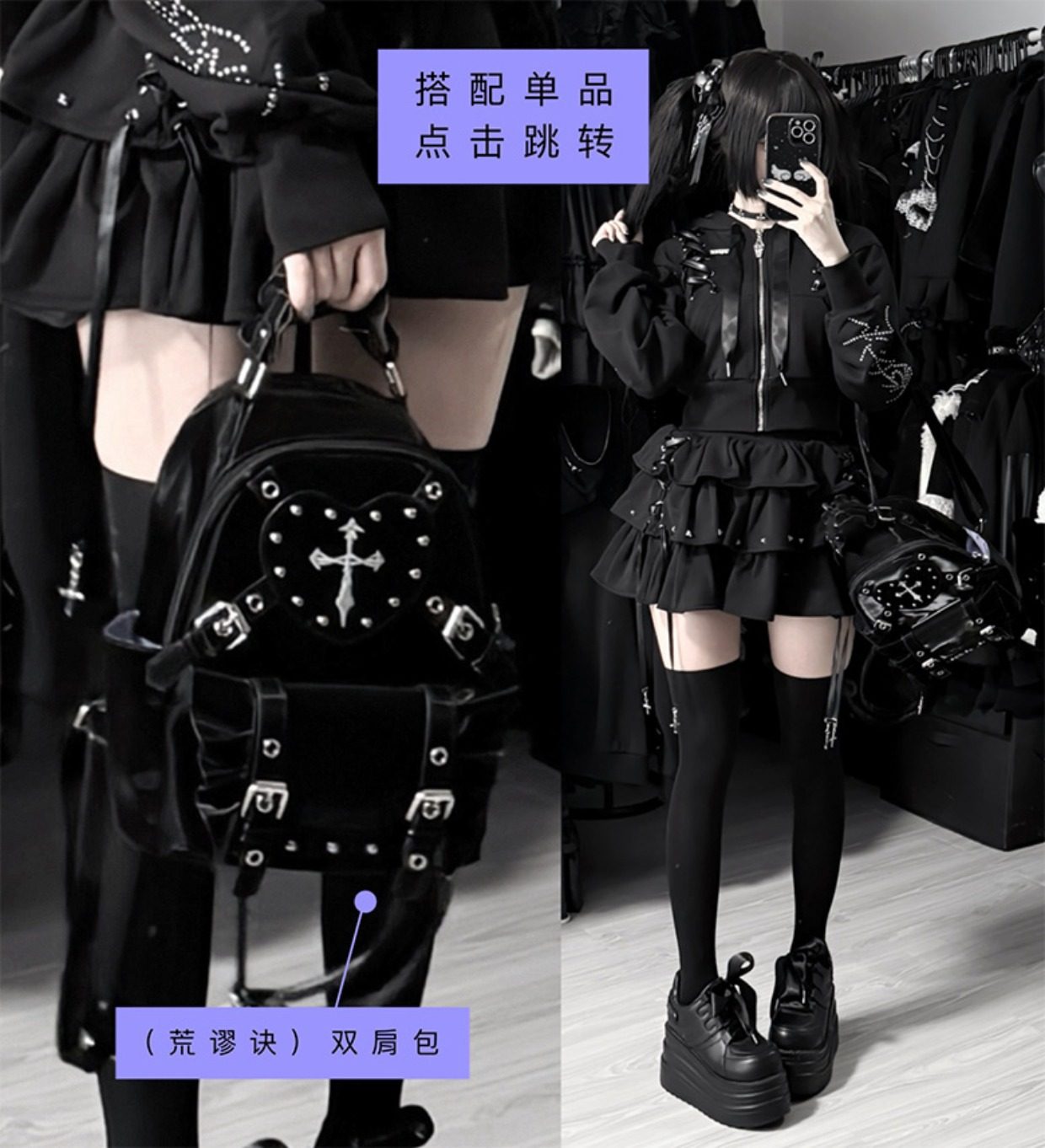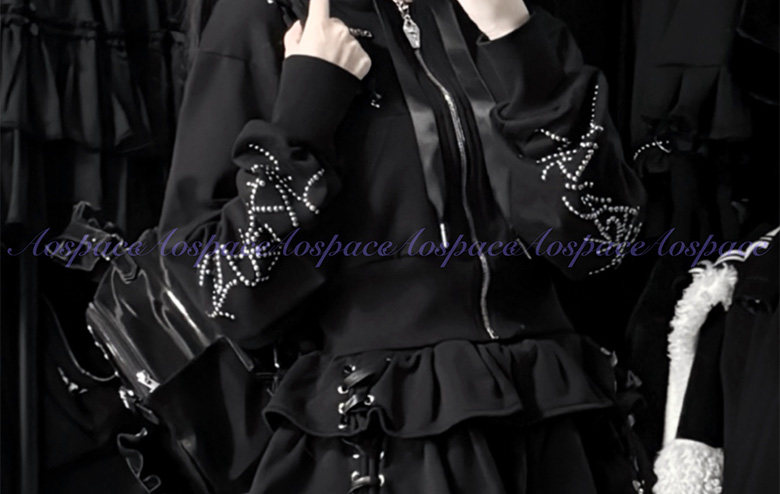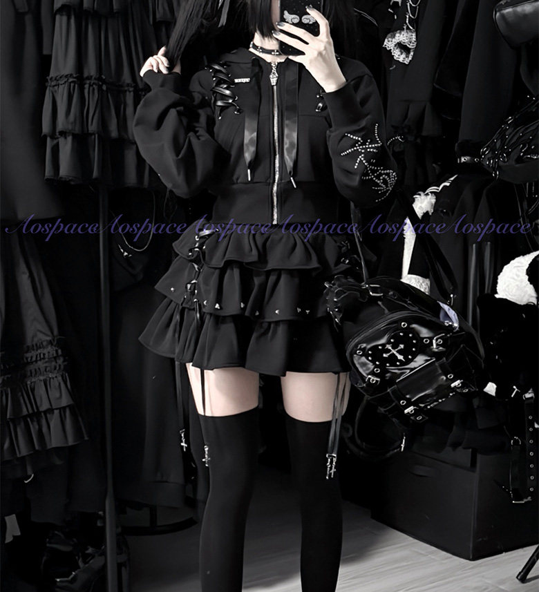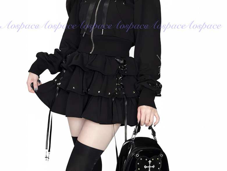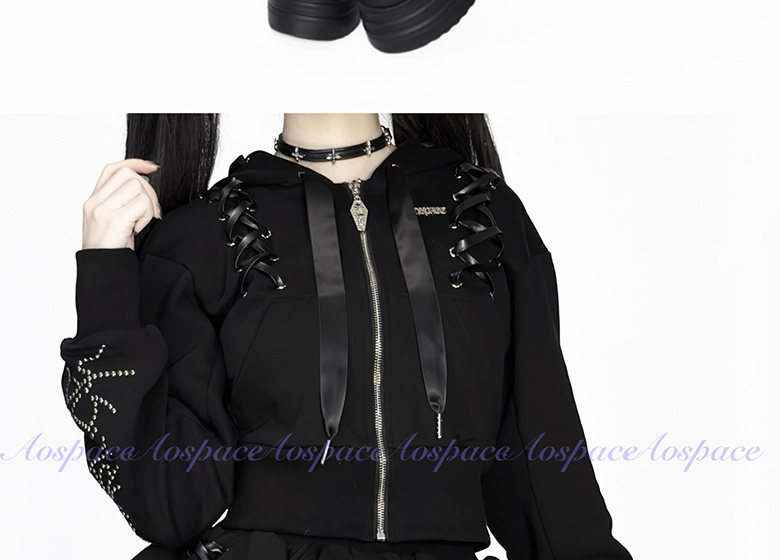缺氧外太空【缎结魔女】原创亚文化烫钉绑带运动风外套短裙套装 [Original Page Link]