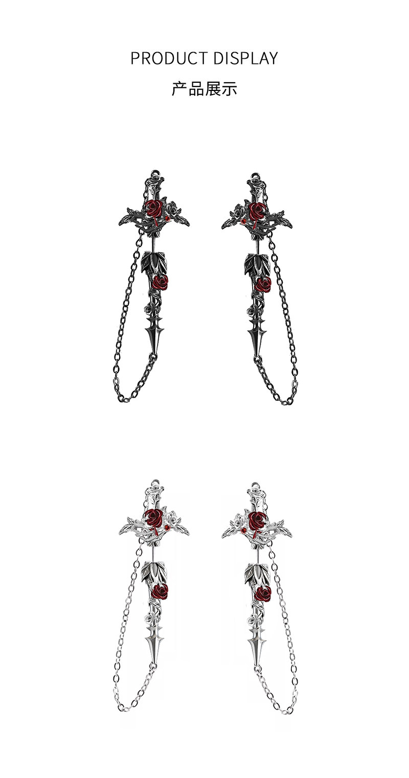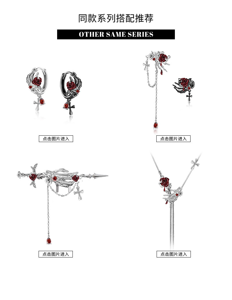 MASW麻秀原创设计骸骨系列暗黑辣妹红色玫瑰耳钉潮酷金属个性耳环 [Original Page Link]