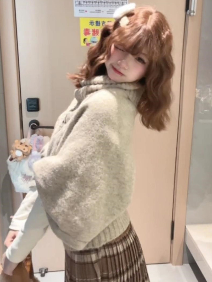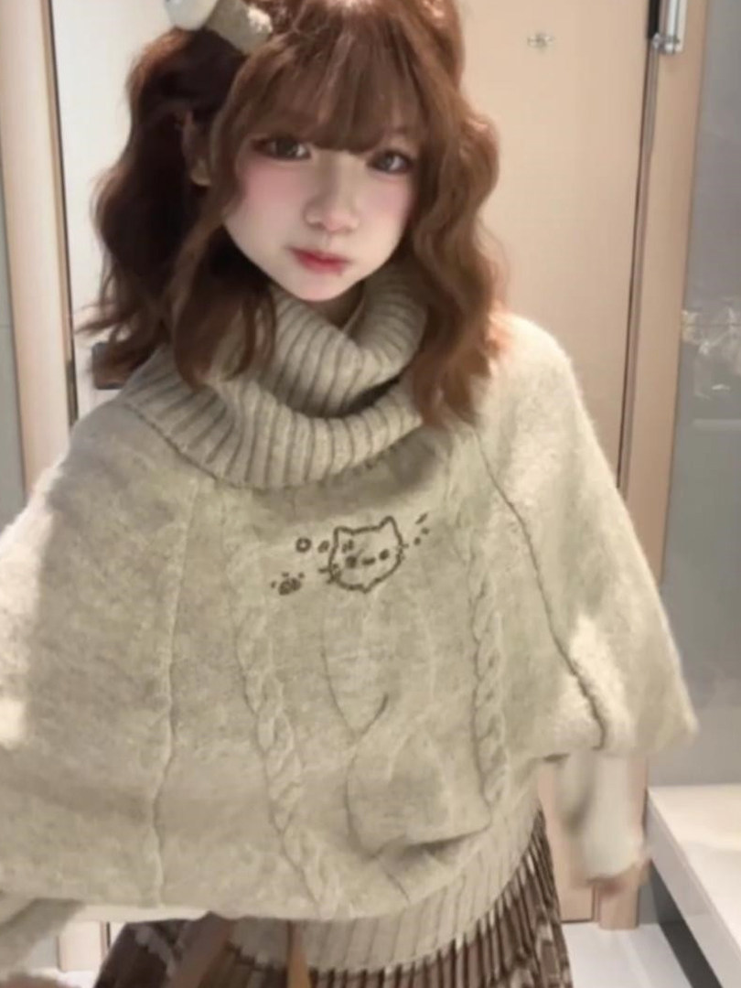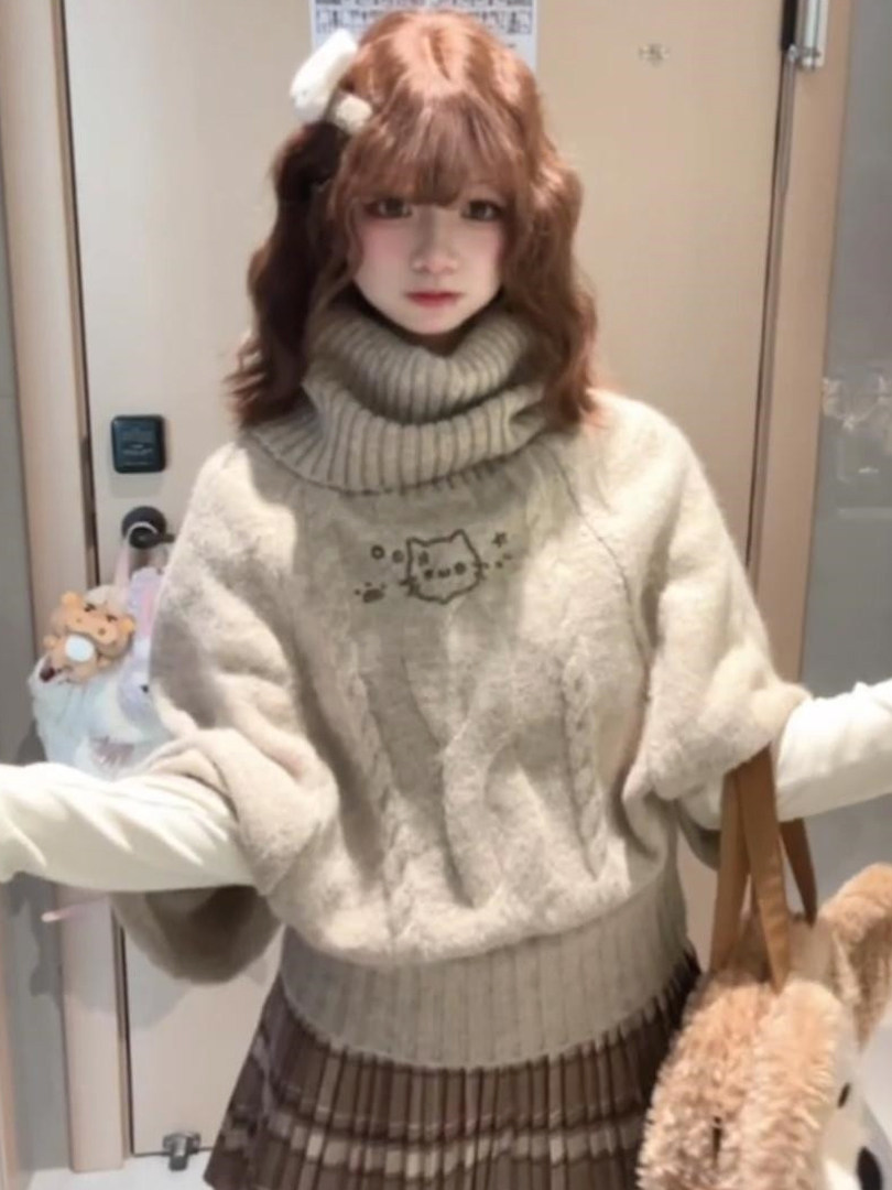 秋冬甜美可爱猫咪麻花蝙蝠袖高领毛衣韩版修身百搭显瘦显白针织衫 [Original Page Link]