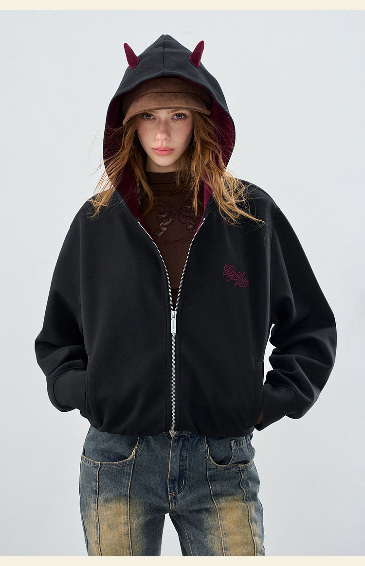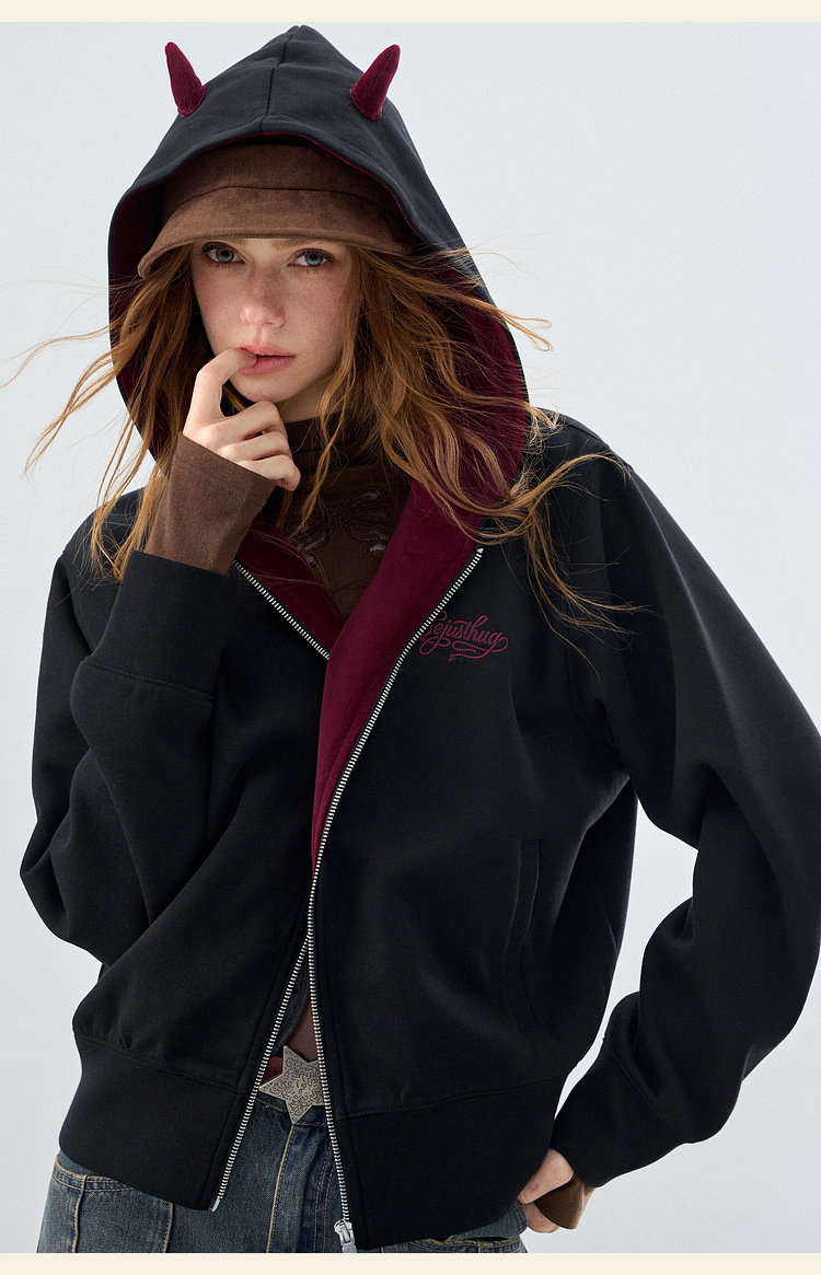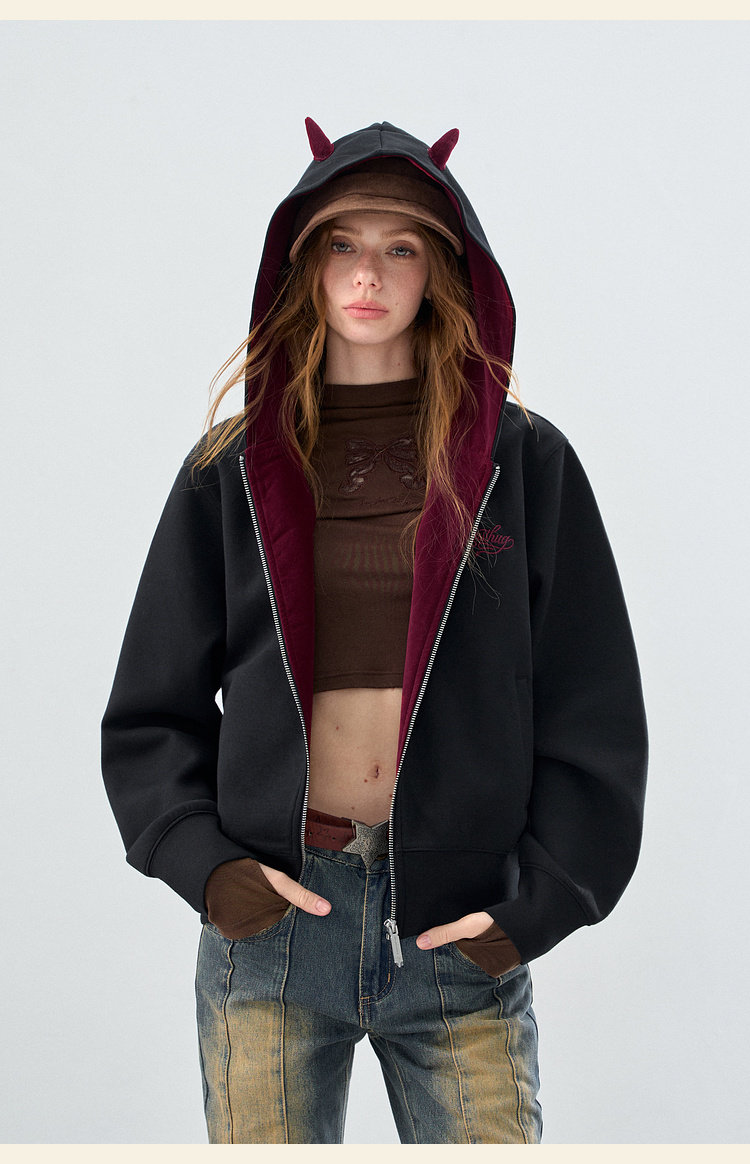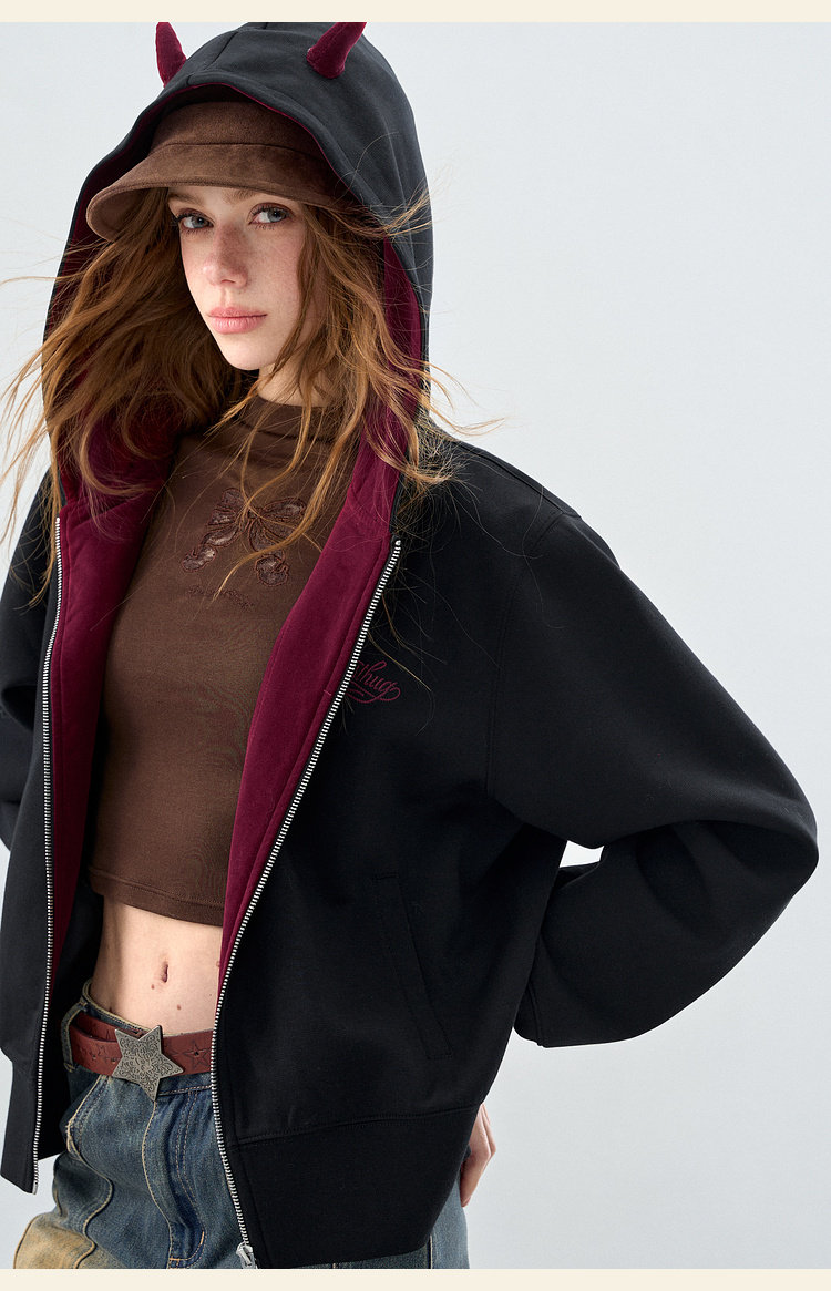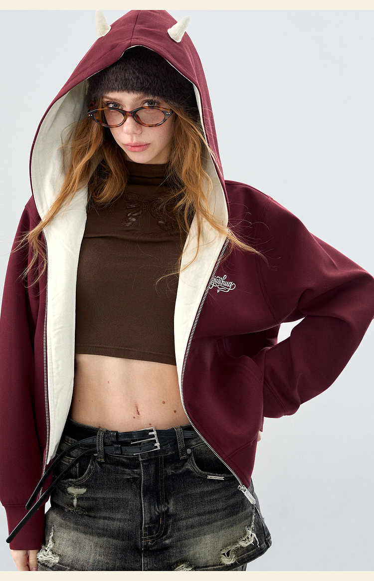 BJHG不计后果短款小恶魔红色卫衣女秋冬新款美式小众设计感短外套 [Original Page Link]