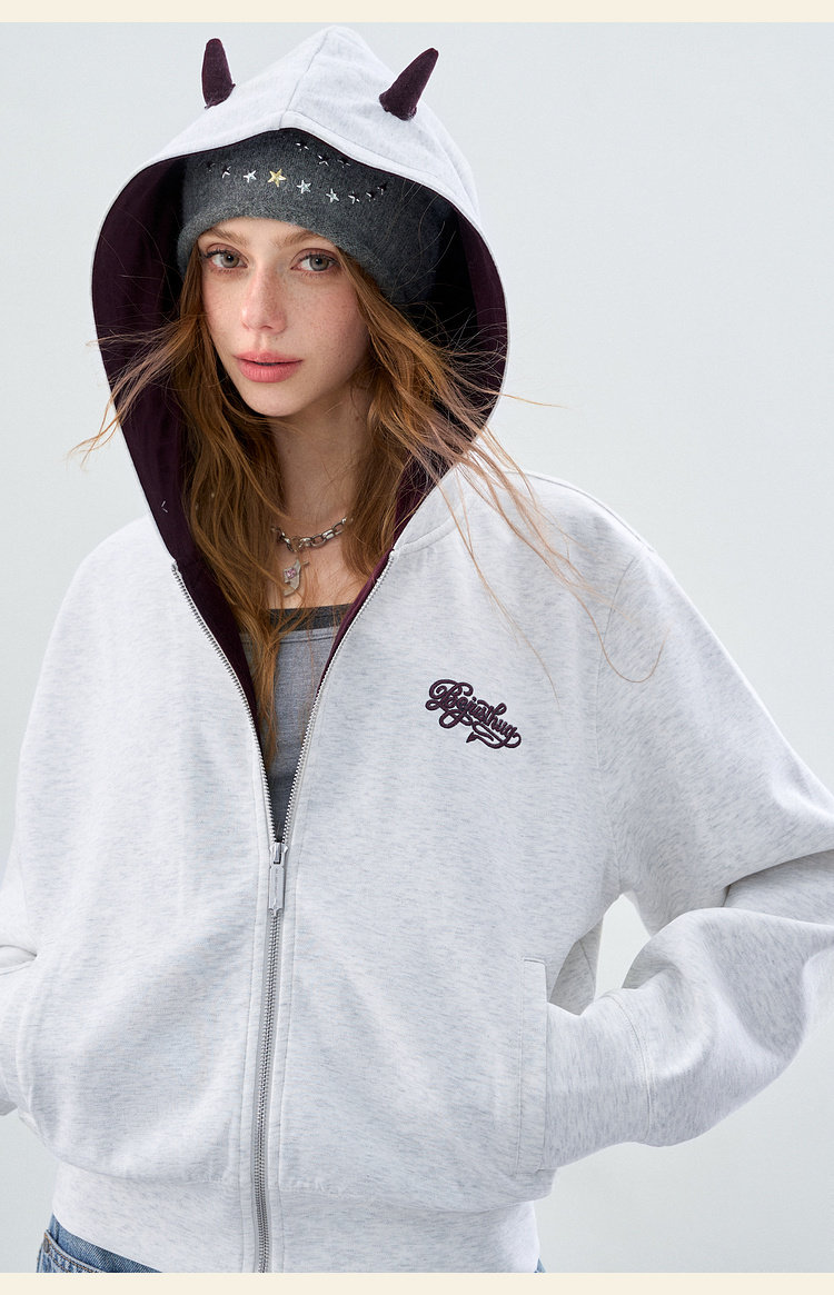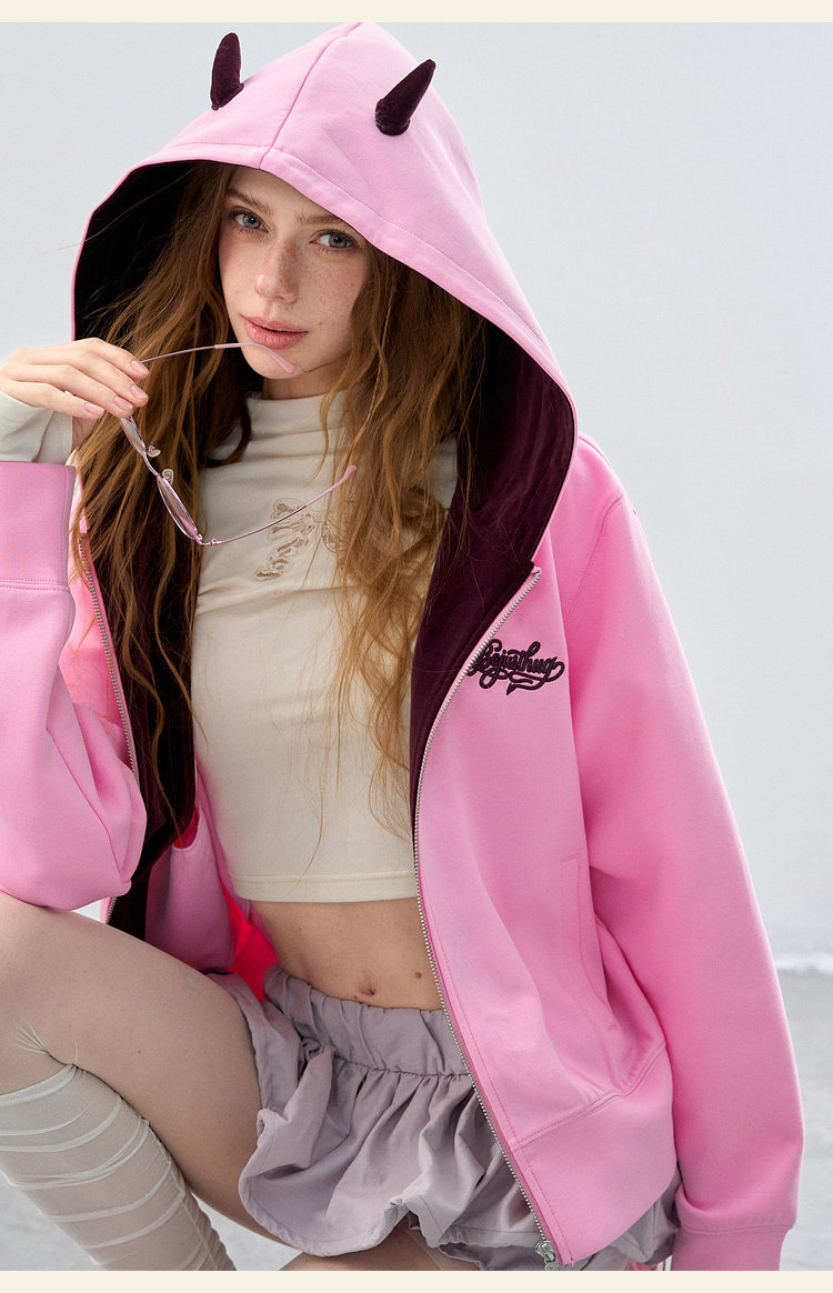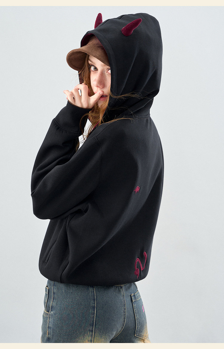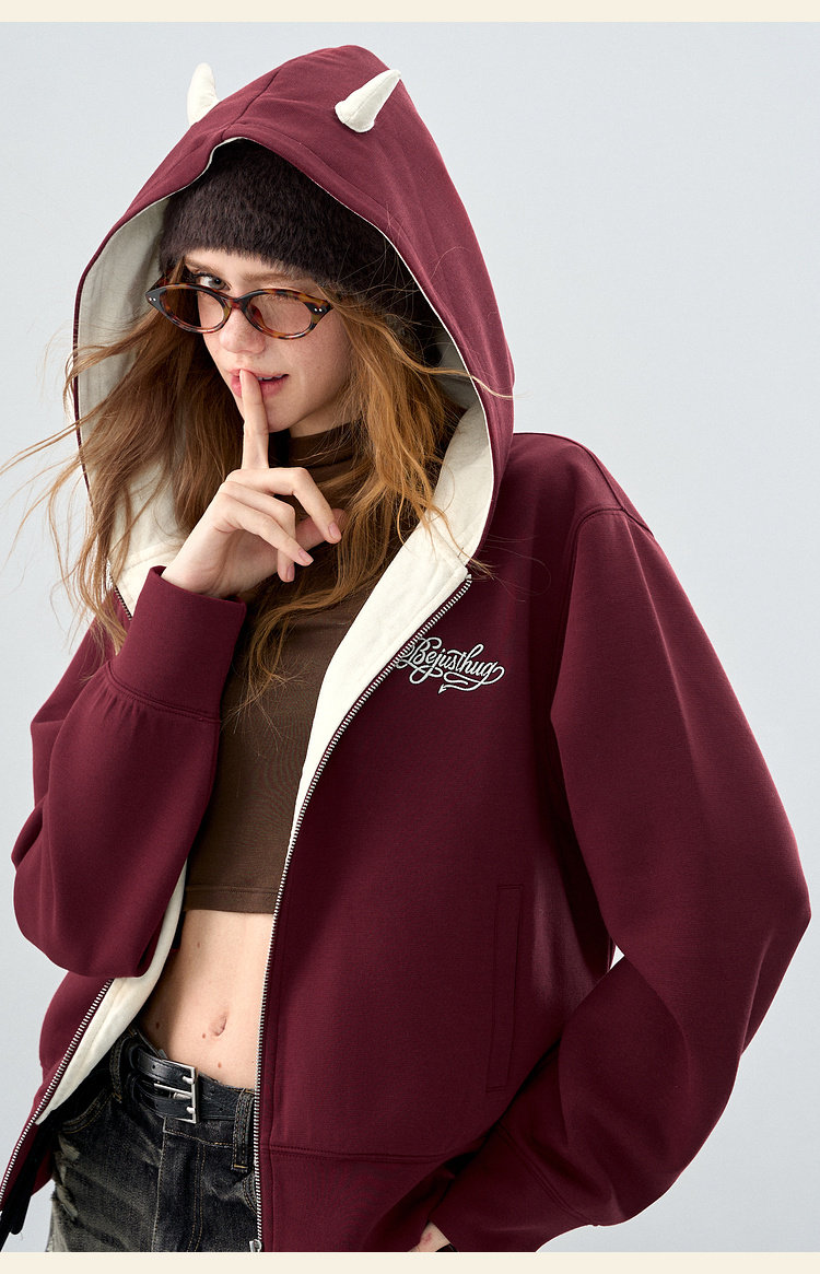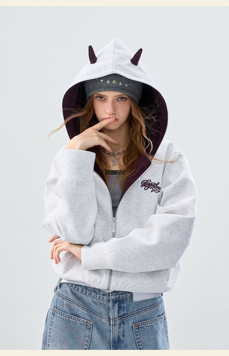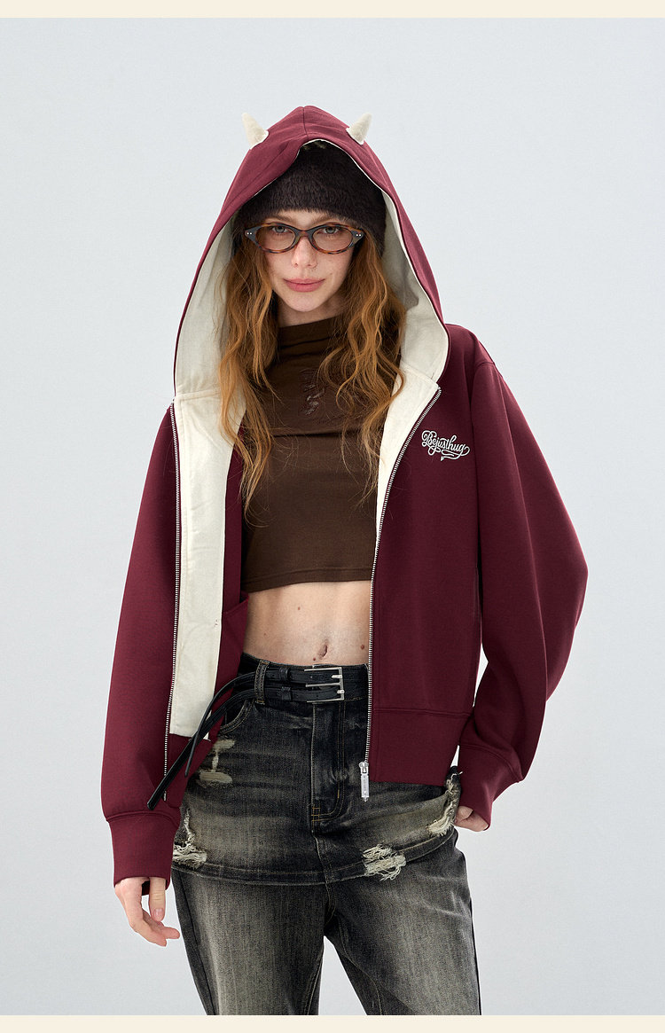 BJHG不计后果短款小恶魔红色卫衣女秋冬新款美式小众设计感短外套 [Original Page Link]