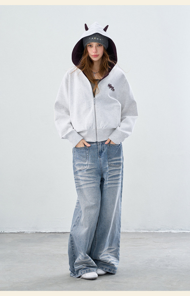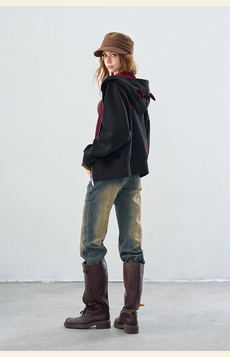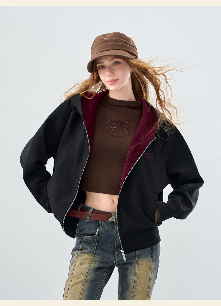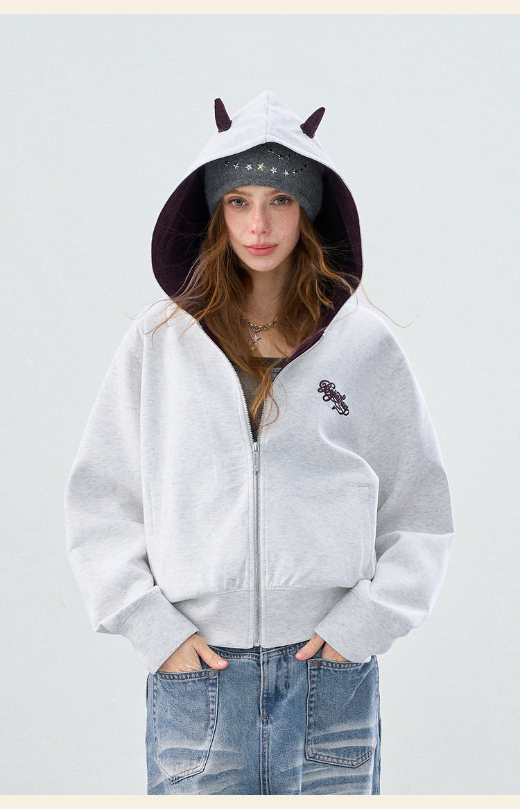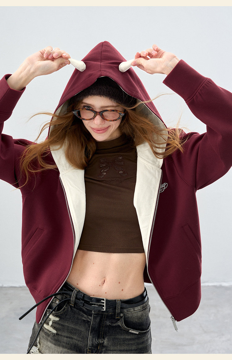 BJHG不计后果短款小恶魔红色卫衣女秋冬新款美式小众设计感短外套 [Original Page Link]