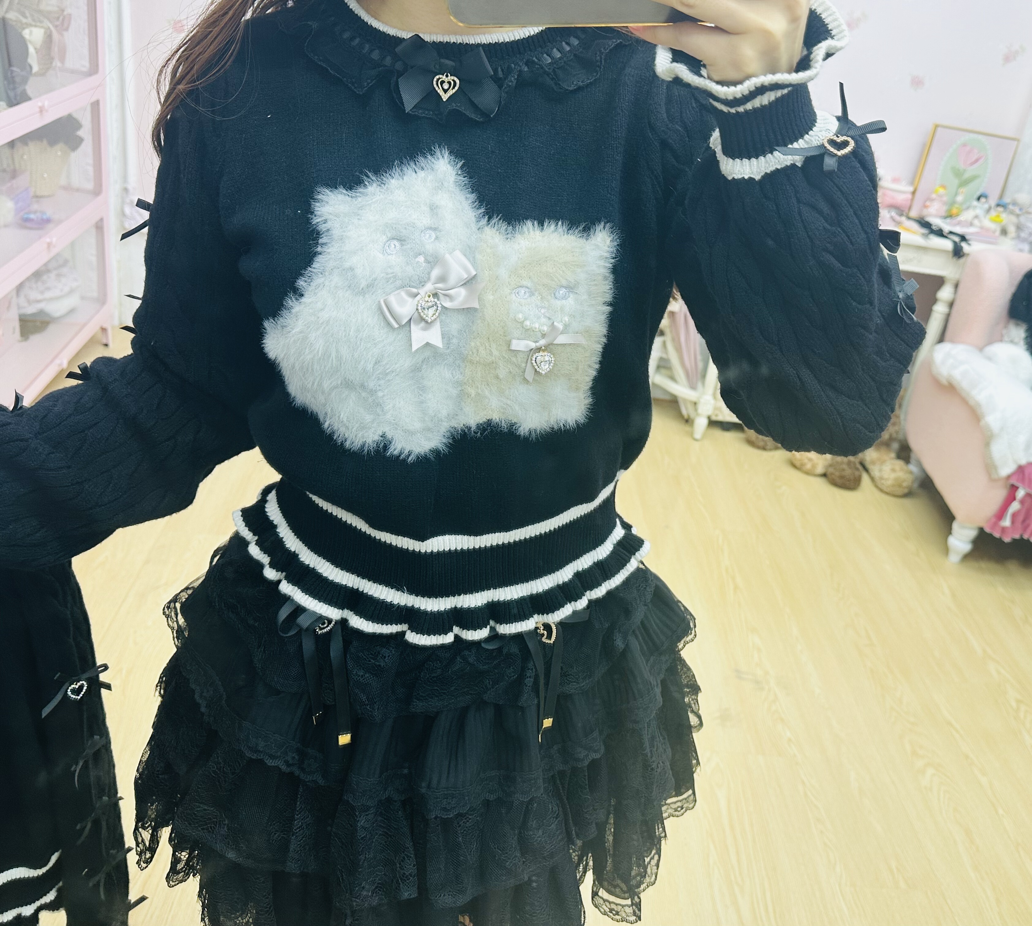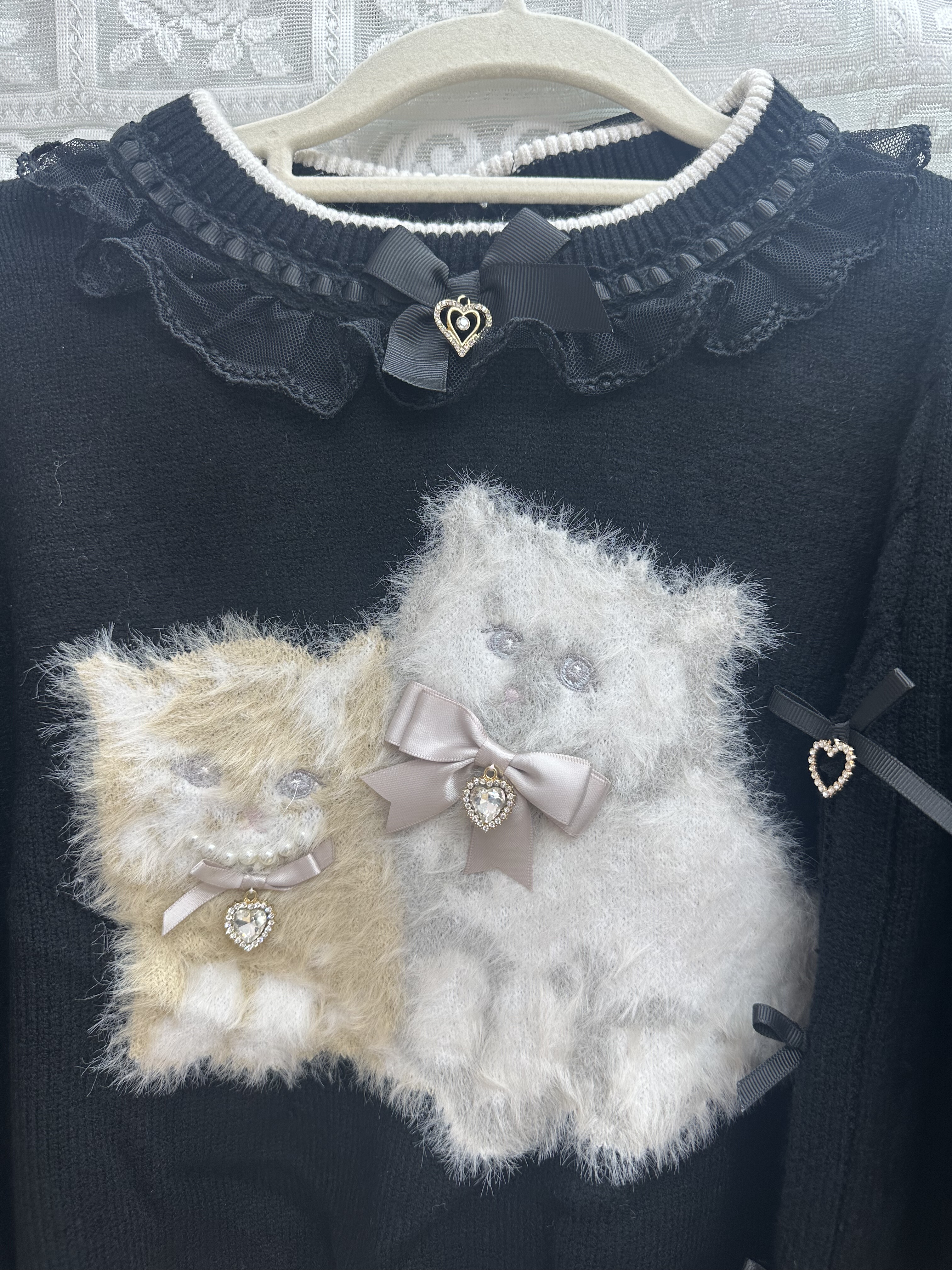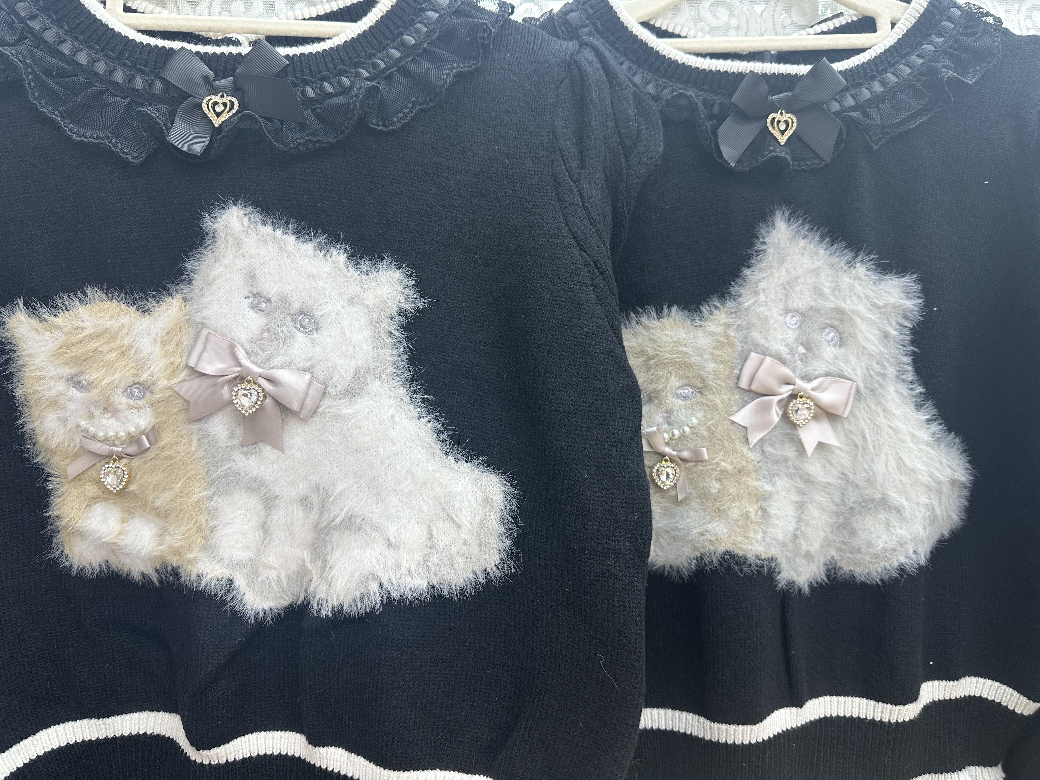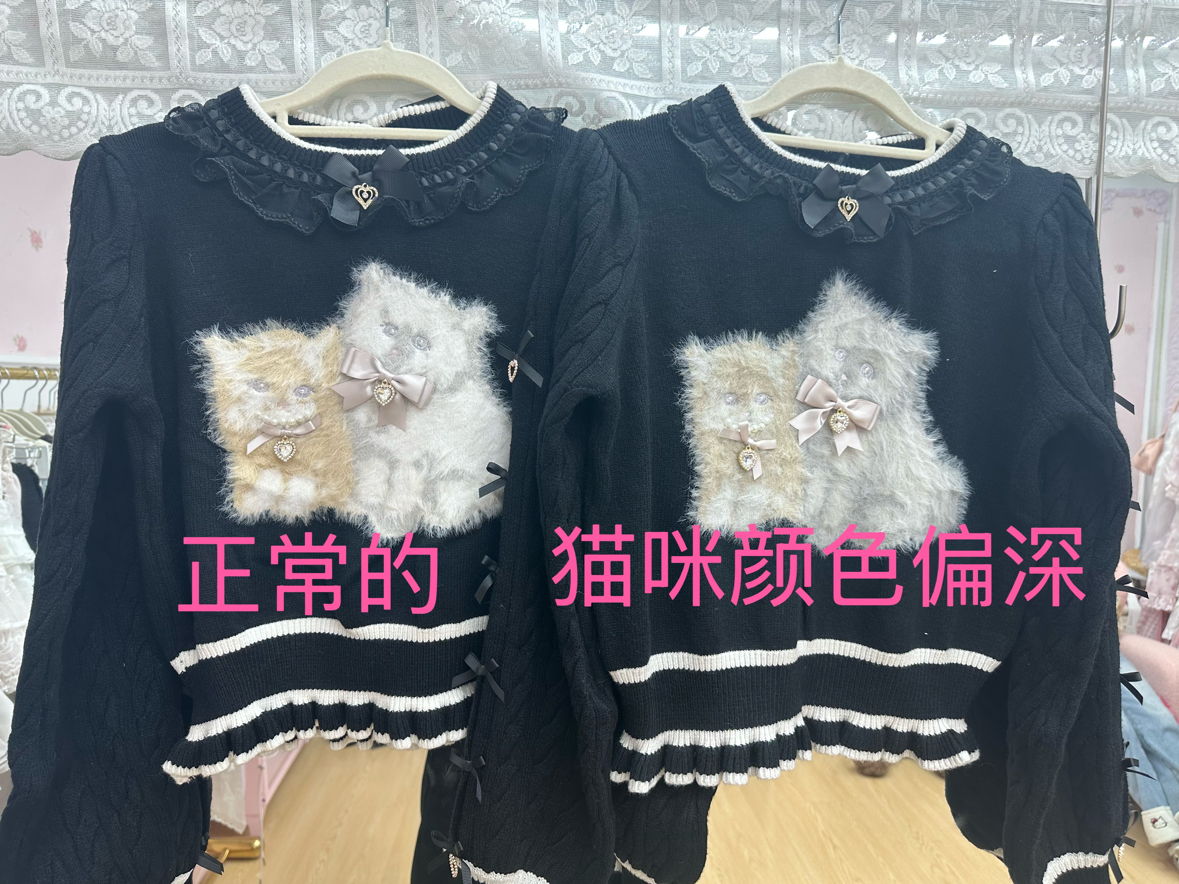 现货发!绵绵的美衣福利品!liz可爱双子猫咪黑色b品亏清 [Original Page Link]