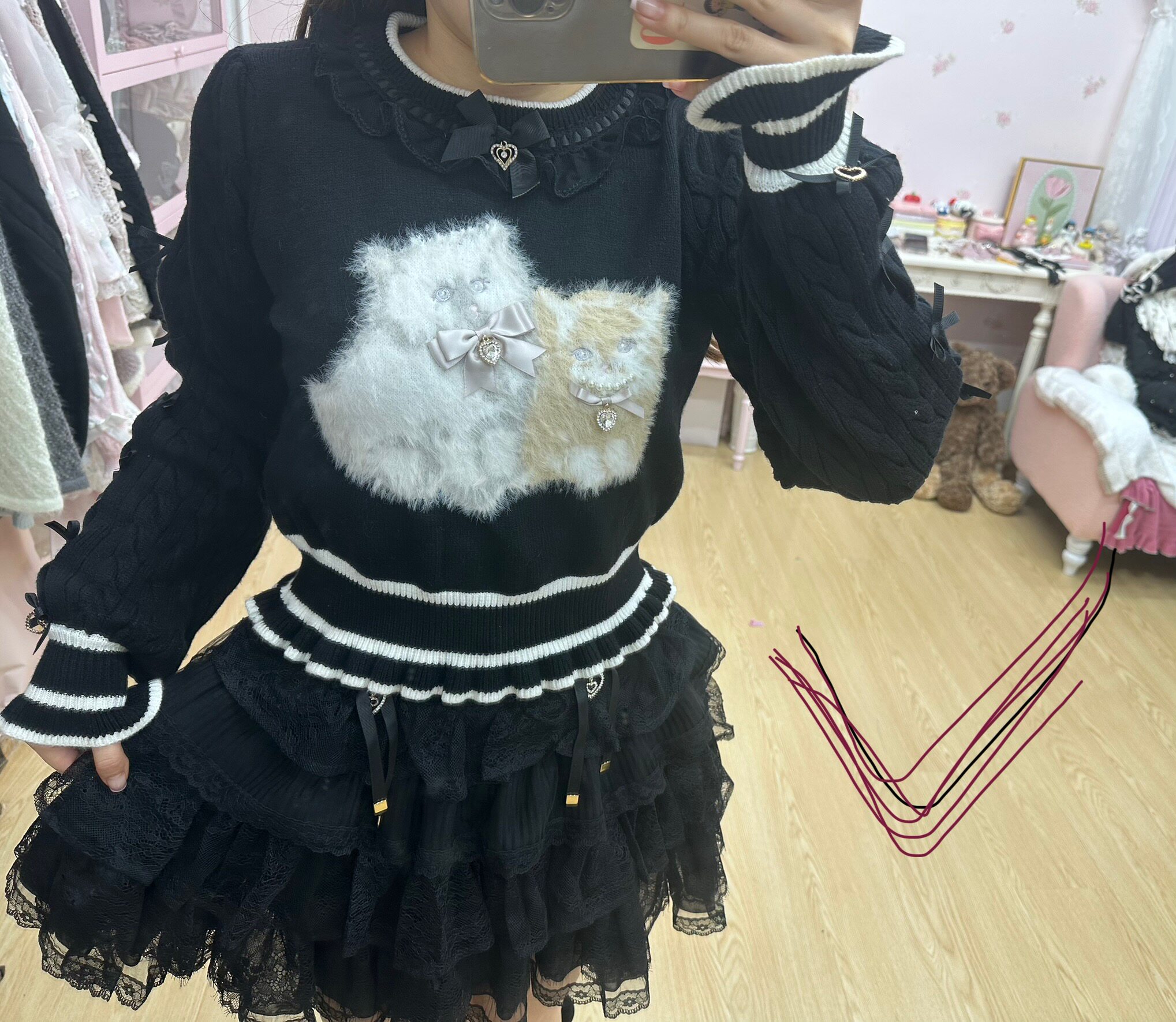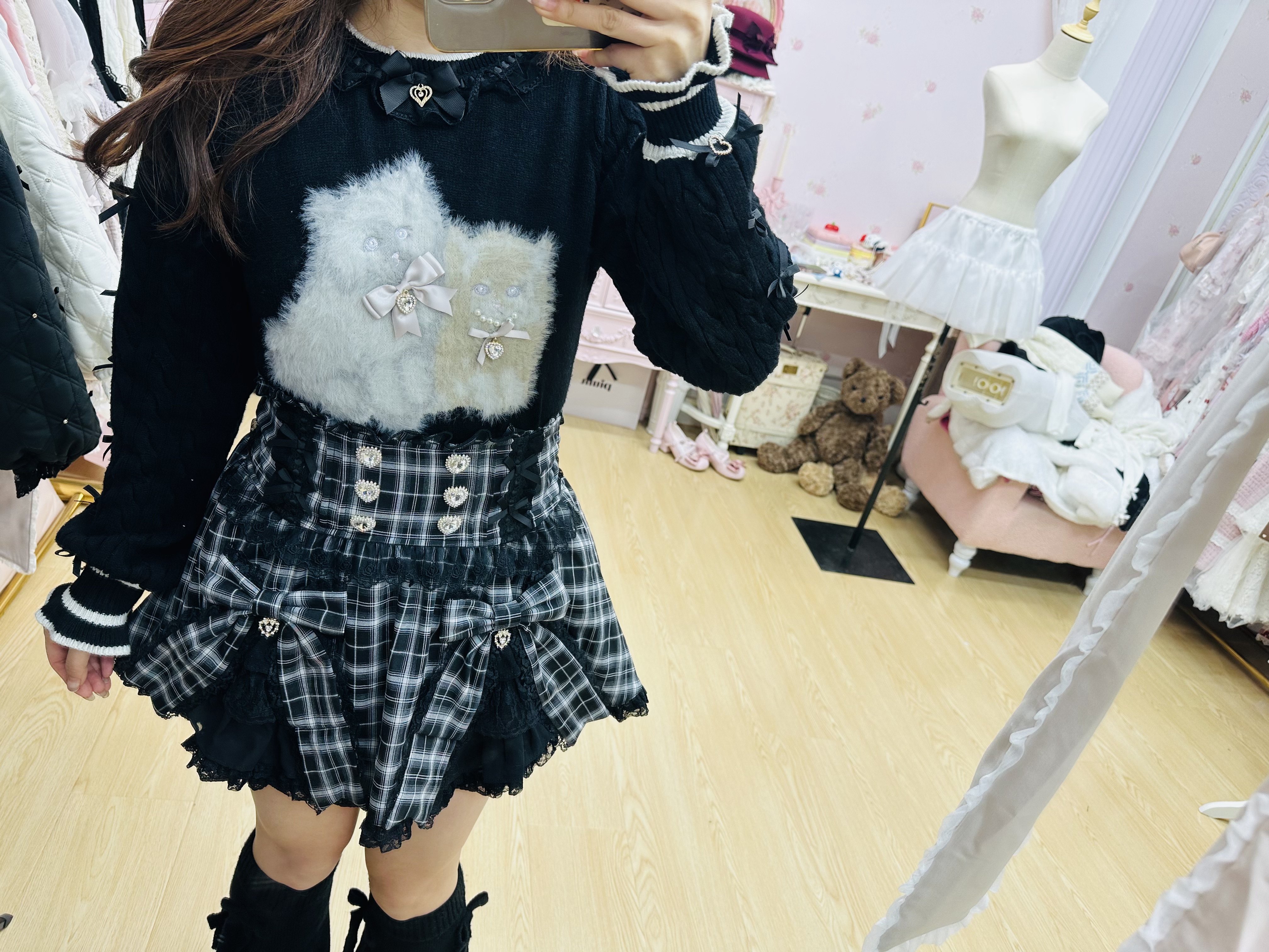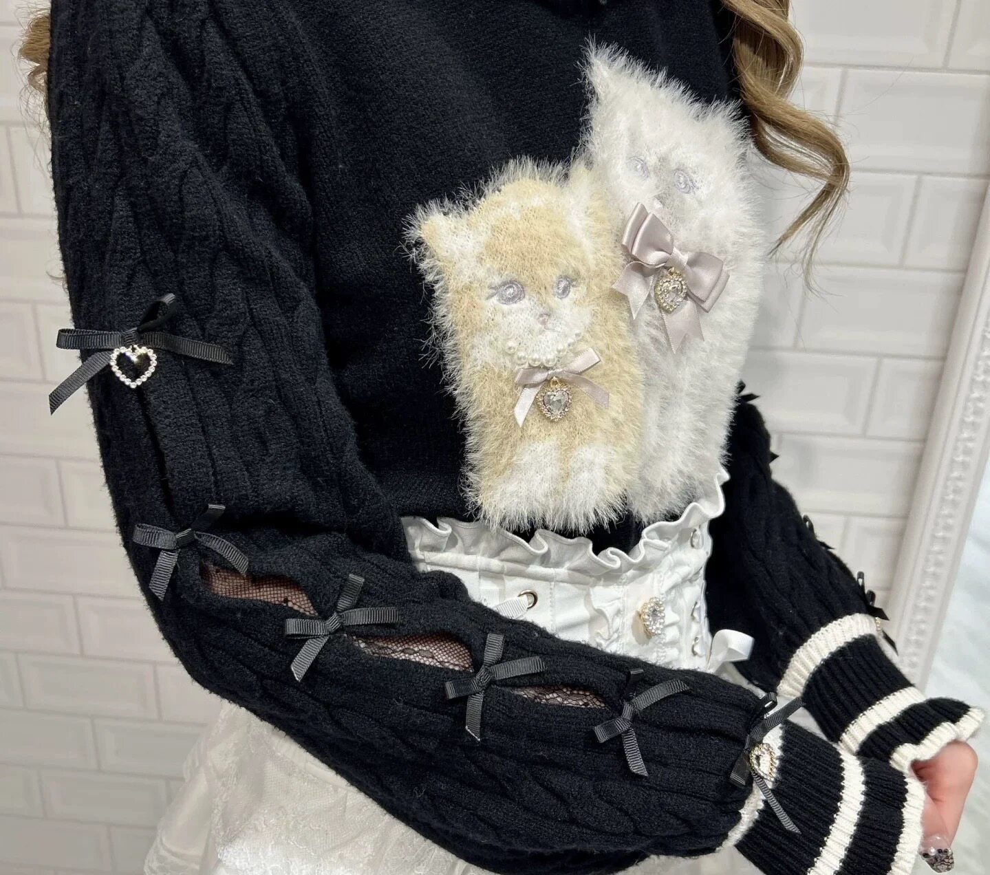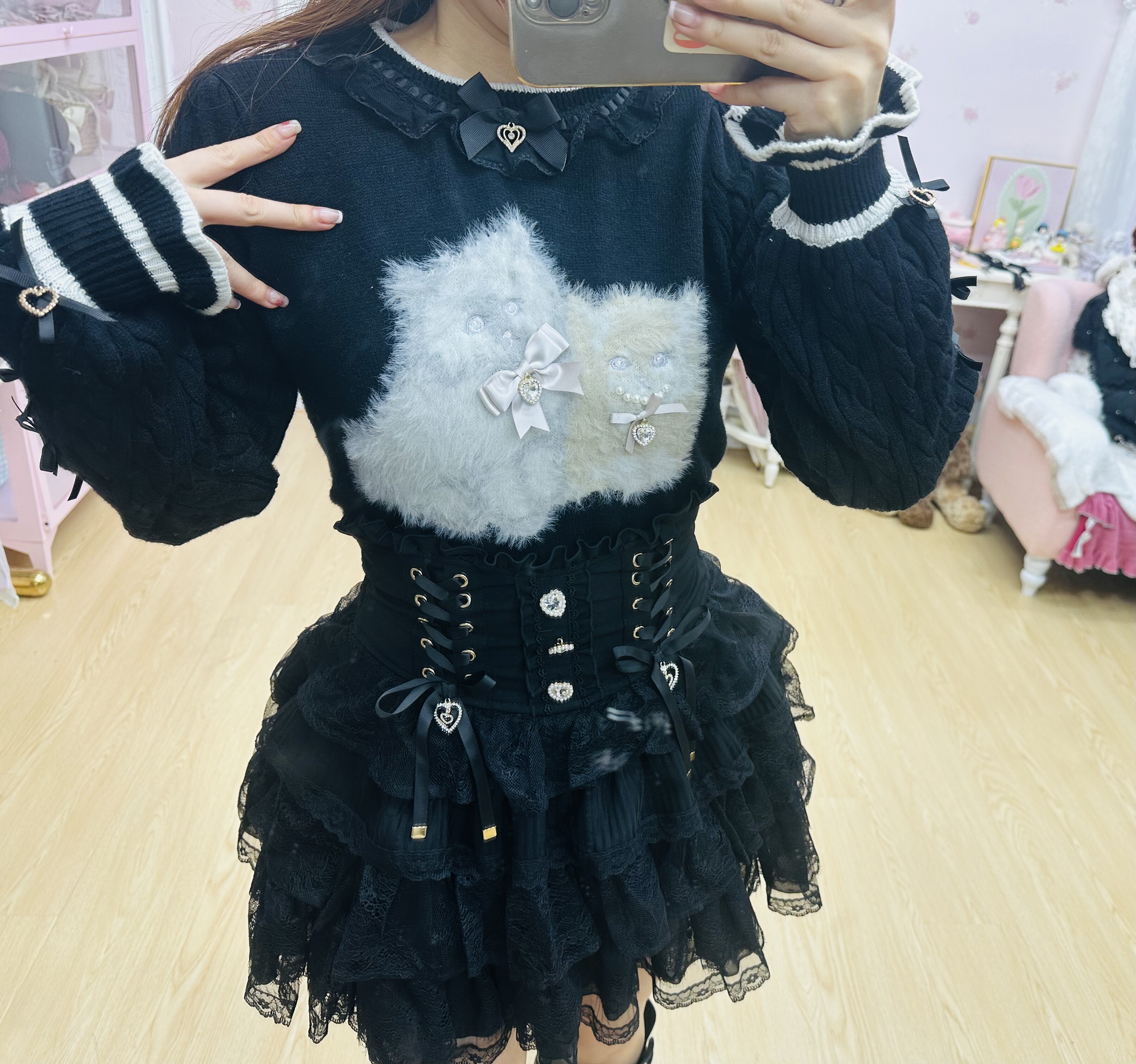 现货发!绵绵的美衣福利品!liz可爱双子猫咪黑色b品亏清 [Original Page Link]