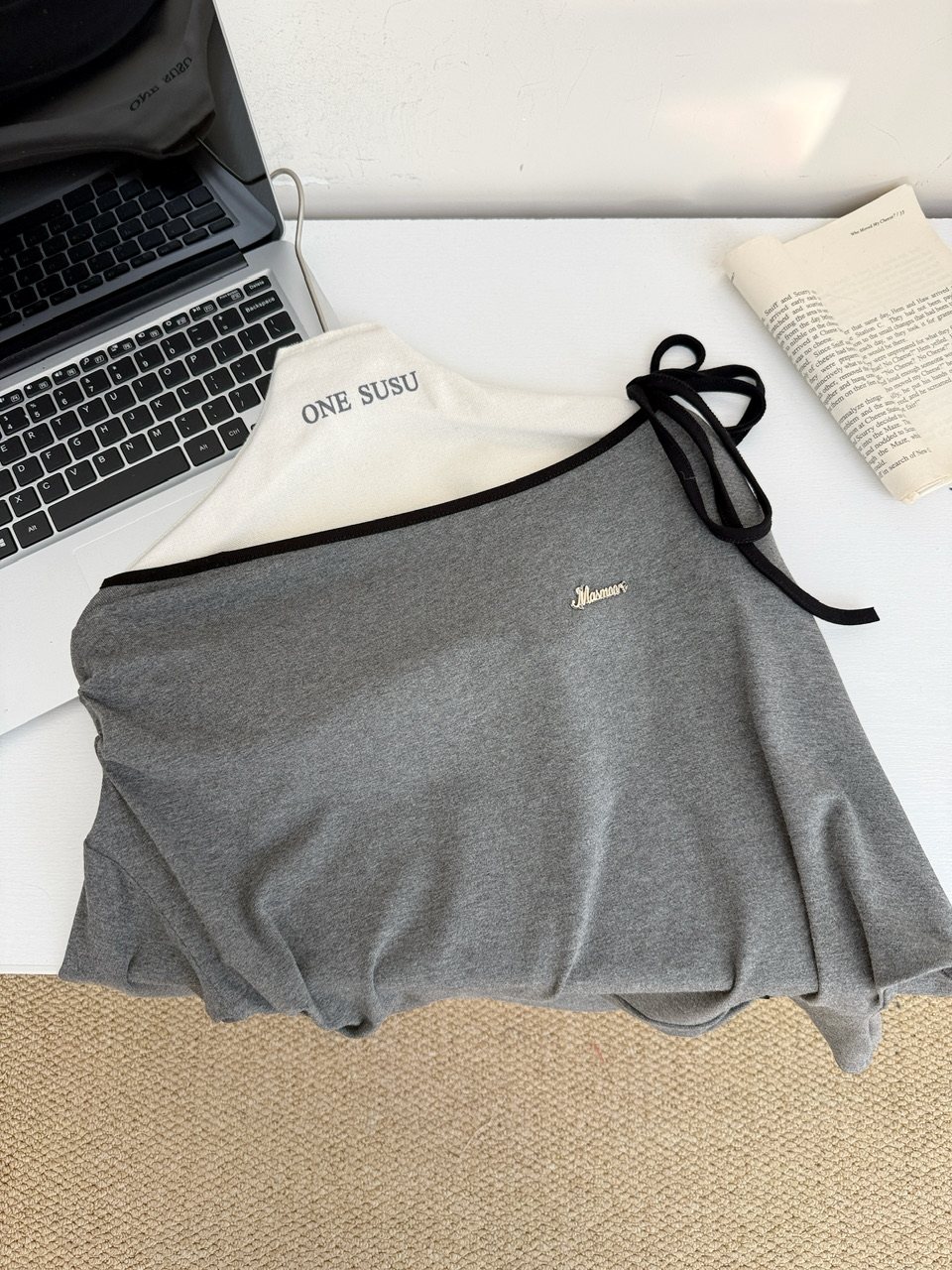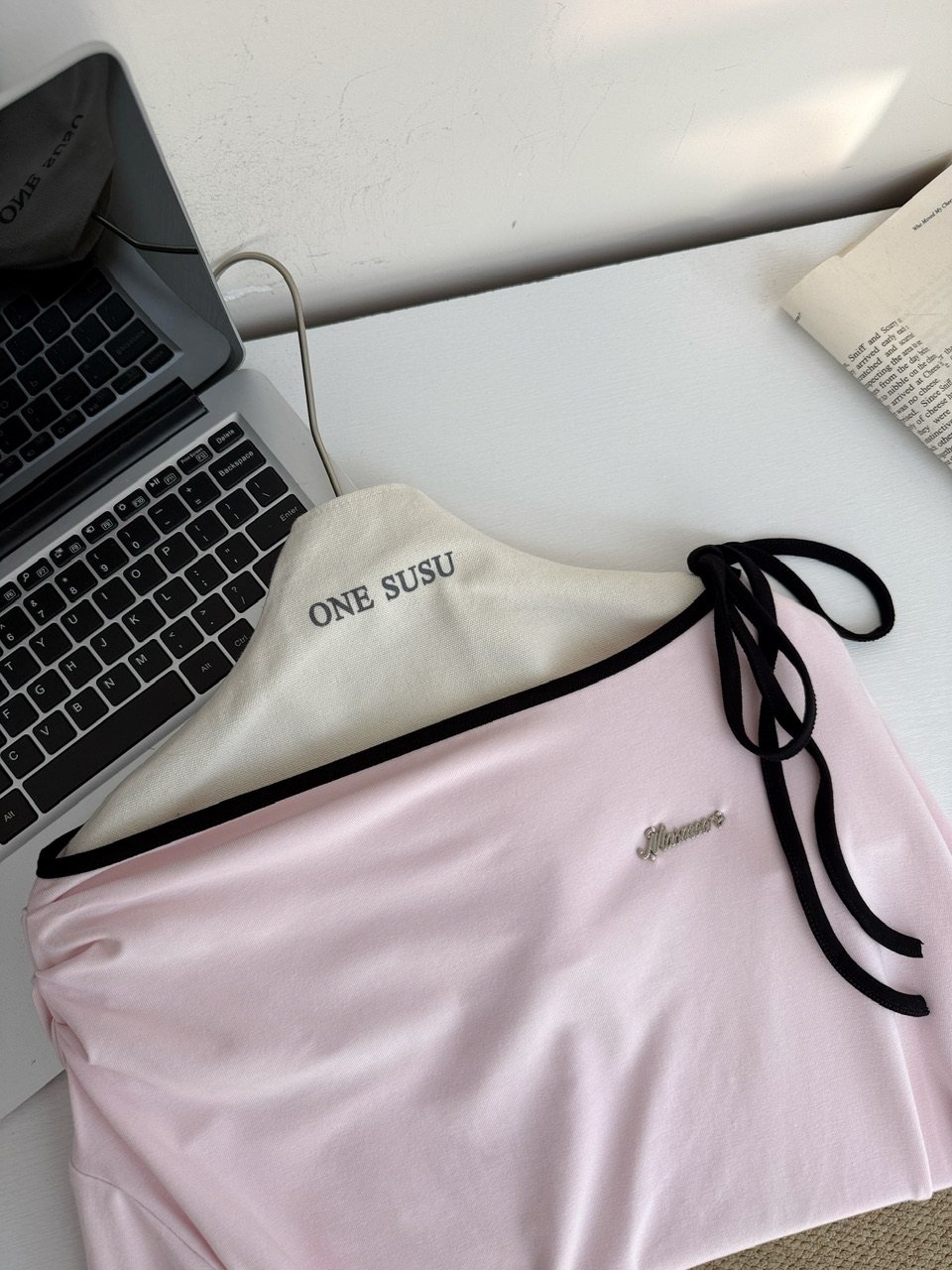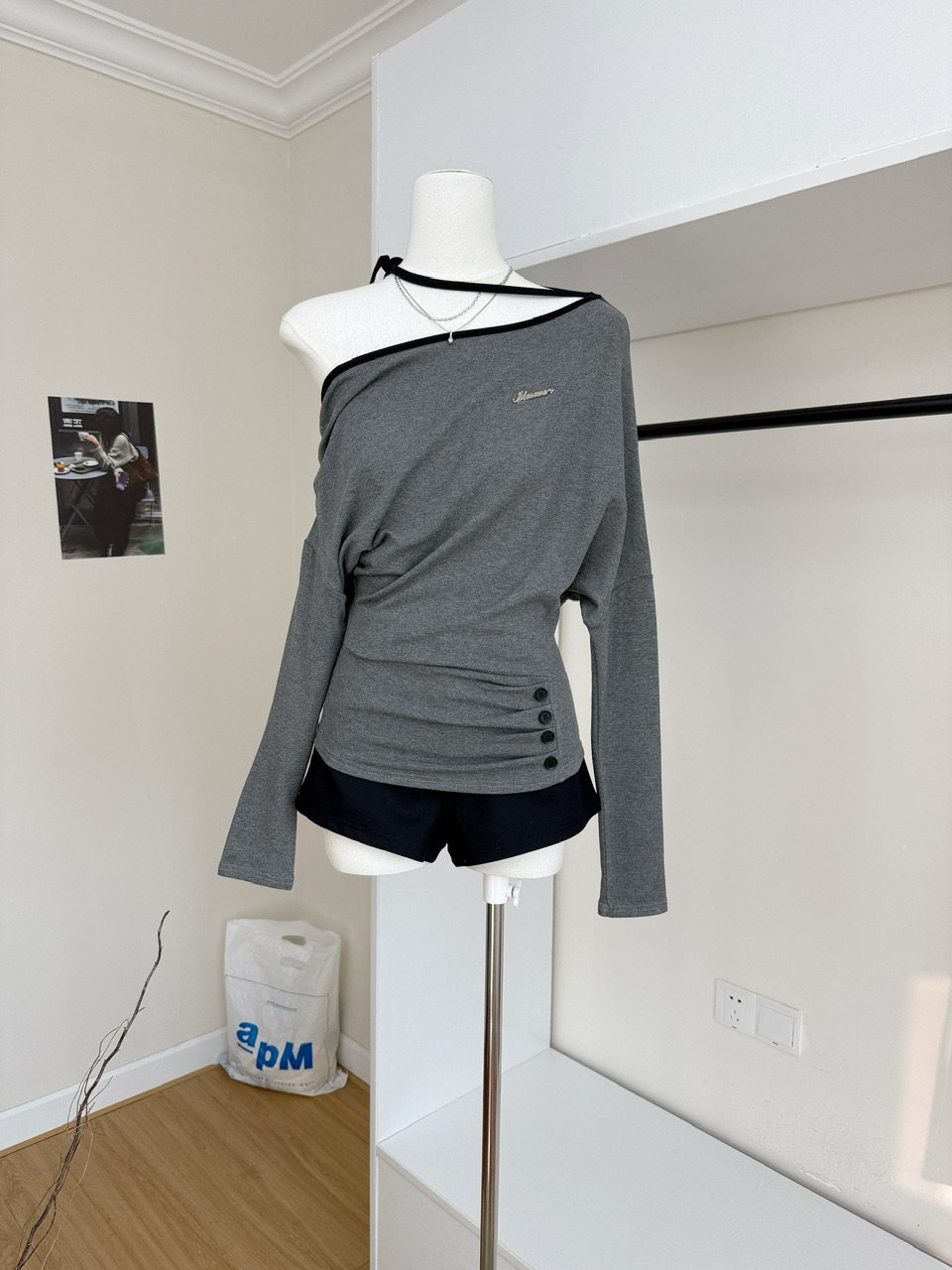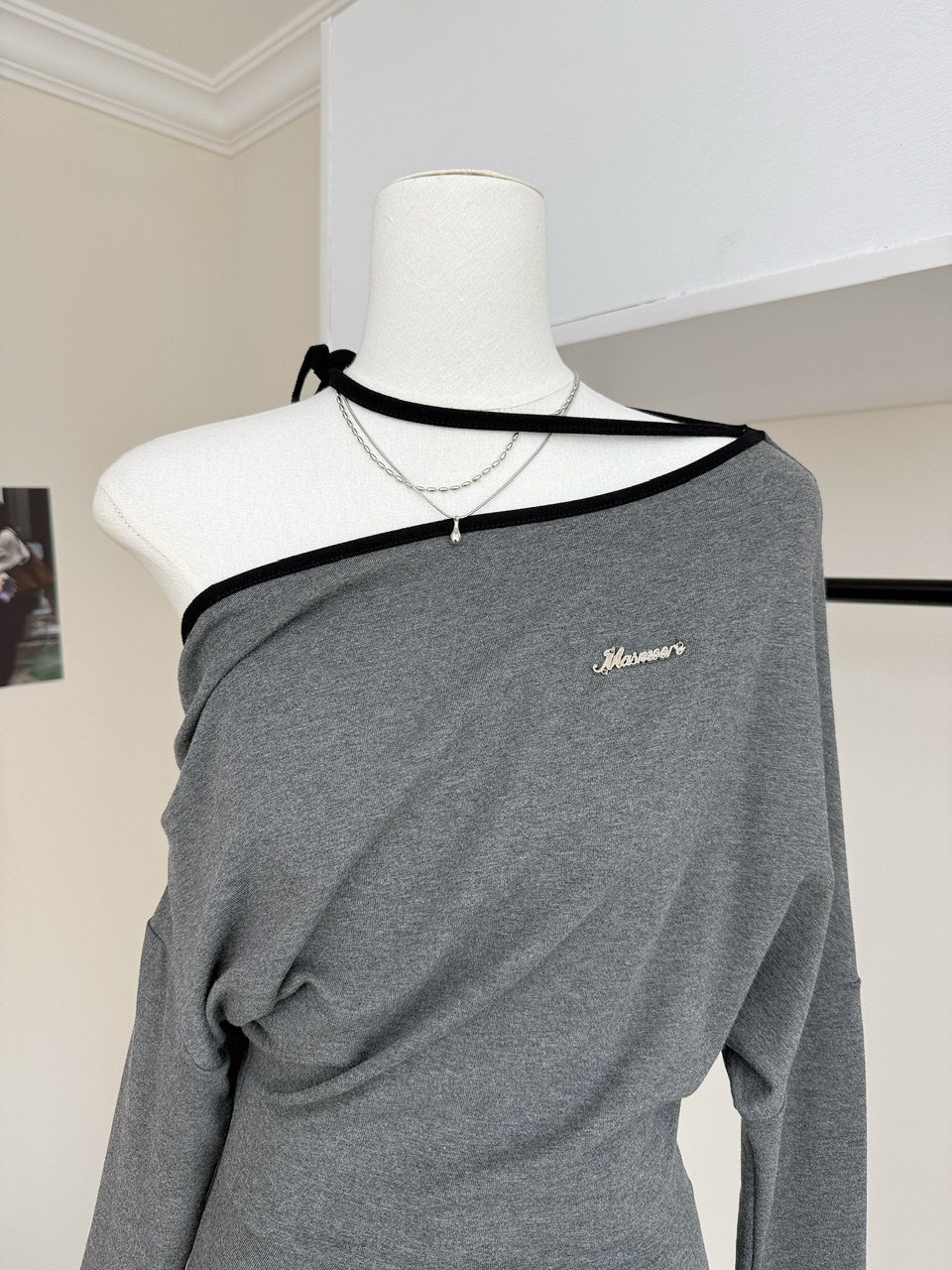 阿肉Ree 韩团练习生 %韩系长袖斜肩辣妹挂脖T恤女秋粉色百搭上衣 [Original Page Link]