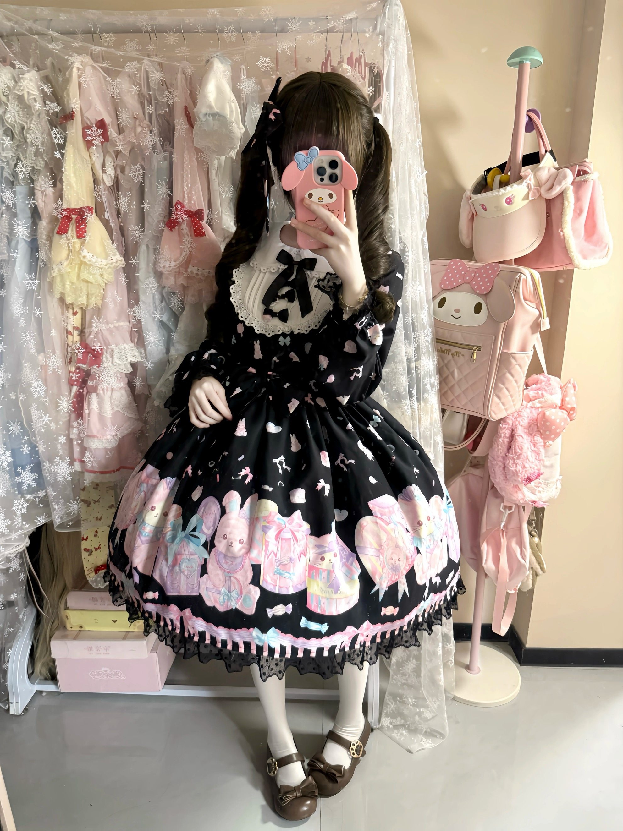 小熊原创(兔喵礼盒)现货超连结 春秋甜美长袖op Lolita洋装 [Original Page Link]