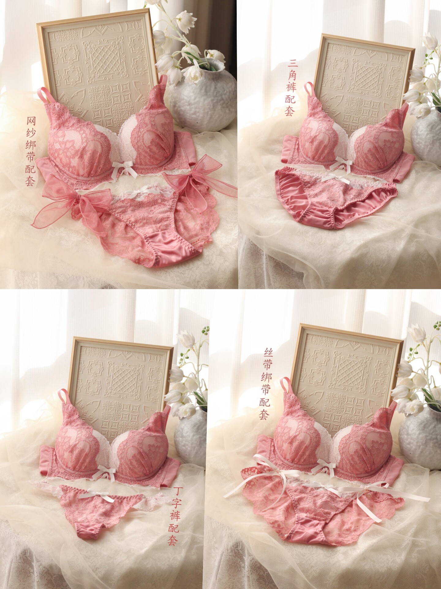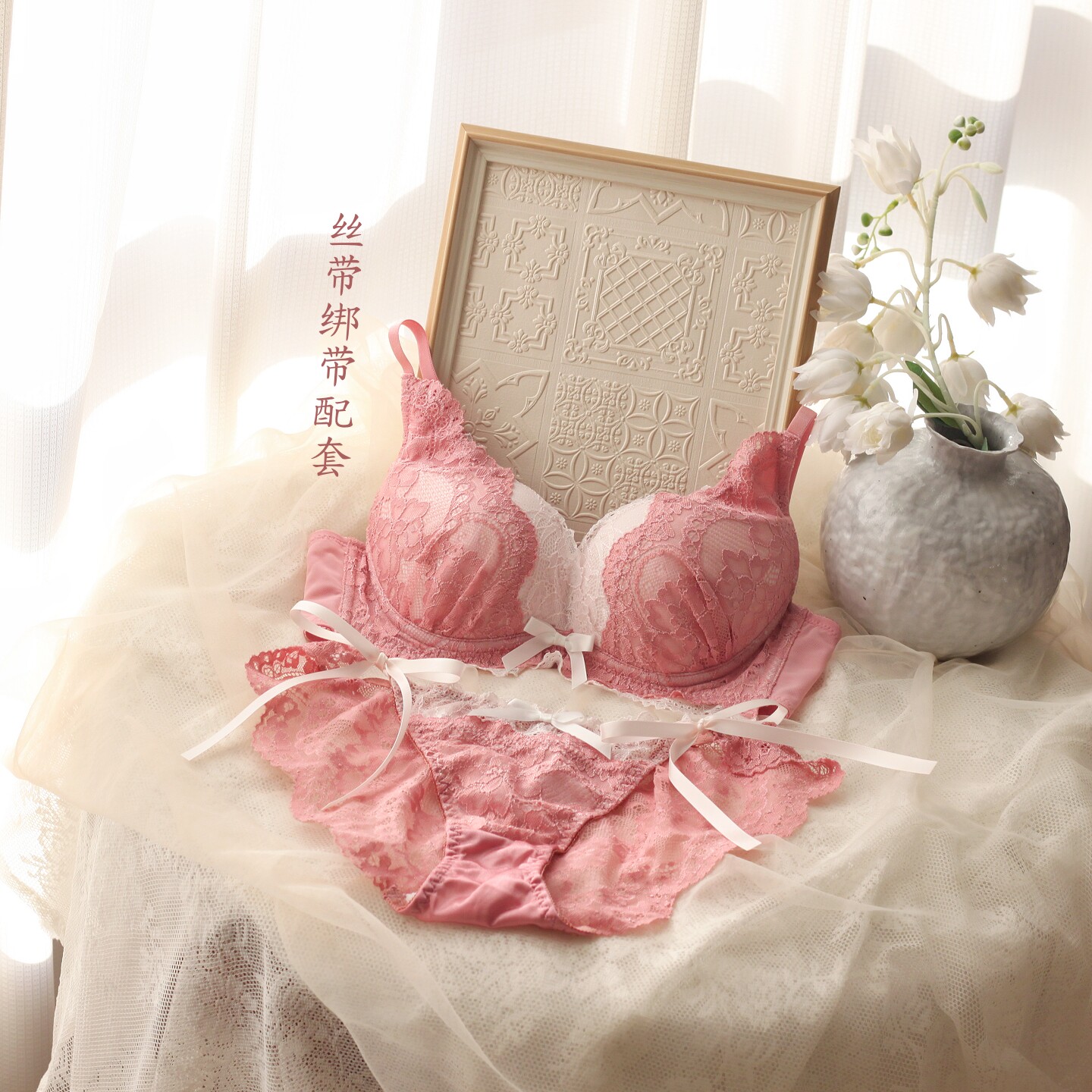 日单甜美芭蕾风蕾丝文胸套装v型聚拢蝴蝶结三角裤少女感腋下侧收 [Original Page Link]
