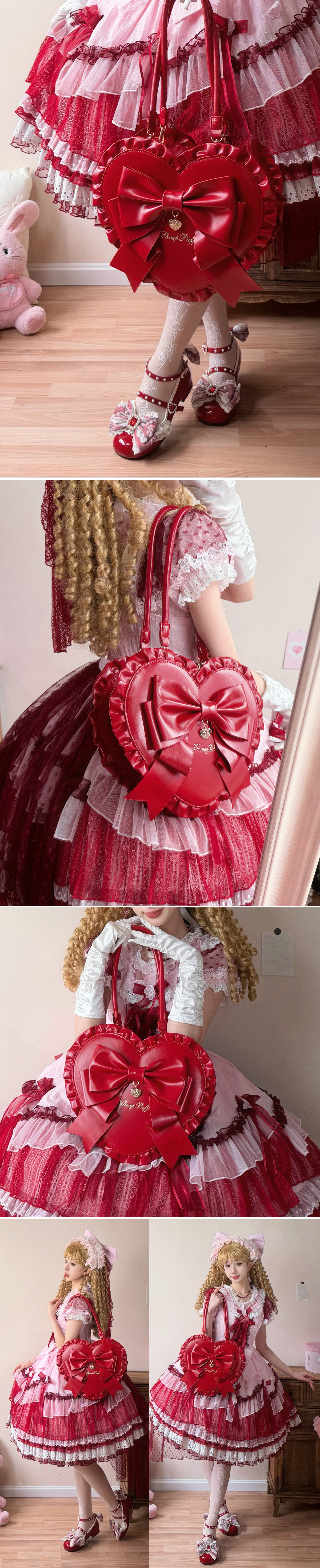 【定金】恋爱心结lolita包可爱甜娘花边爱心包单肩包大容量托特包 [Original Page Link]