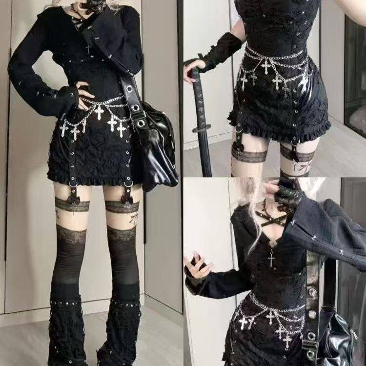Cross-shaped dark multi-layered belt, gothic accessories, cosplay, Y2K hot girl waist chain, metal punk subculture layering