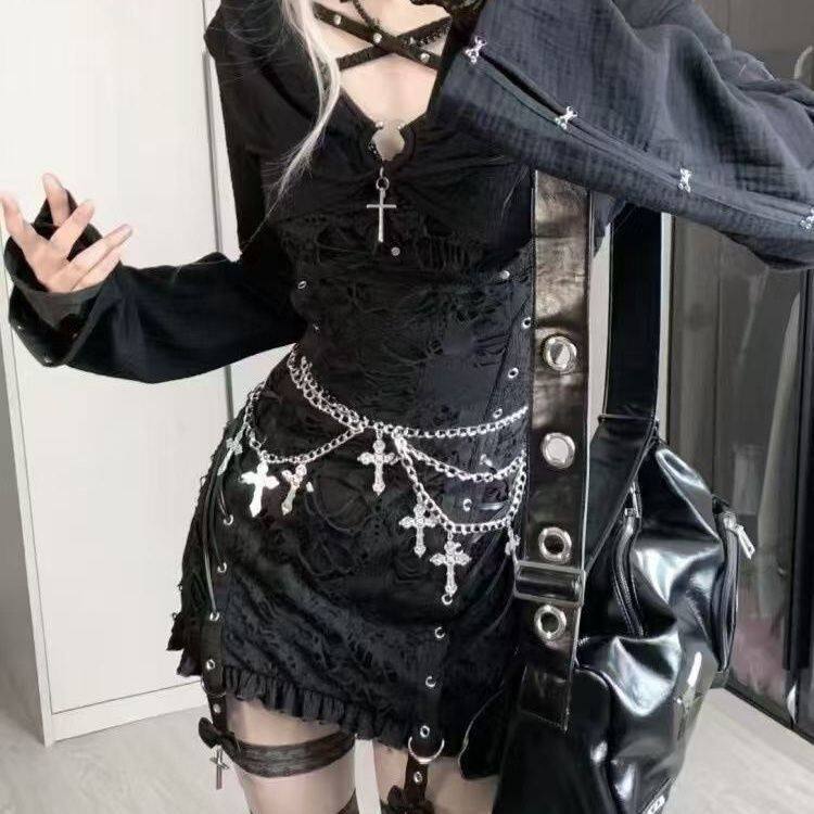 十字架暗黑多层腰带哥特配饰cosY2K辣妹腰链金属朋克亚文化叠穿 [Original Page Link]