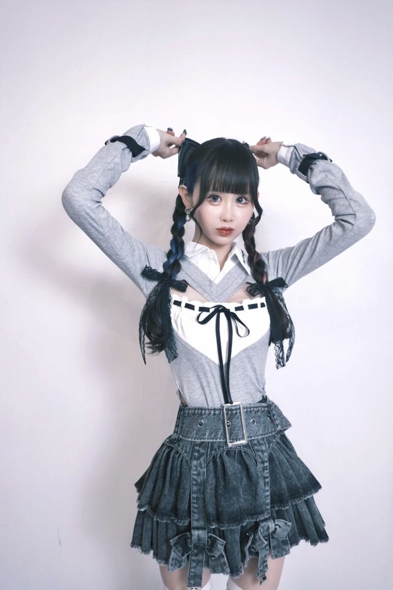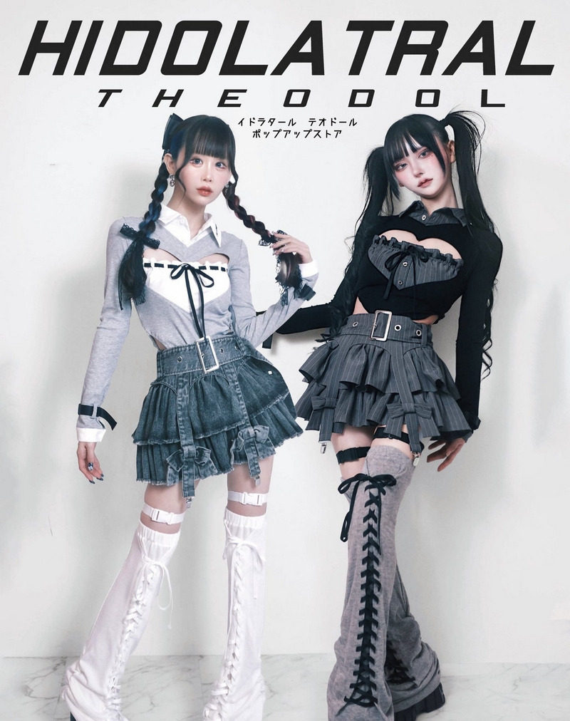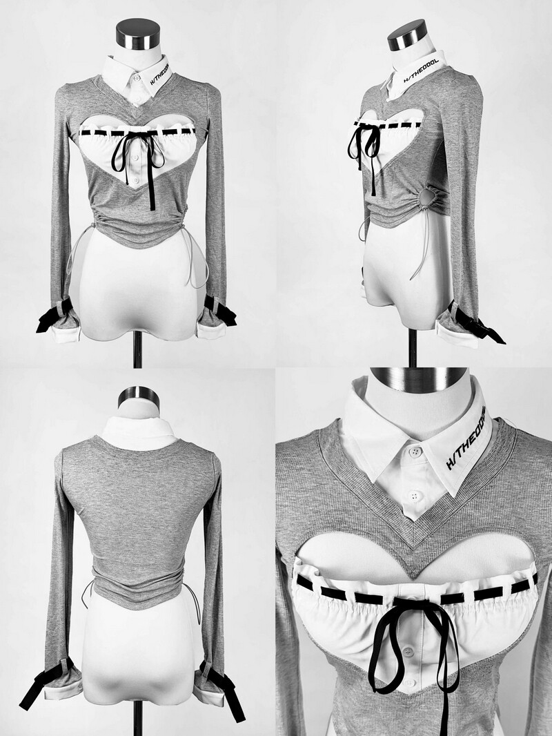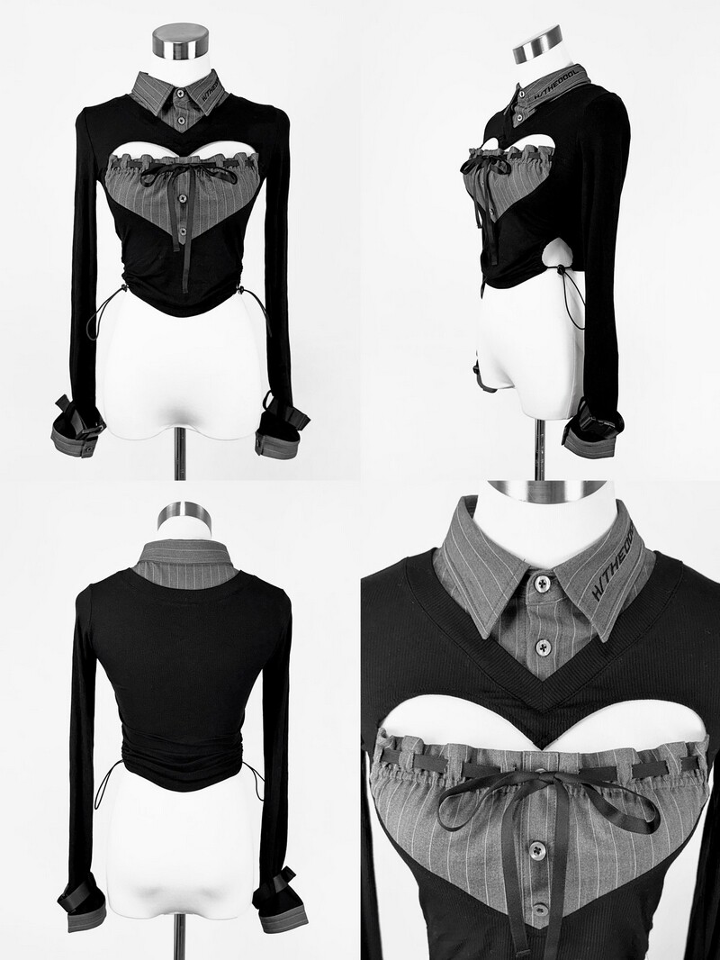 日牌原宿hidol爱心镂空开胸针织拼色优雅性感修身翻领衬衫轻lo风 [Original Page Link]