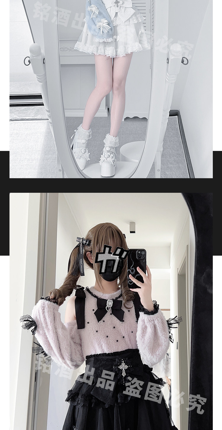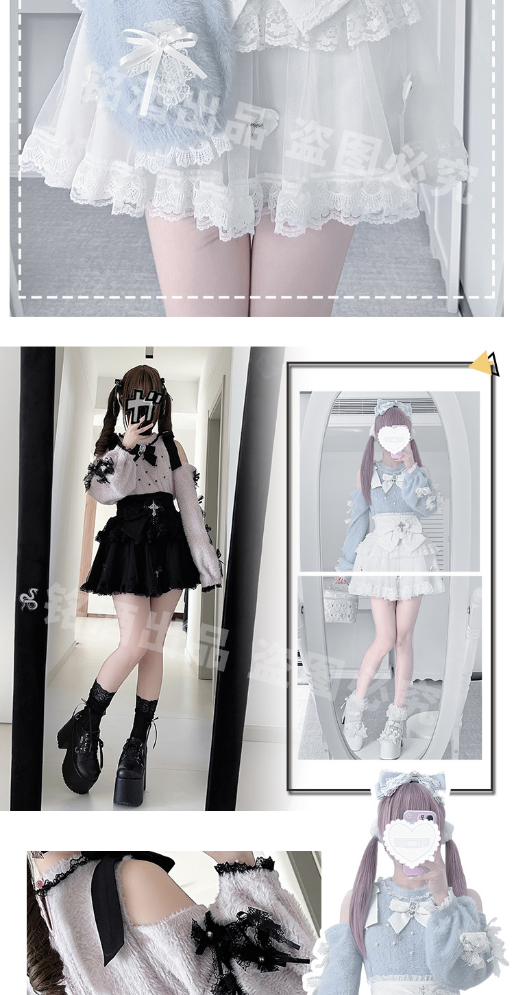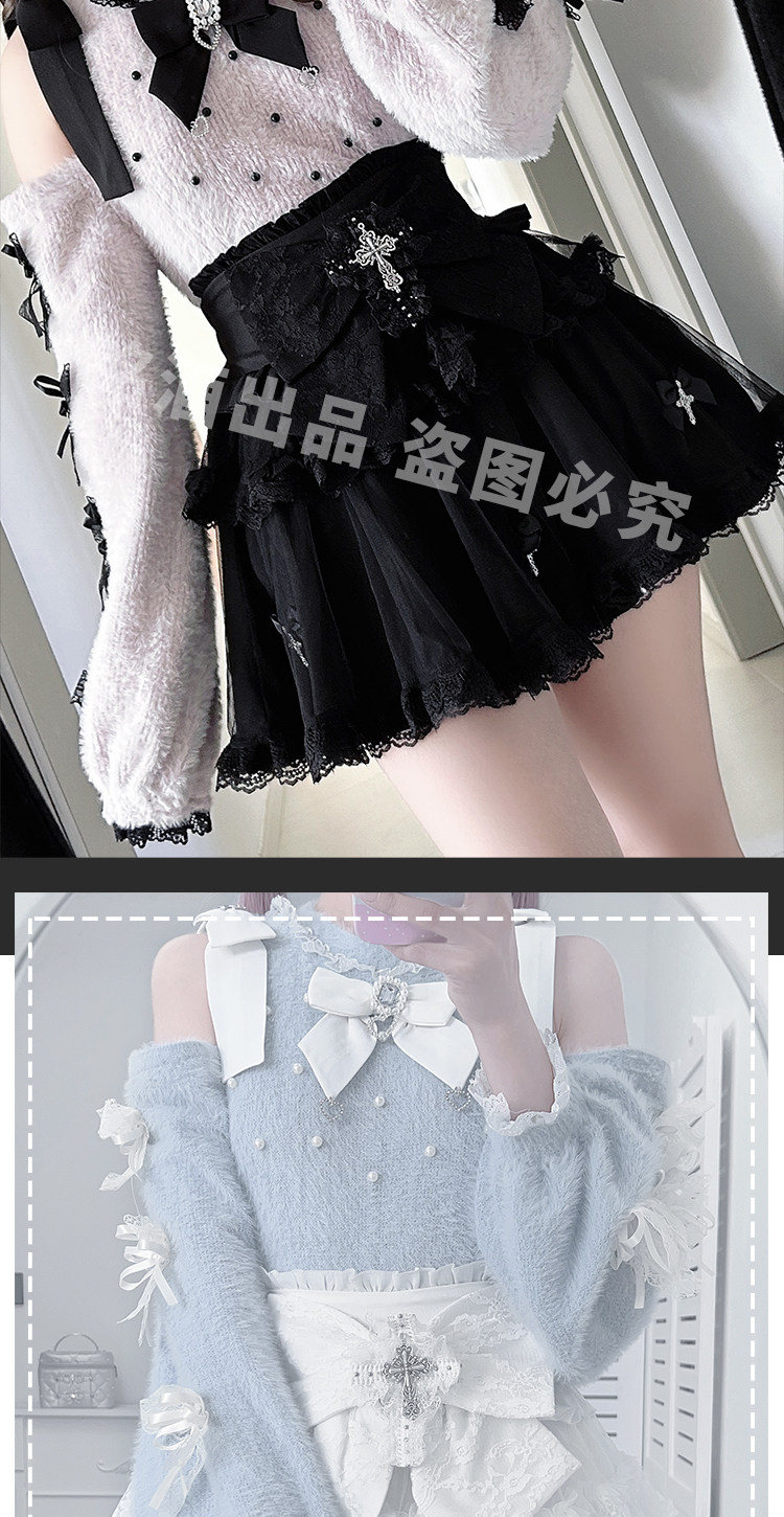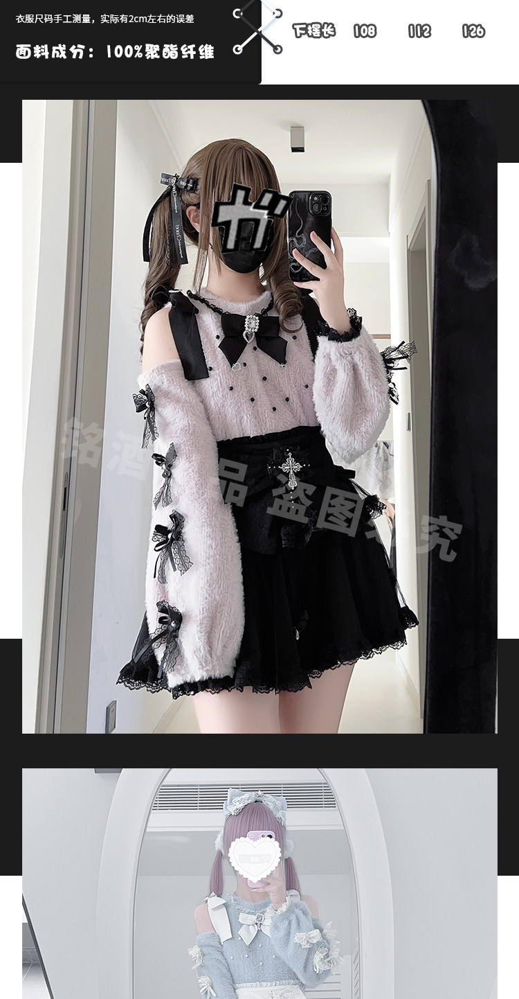 铭酒学园y2k亚文化蕾系可爱粉色水色短款露肩毛衣高腰裙两件式套装 [Original Page Link]