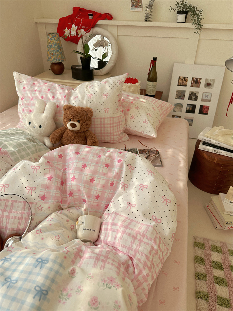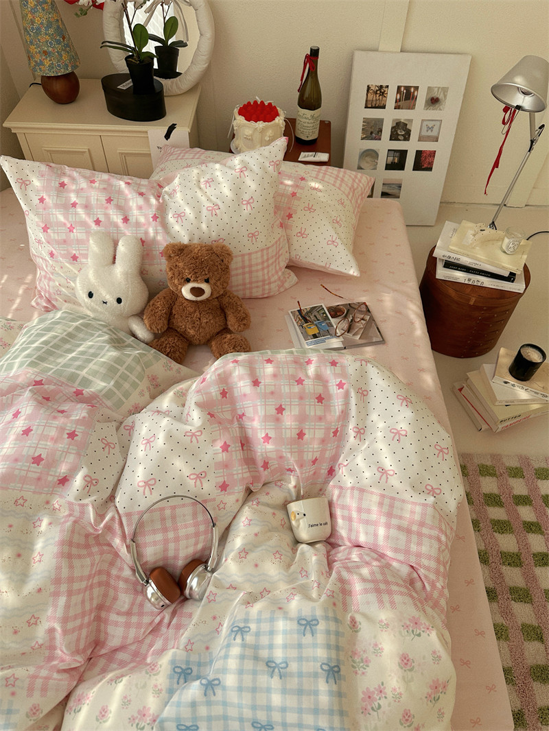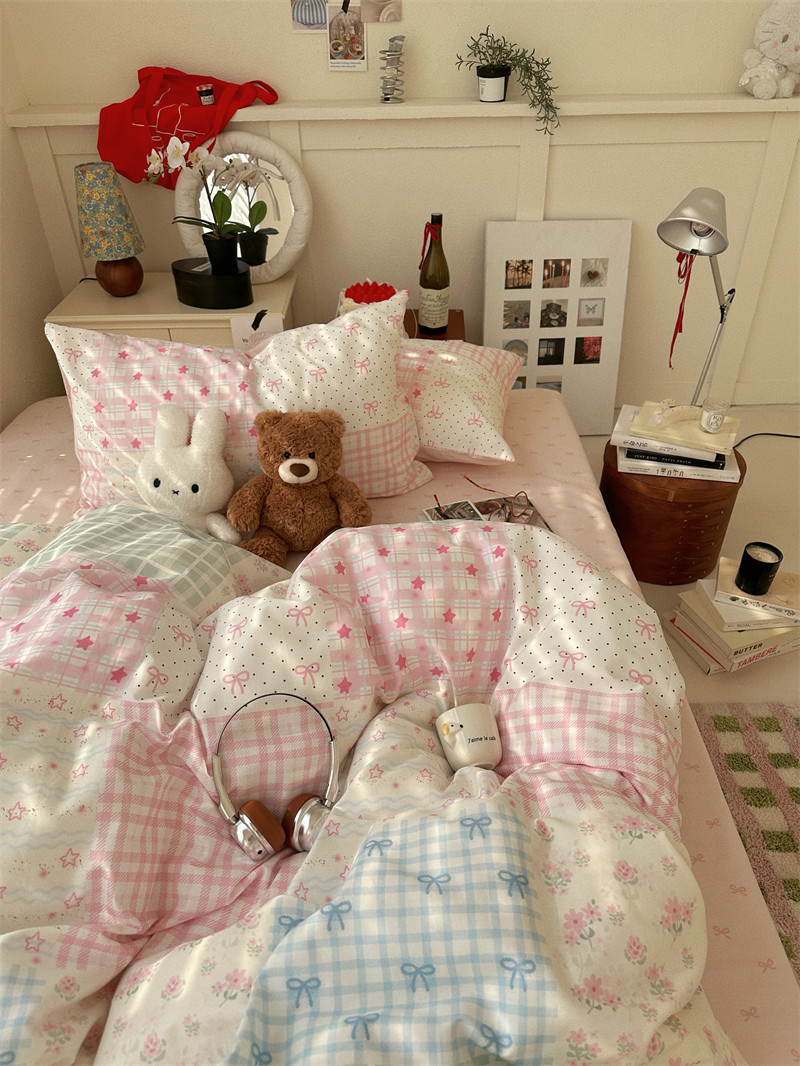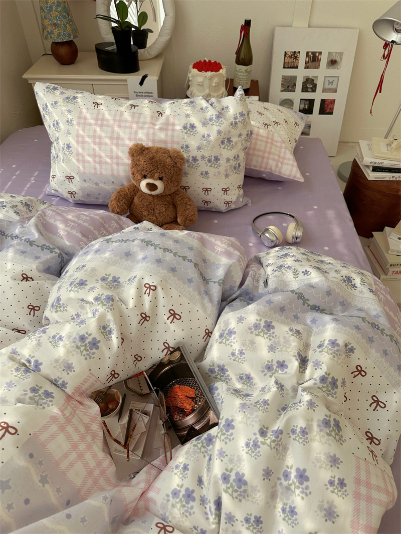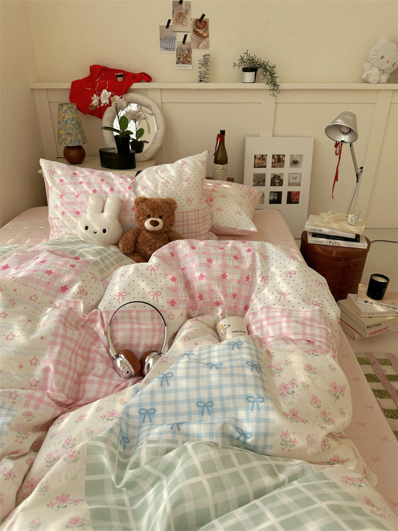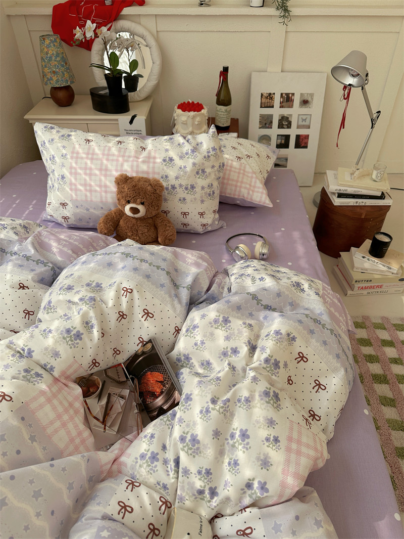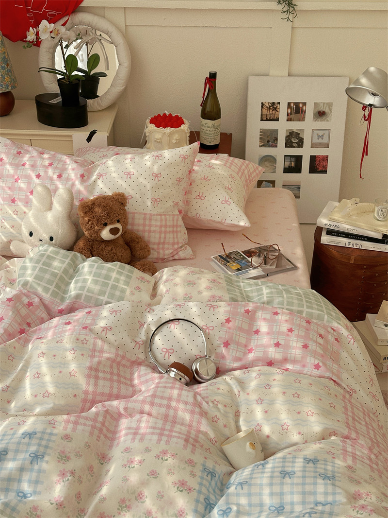 Pear Dream Collection: Cute Spring-Style Pure Cotton Four-Piece Bedding Set (Sheets, Duvet Covers, Fitted Sheets) for Dormitory Use