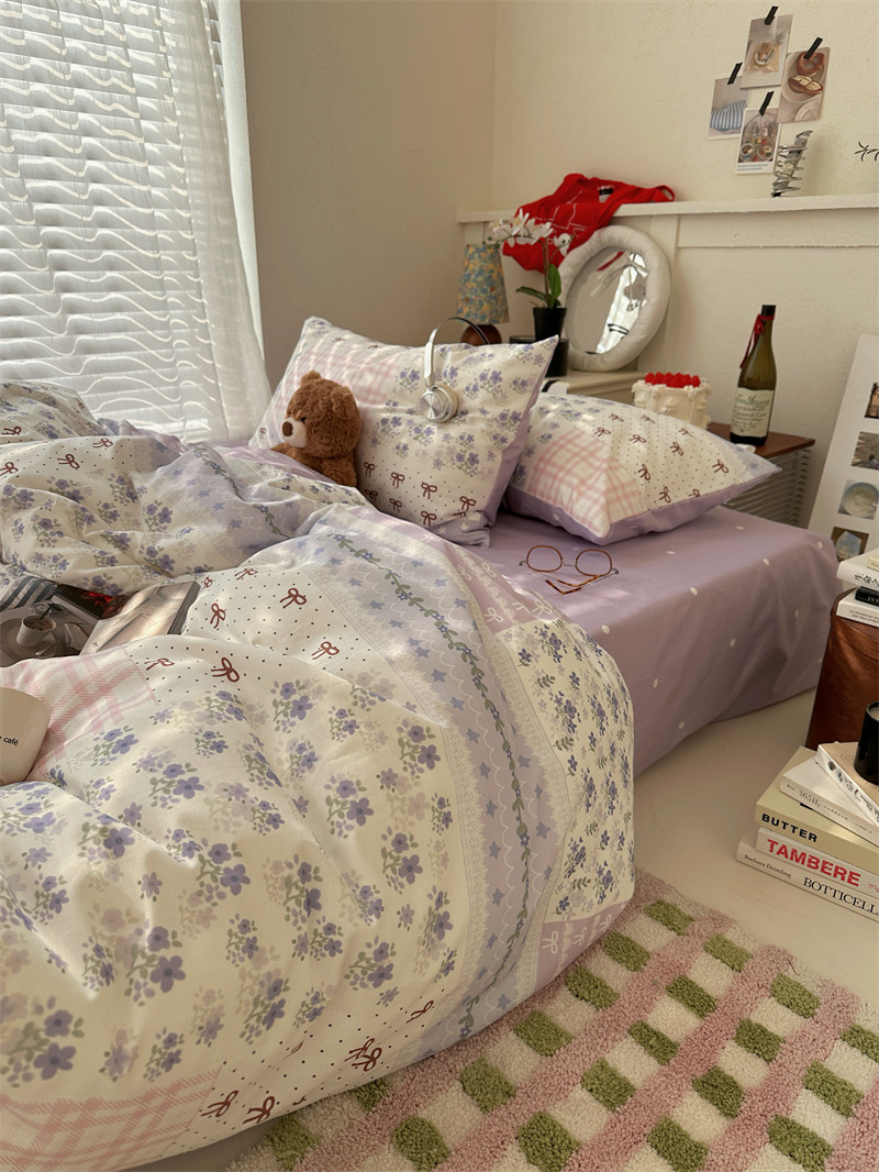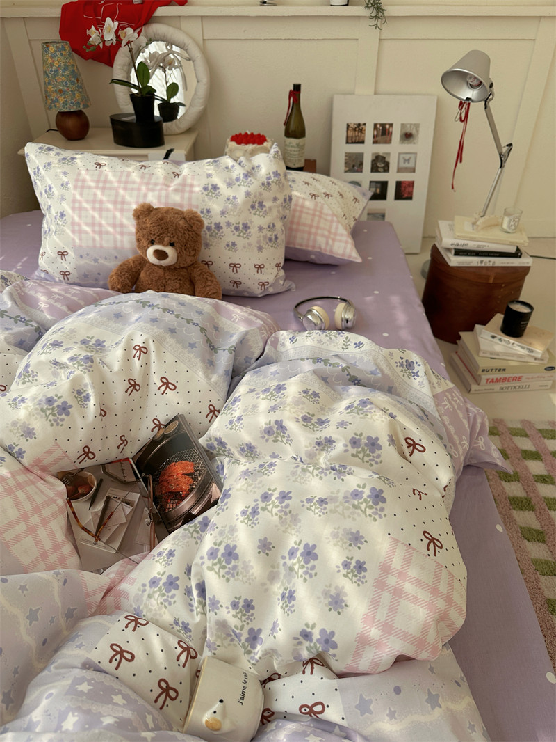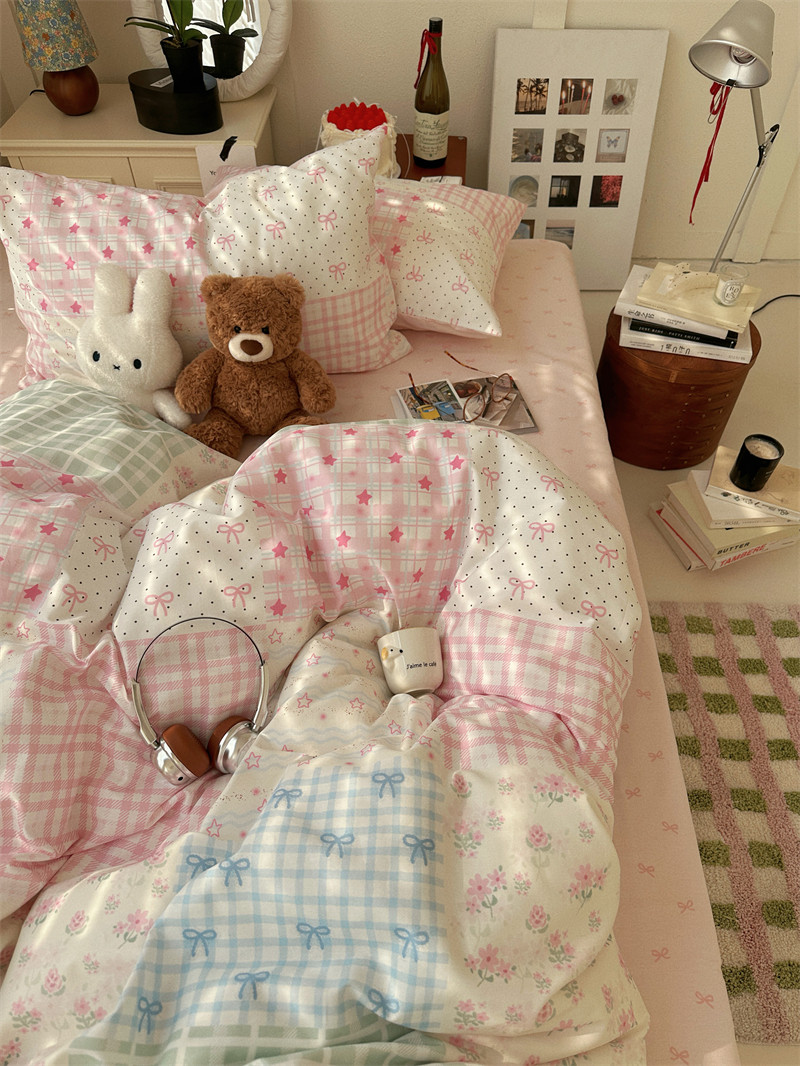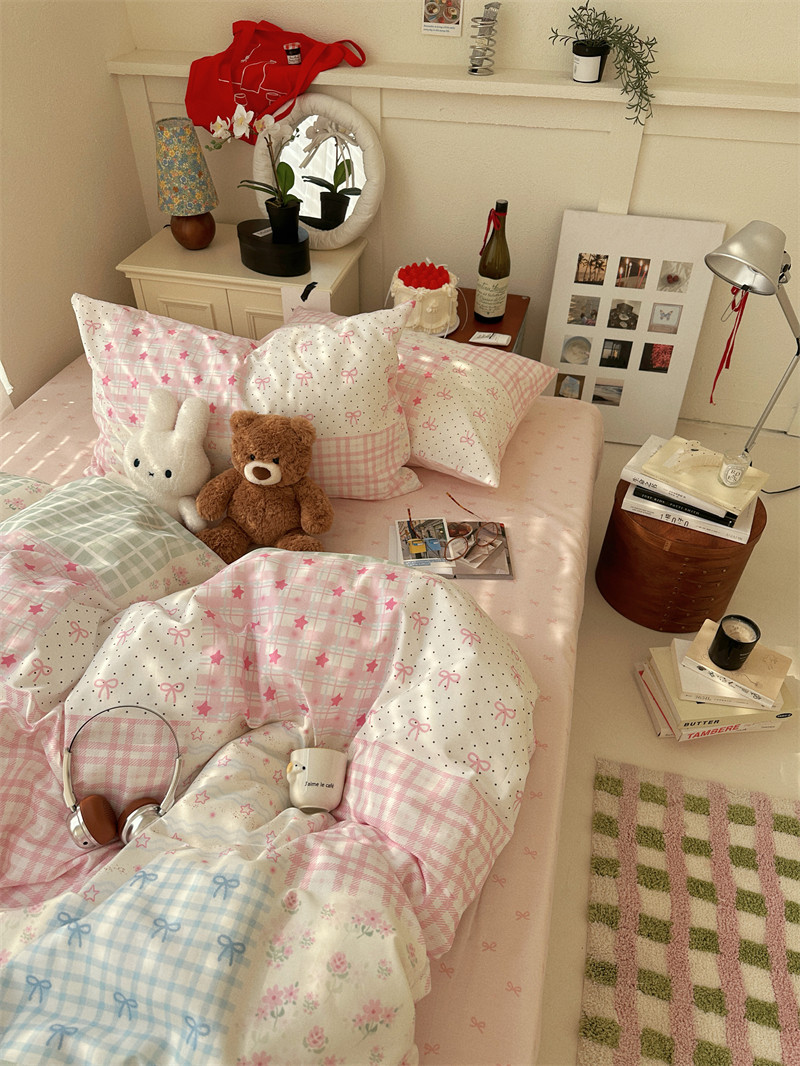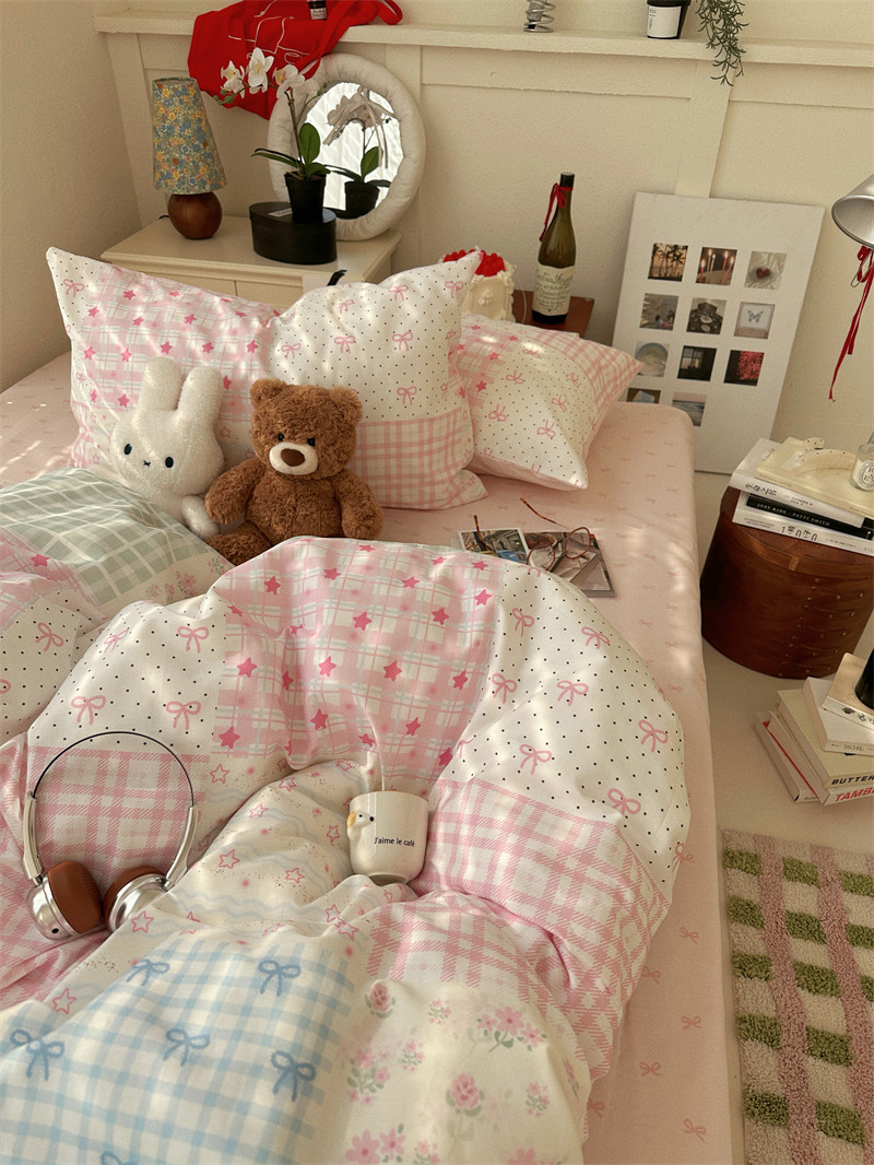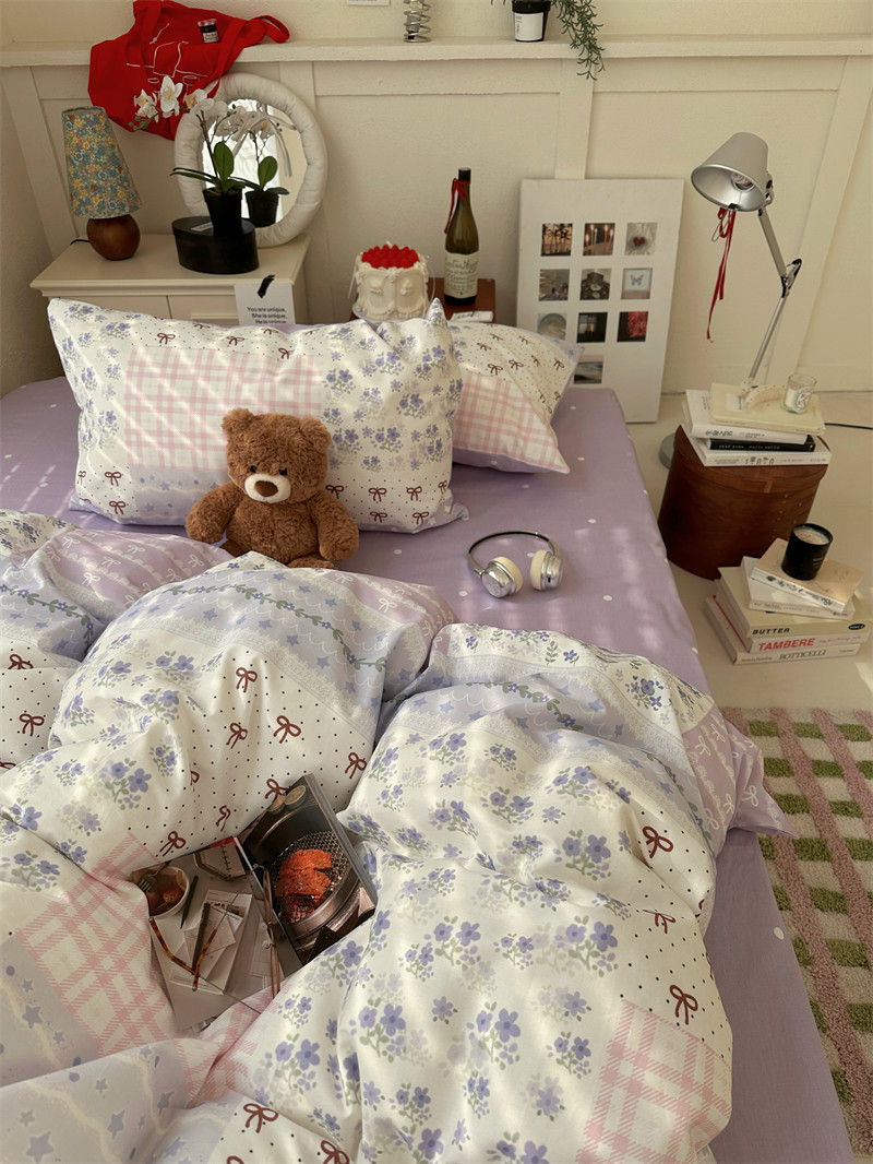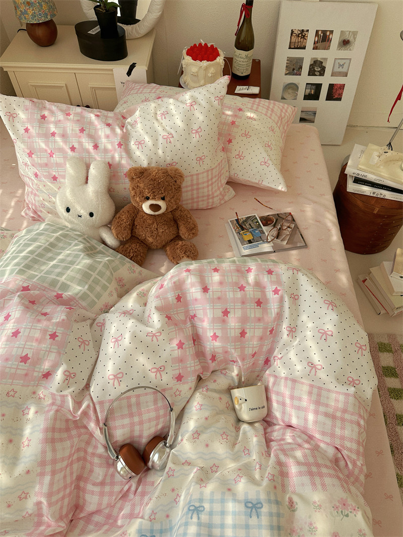 Pear Dream Collection: Cute Spring-Style Pure Cotton Four-Piece Bedding Set (Sheets, Duvet Covers, Fitted Sheets) for Dormitory Use