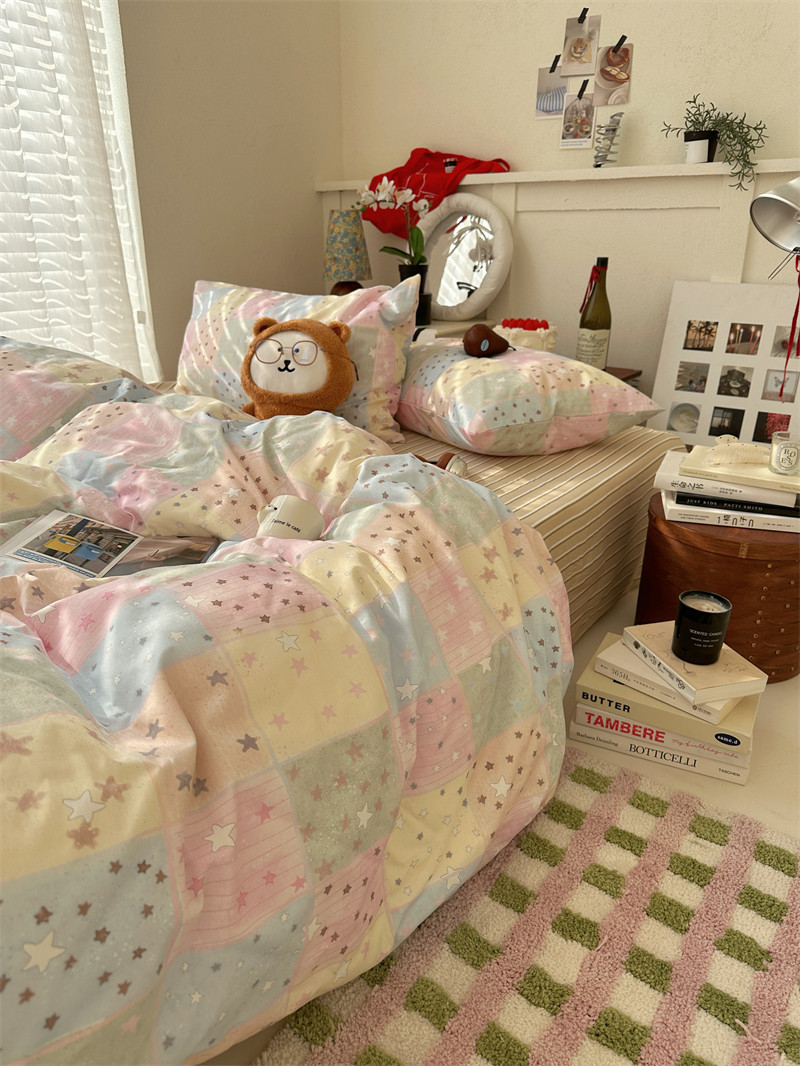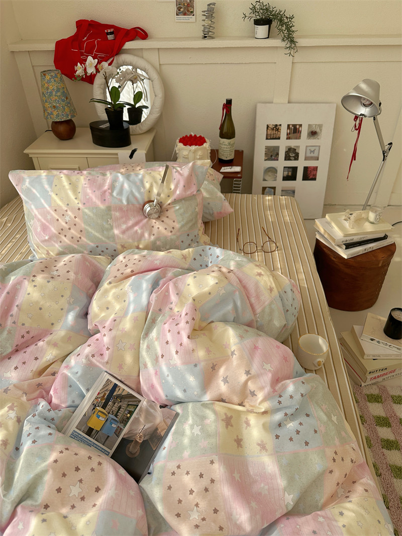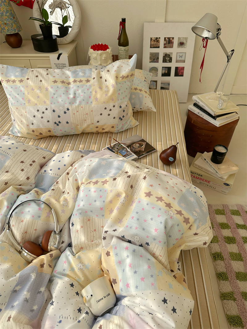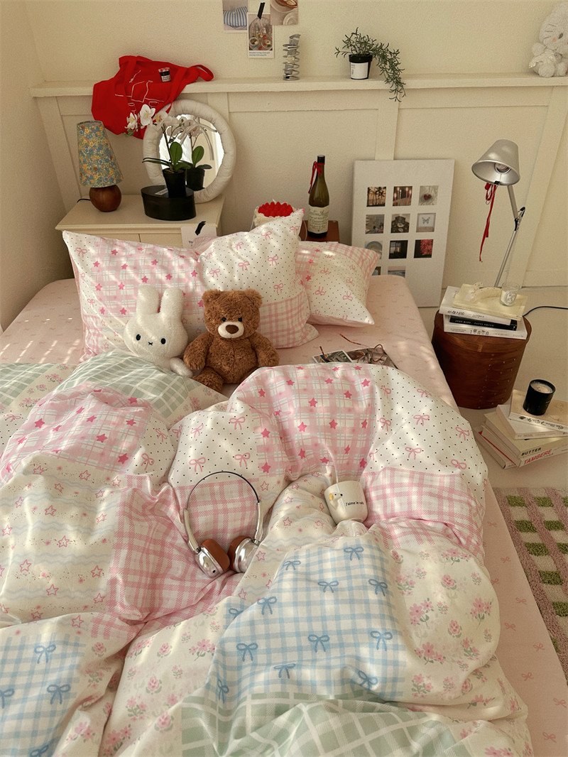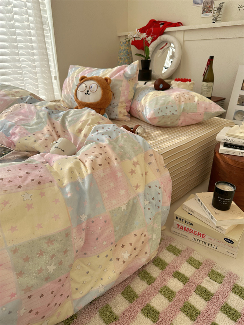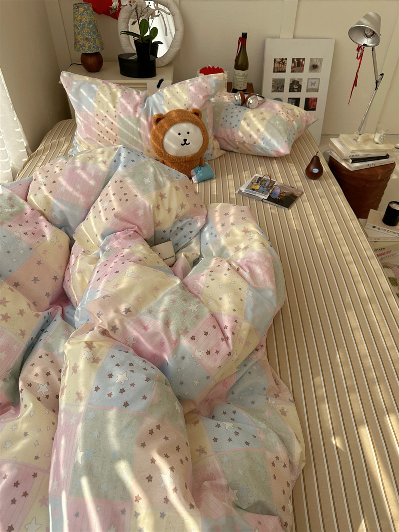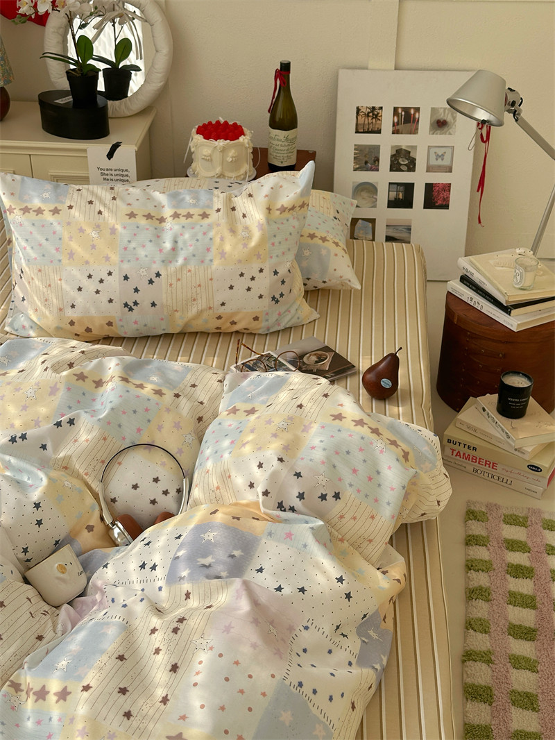 Pear Dream Collection: Cute Spring-Style Pure Cotton Four-Piece Bedding Set (Sheets, Duvet Covers, Fitted Sheets) for Dormitory Use