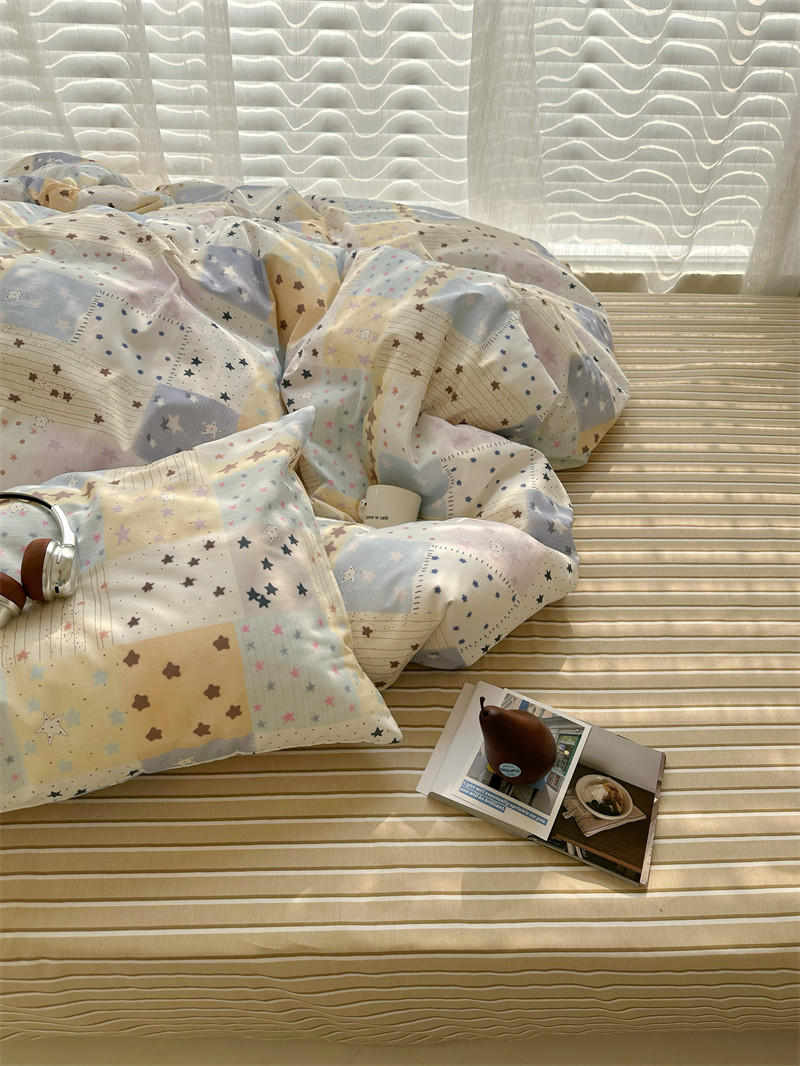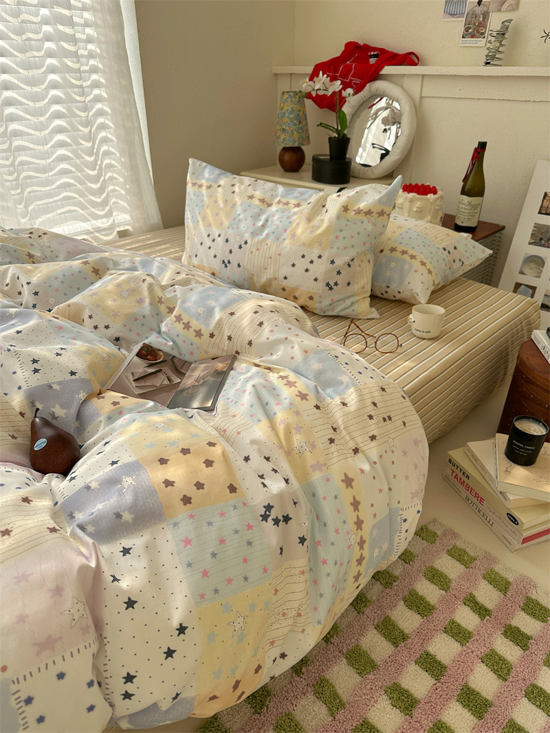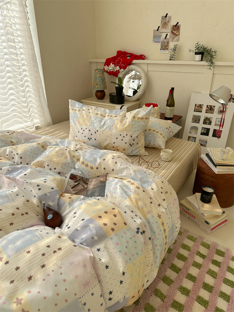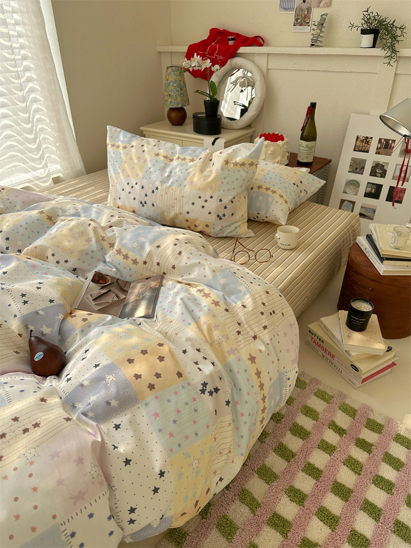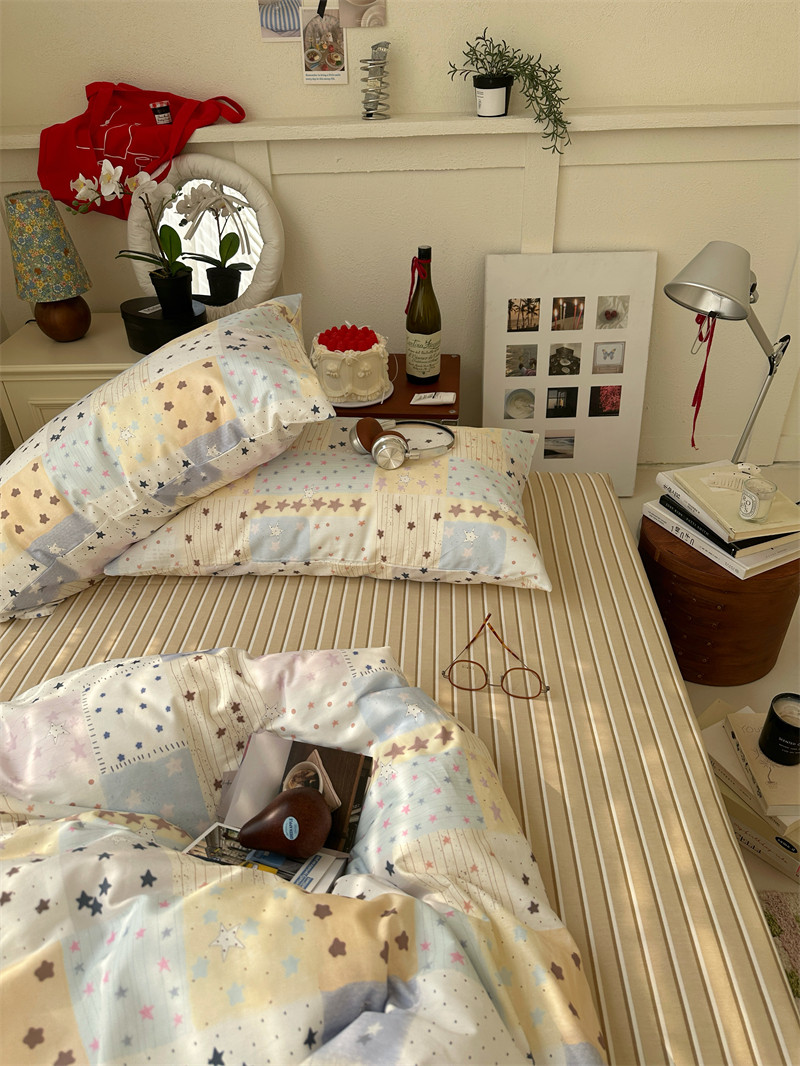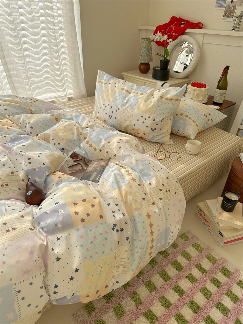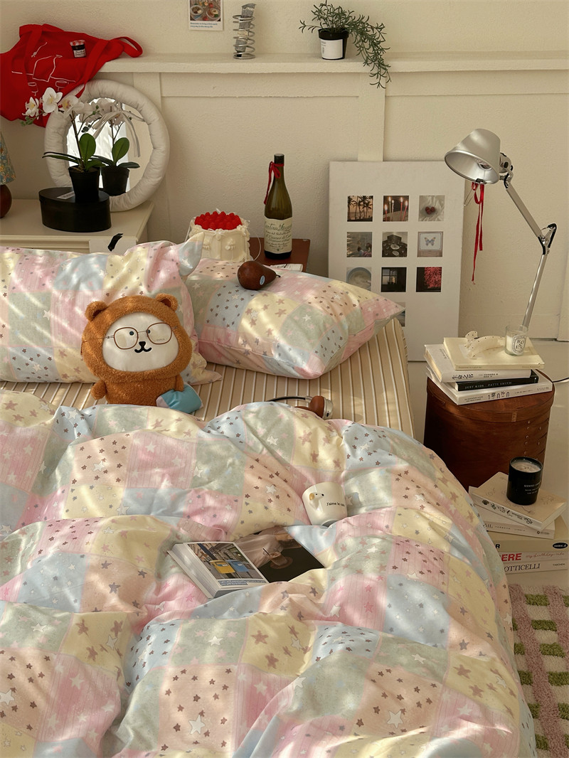 Pear Dream Collection: Cute Spring-Style Pure Cotton Four-Piece Bedding Set (Sheets, Duvet Covers, Fitted Sheets) for Dormitory Use