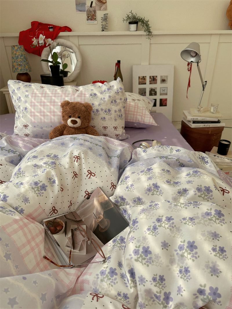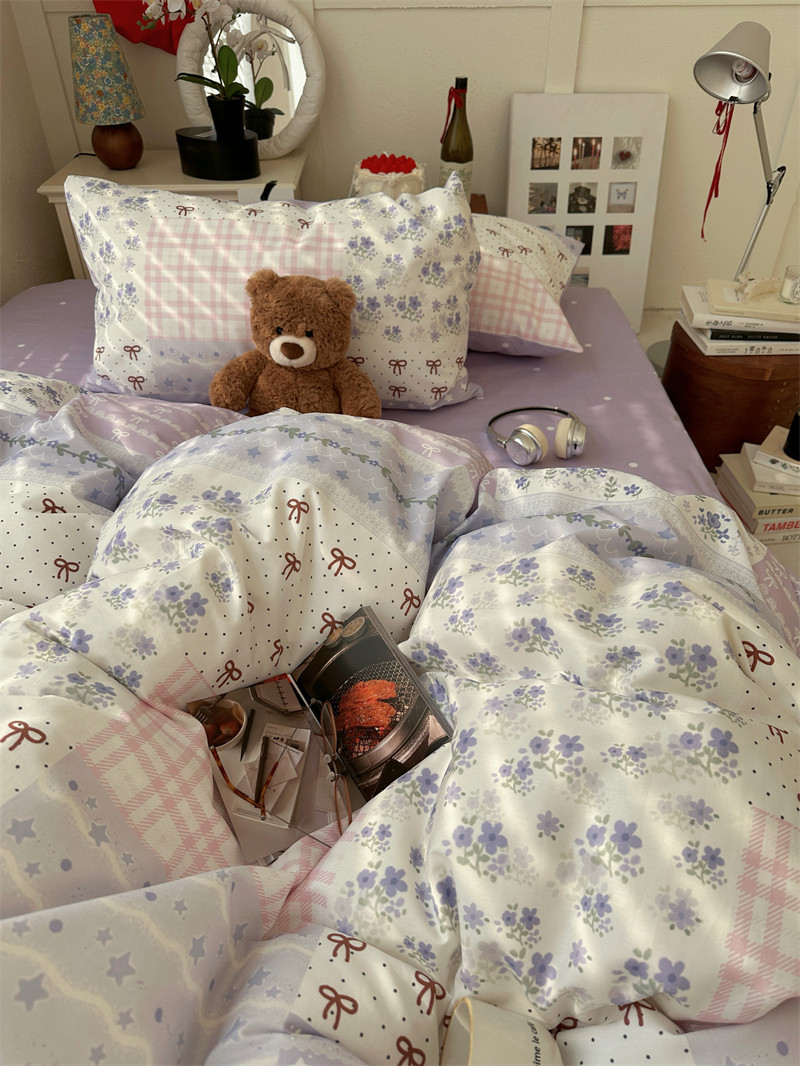 梨梦 收集春天 可爱纯棉四件套全棉床单被套床笠款宿舍床上用品 [Original Page Link]