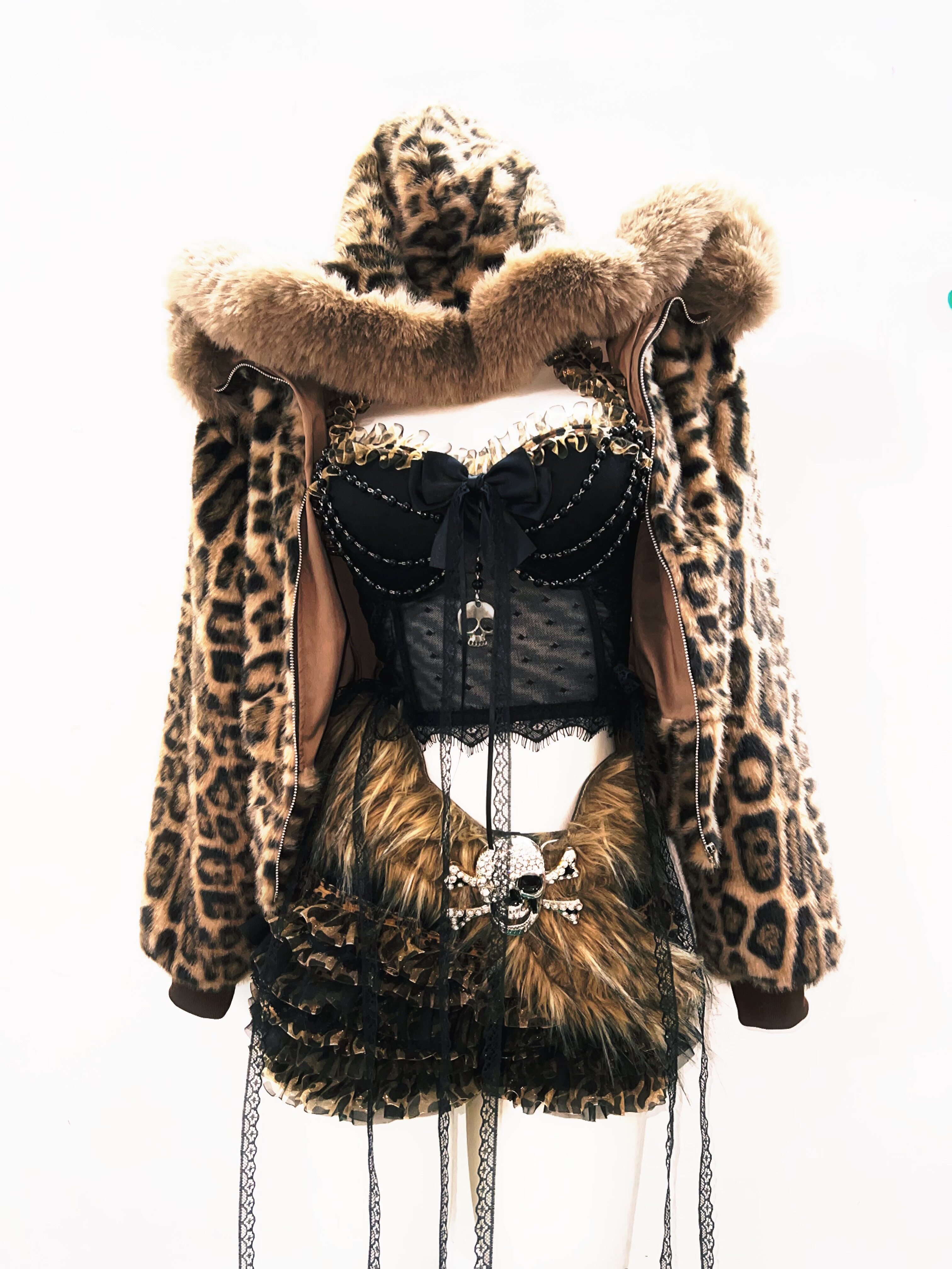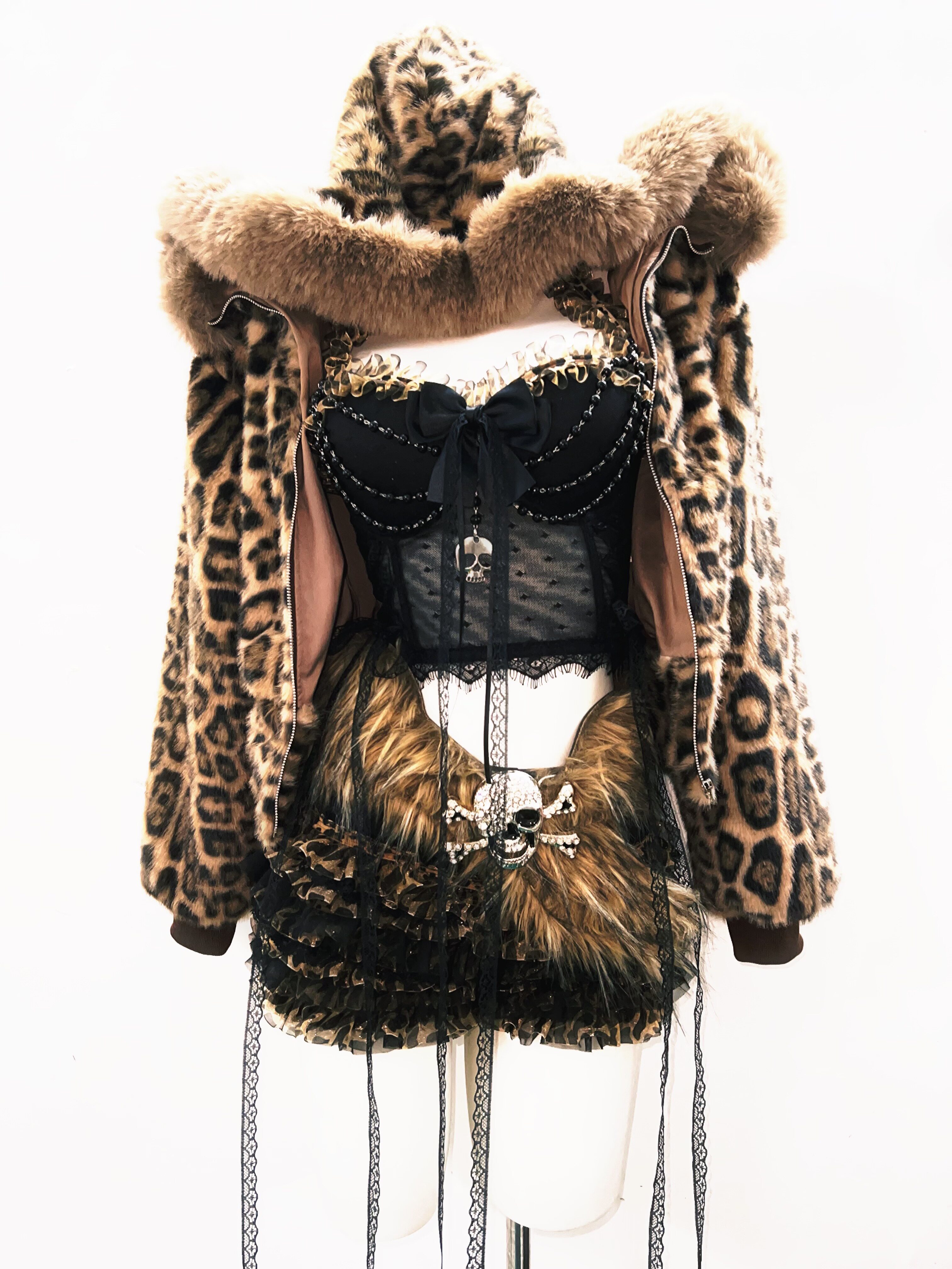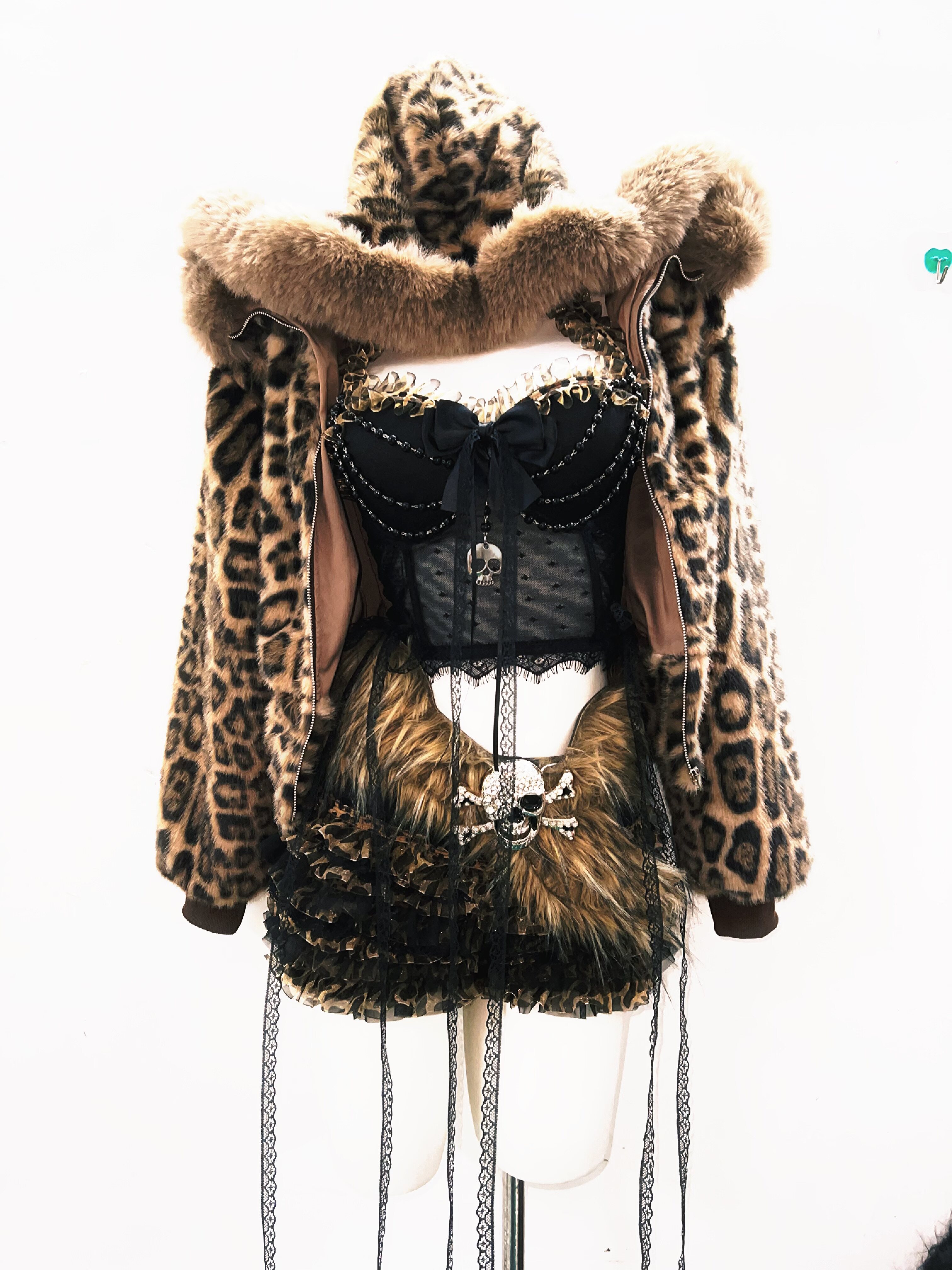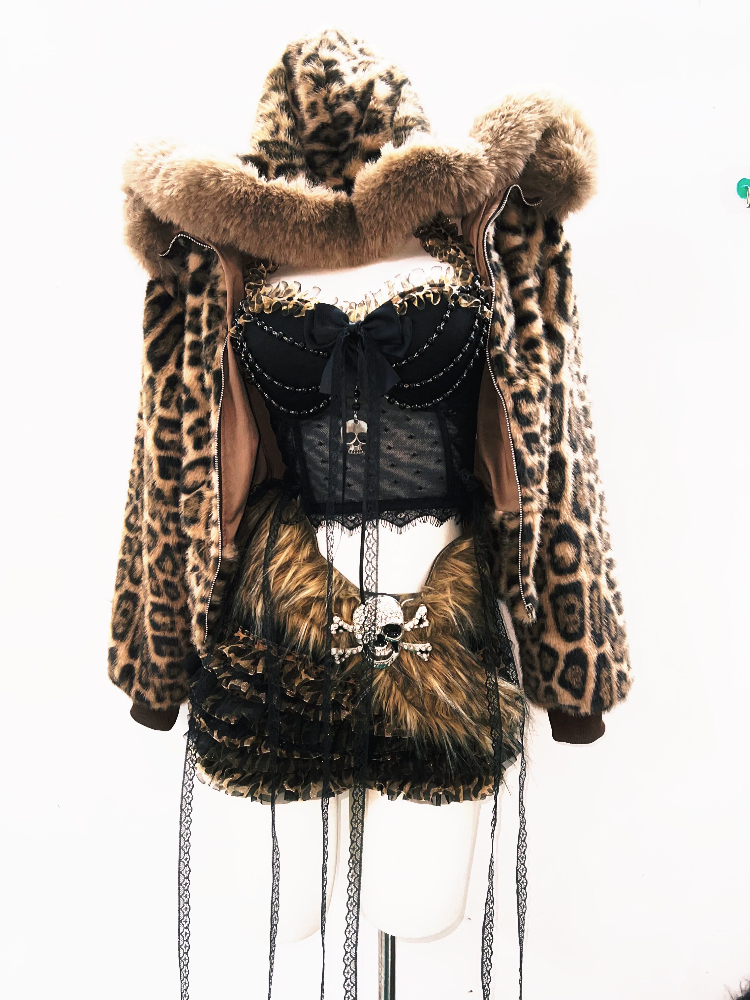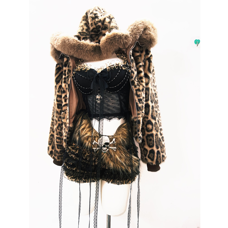 GR原创涩谷vintage套装豹纹外套女棕色毛领复古Y2K视觉系连帽女装 [Original Page Link]
