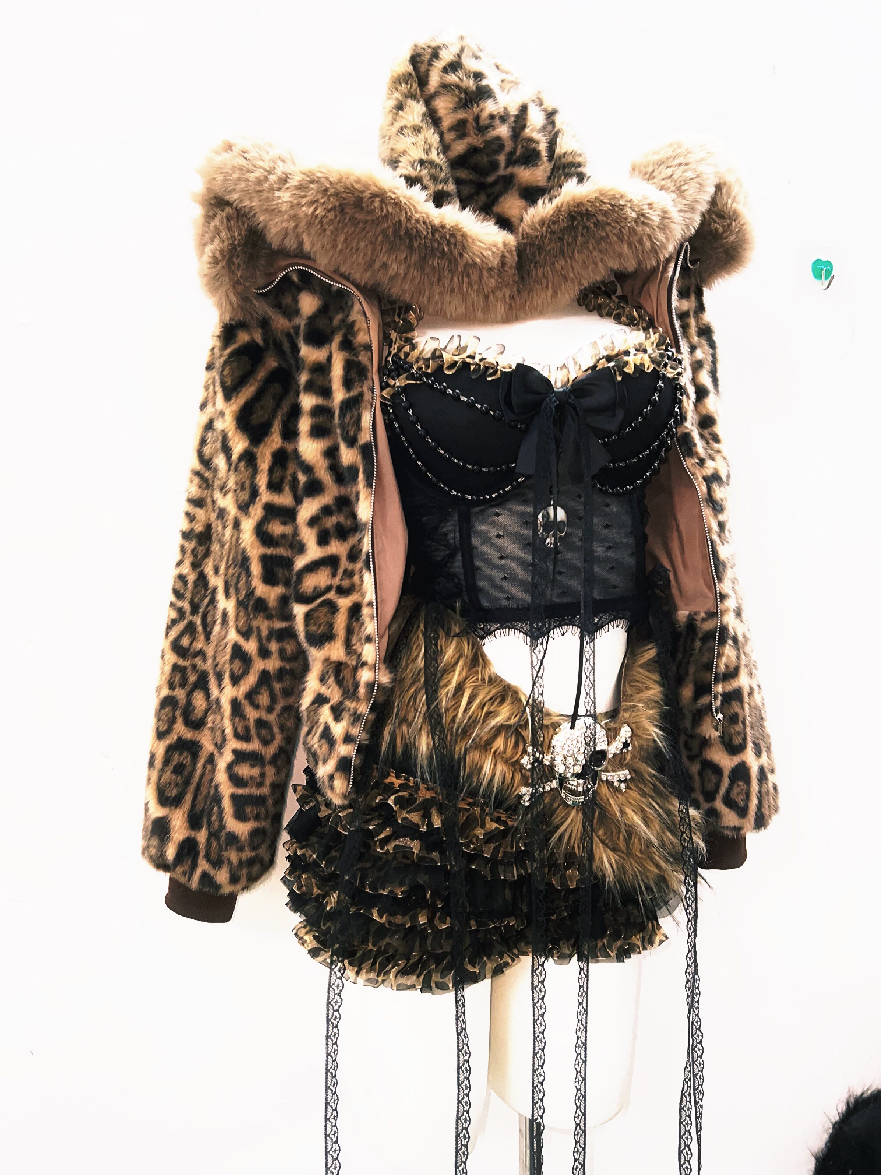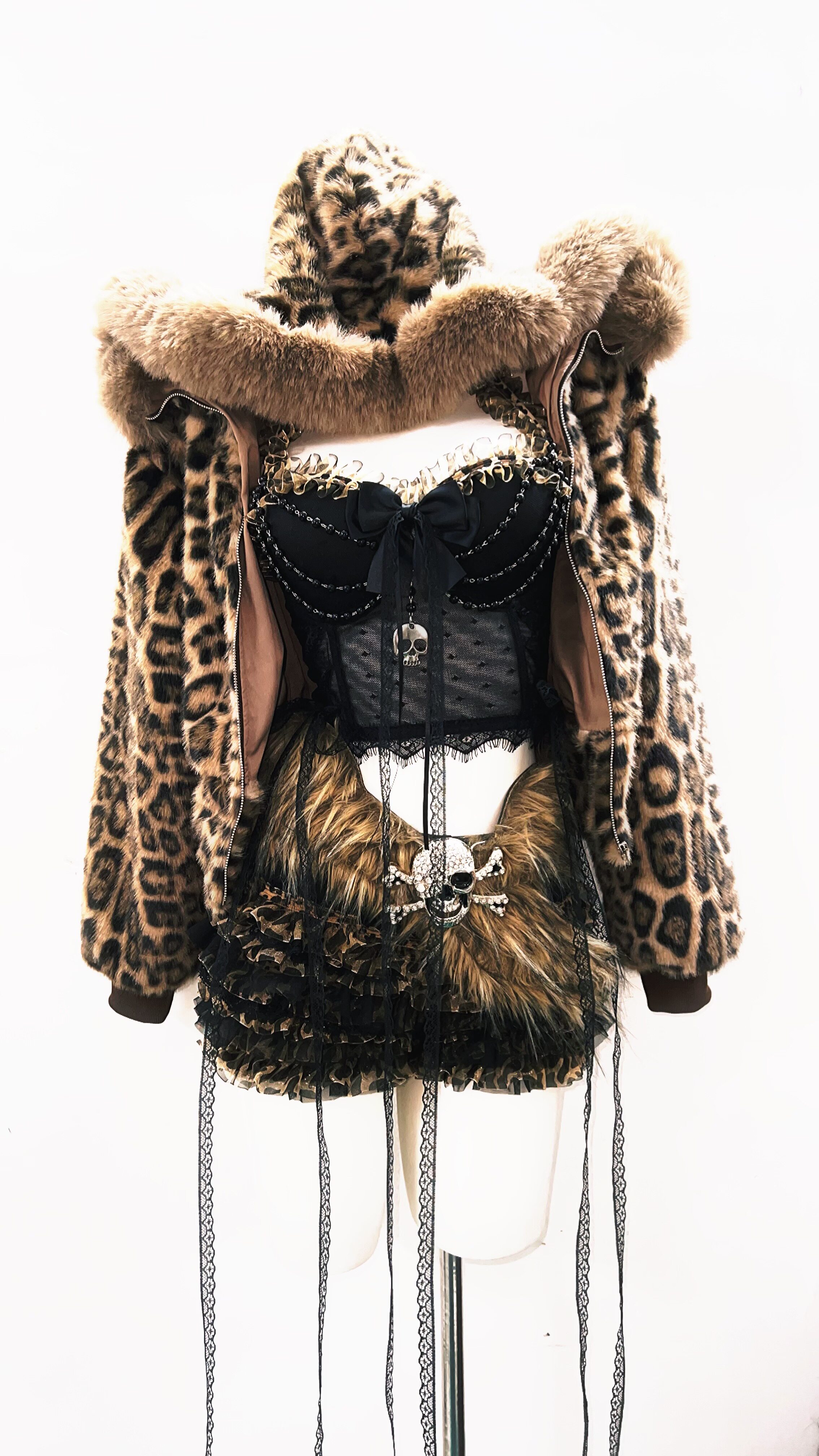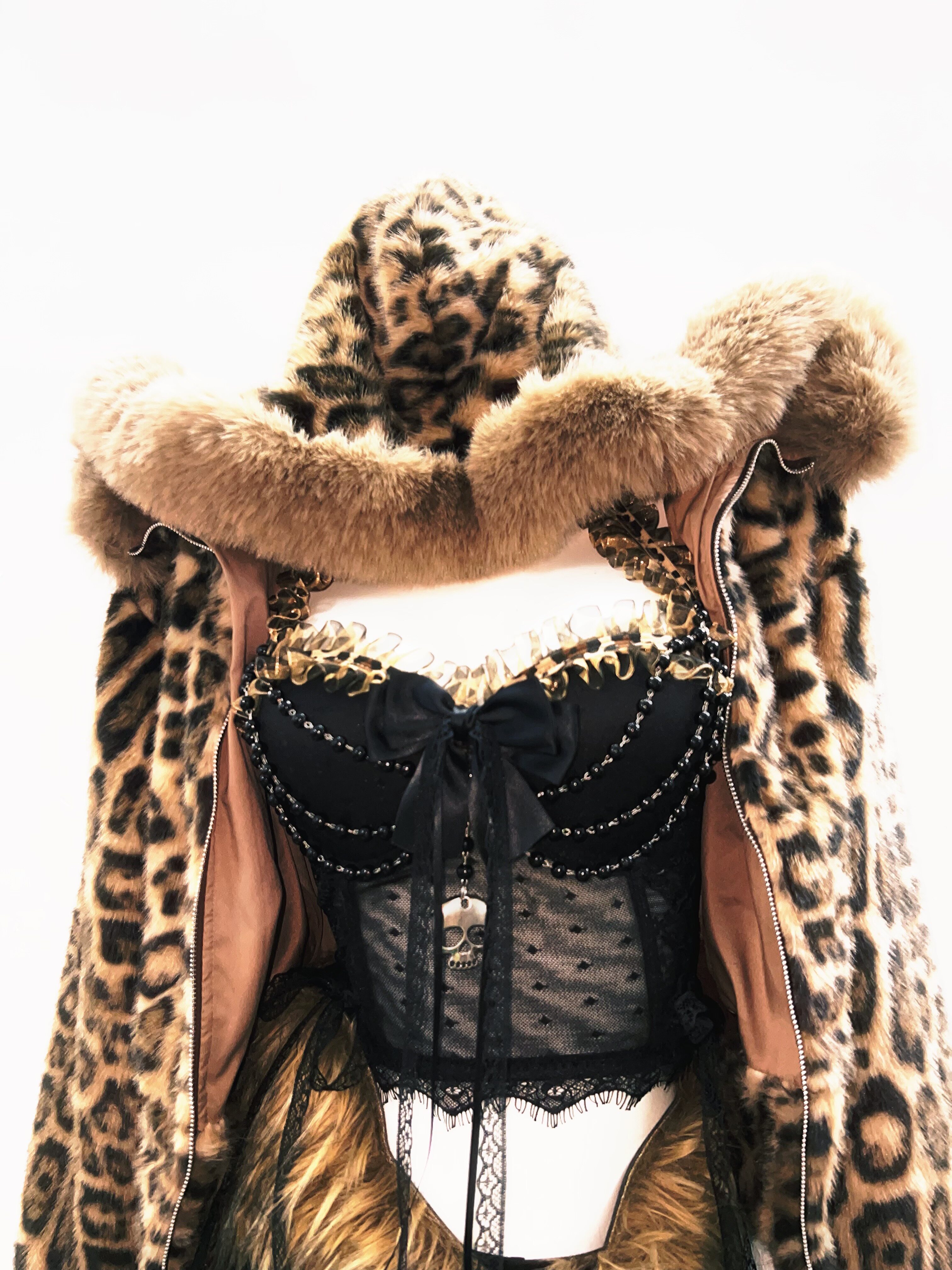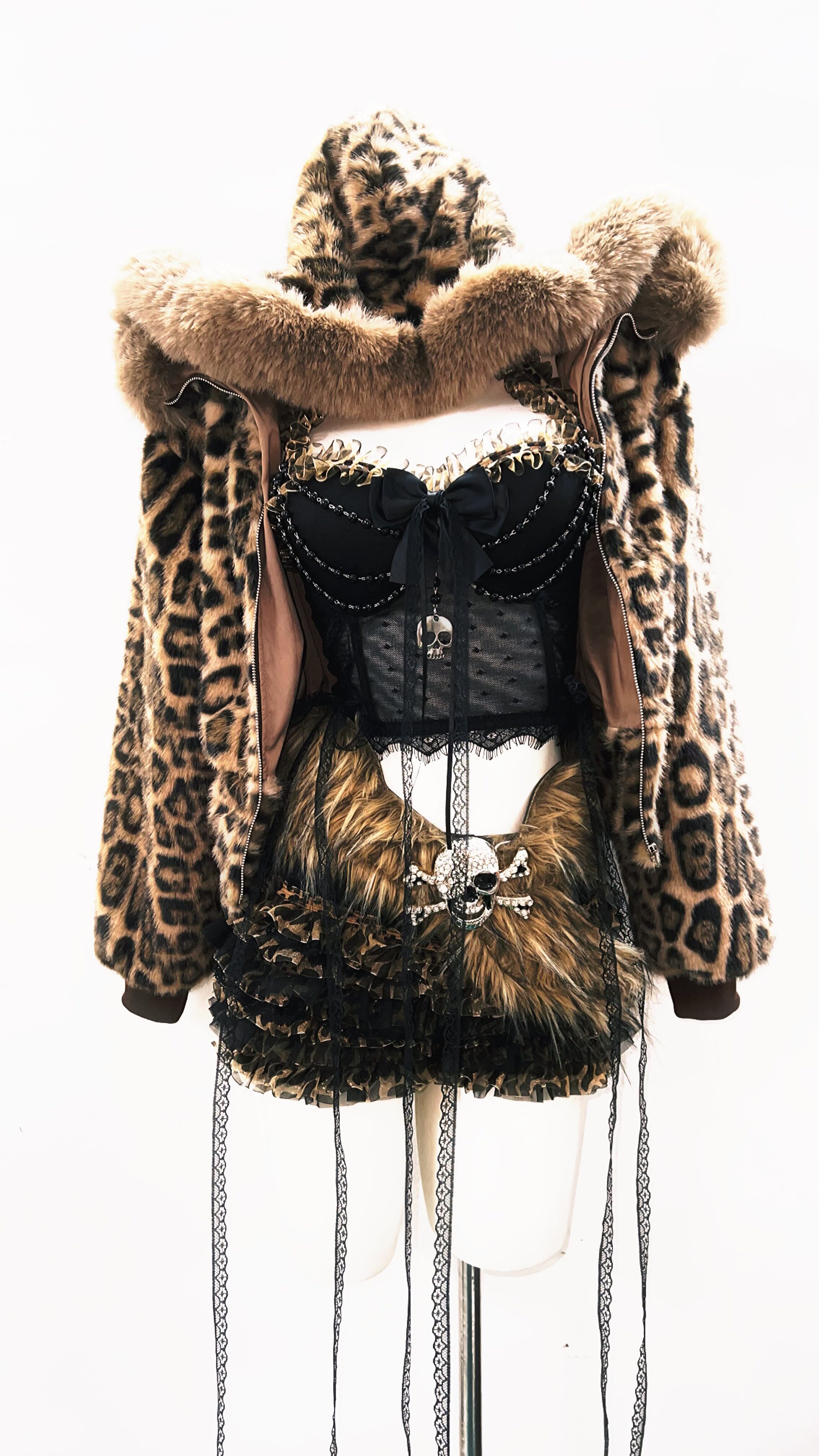 GR原创涩谷vintage套装豹纹外套女棕色毛领复古Y2K视觉系连帽女装 [Original Page Link]