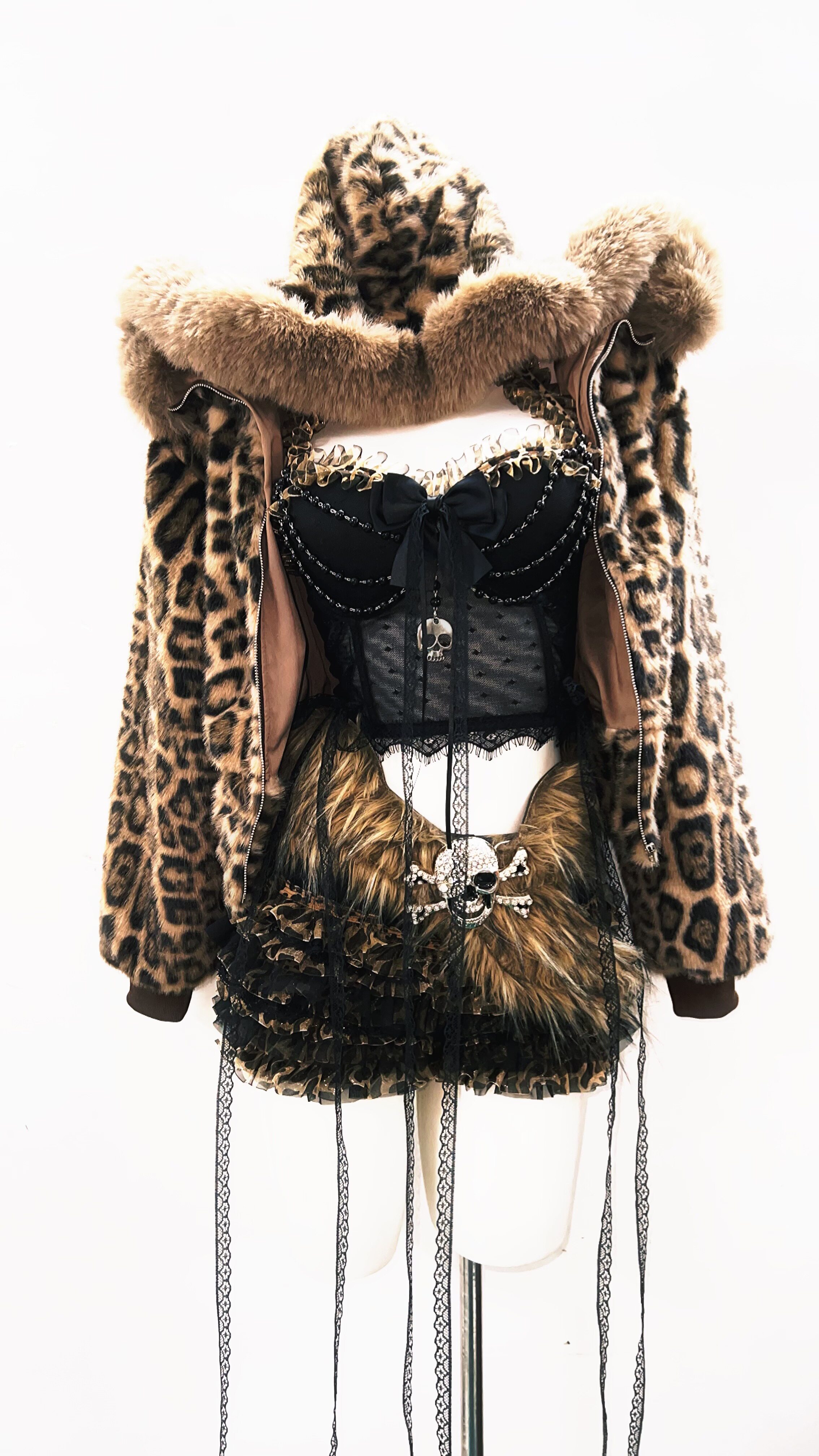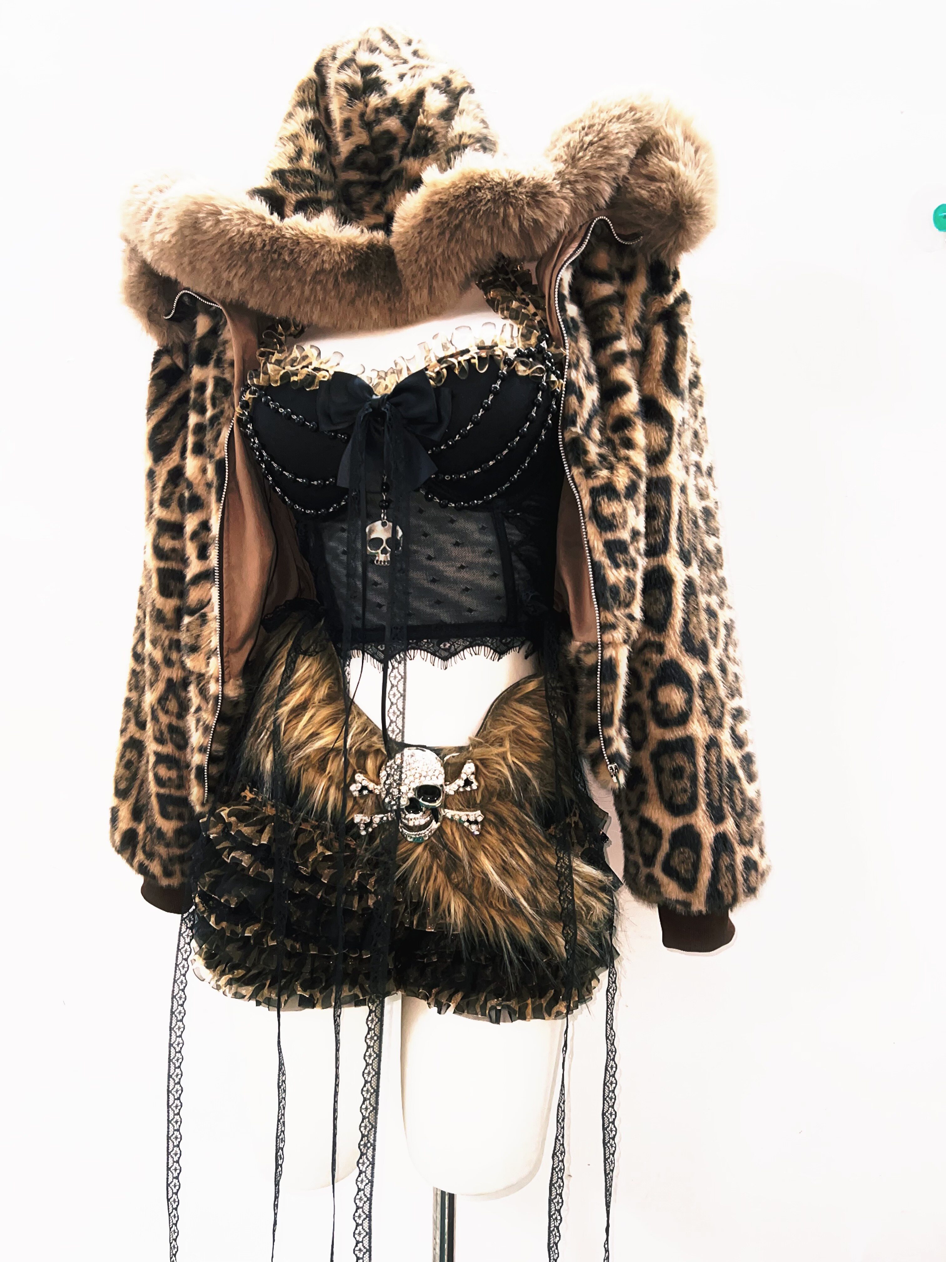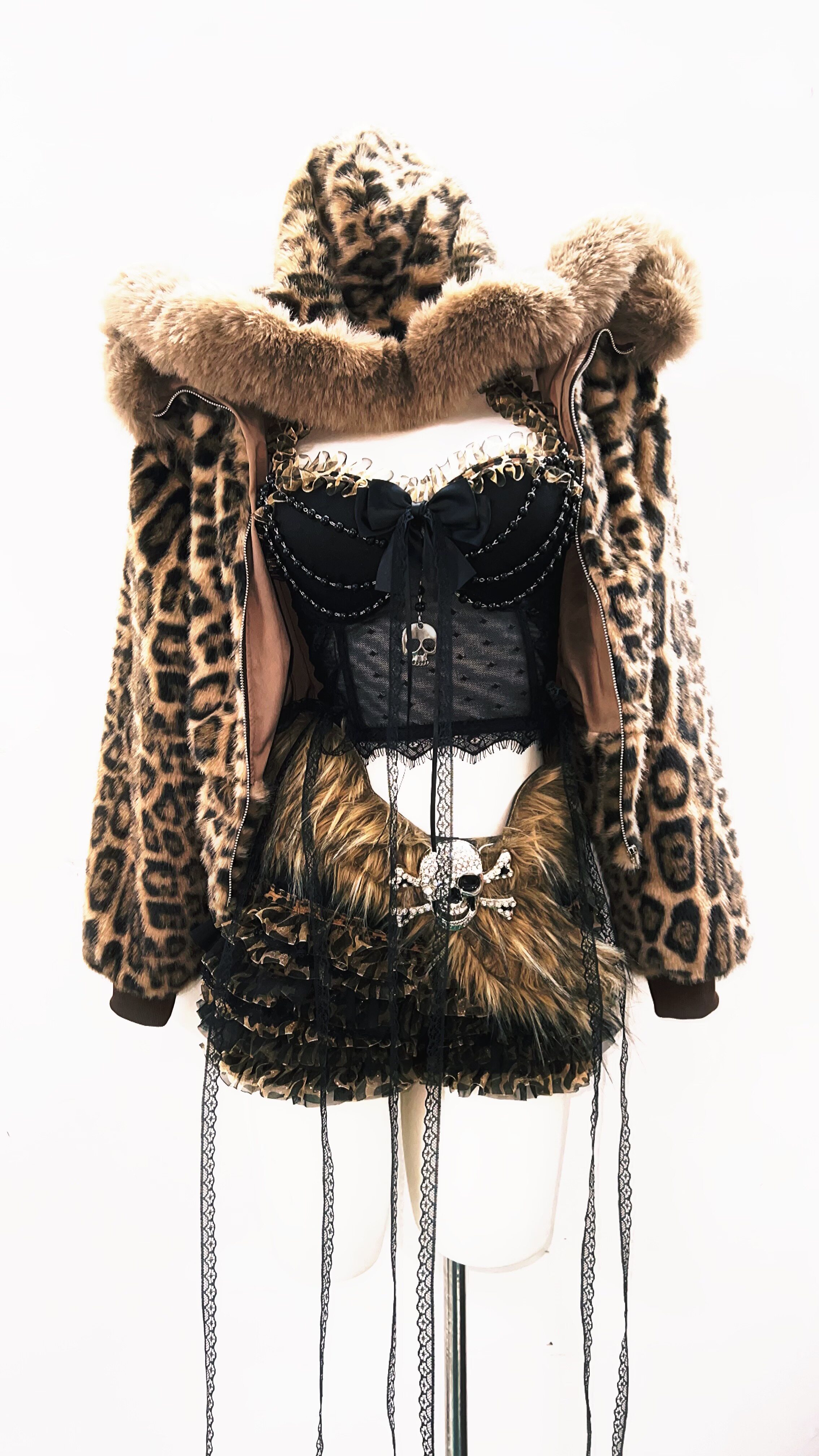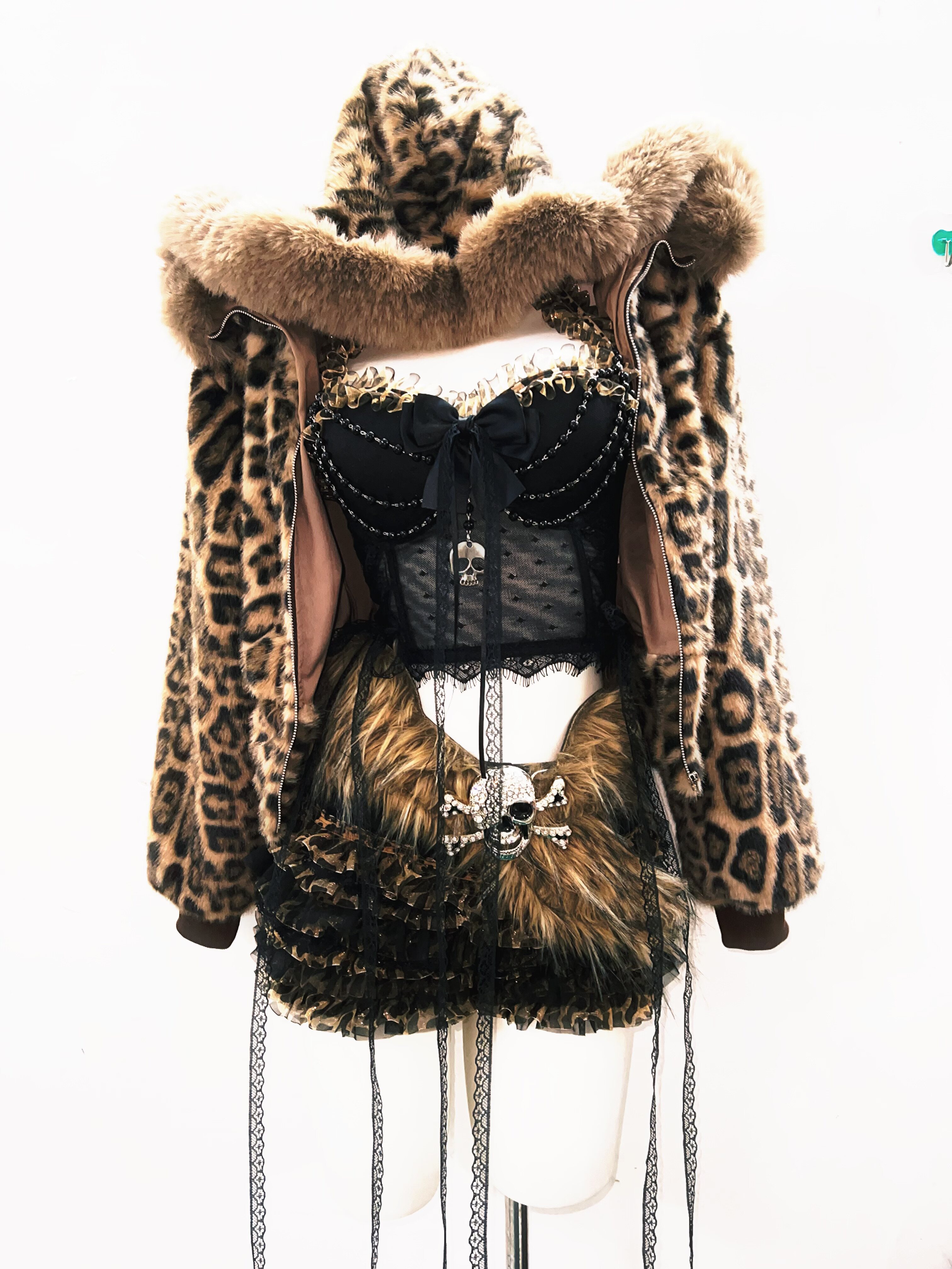 GR原创涩谷vintage套装豹纹外套女棕色毛领复古Y2K视觉系连帽女装 [Original Page Link]