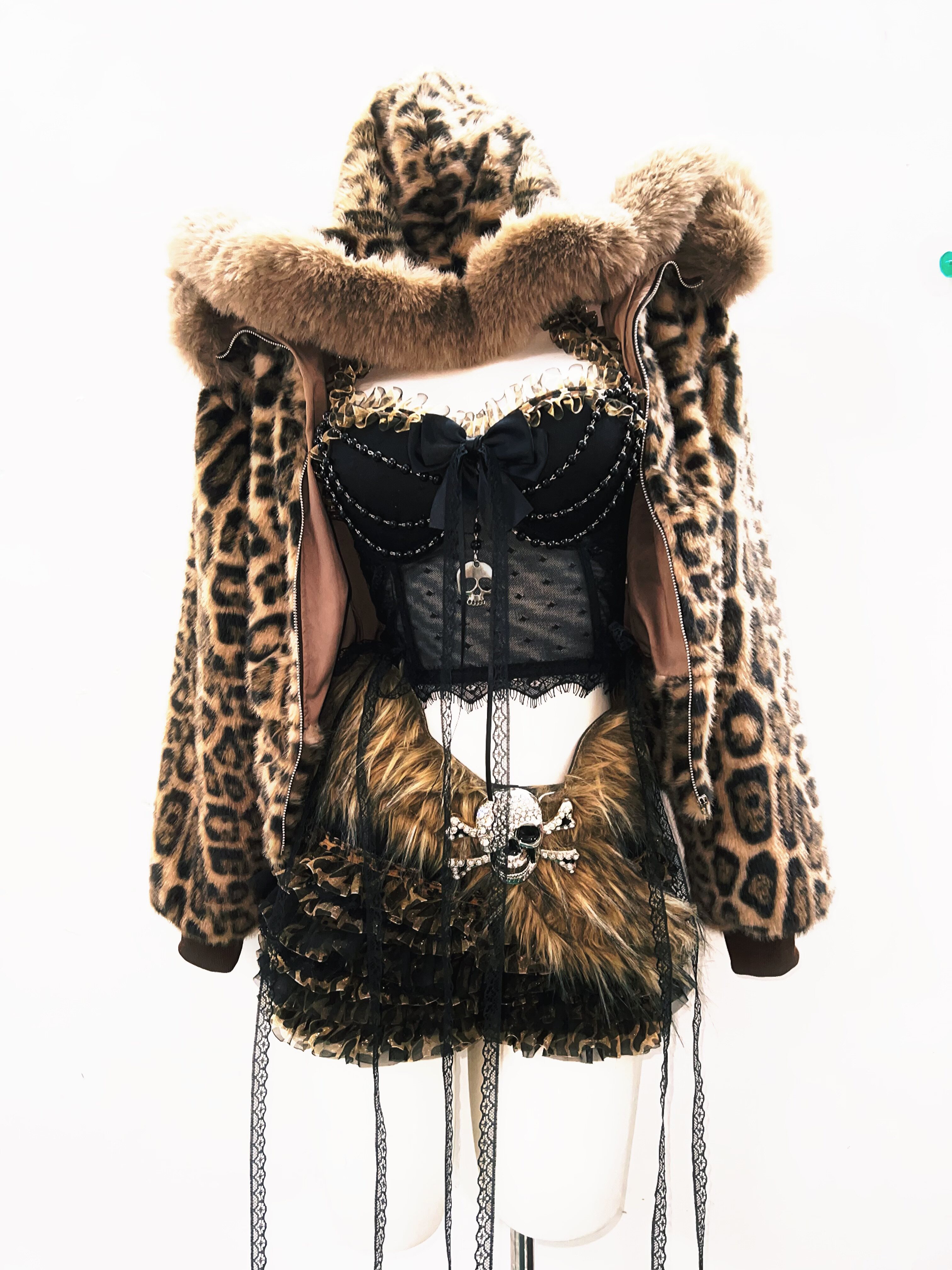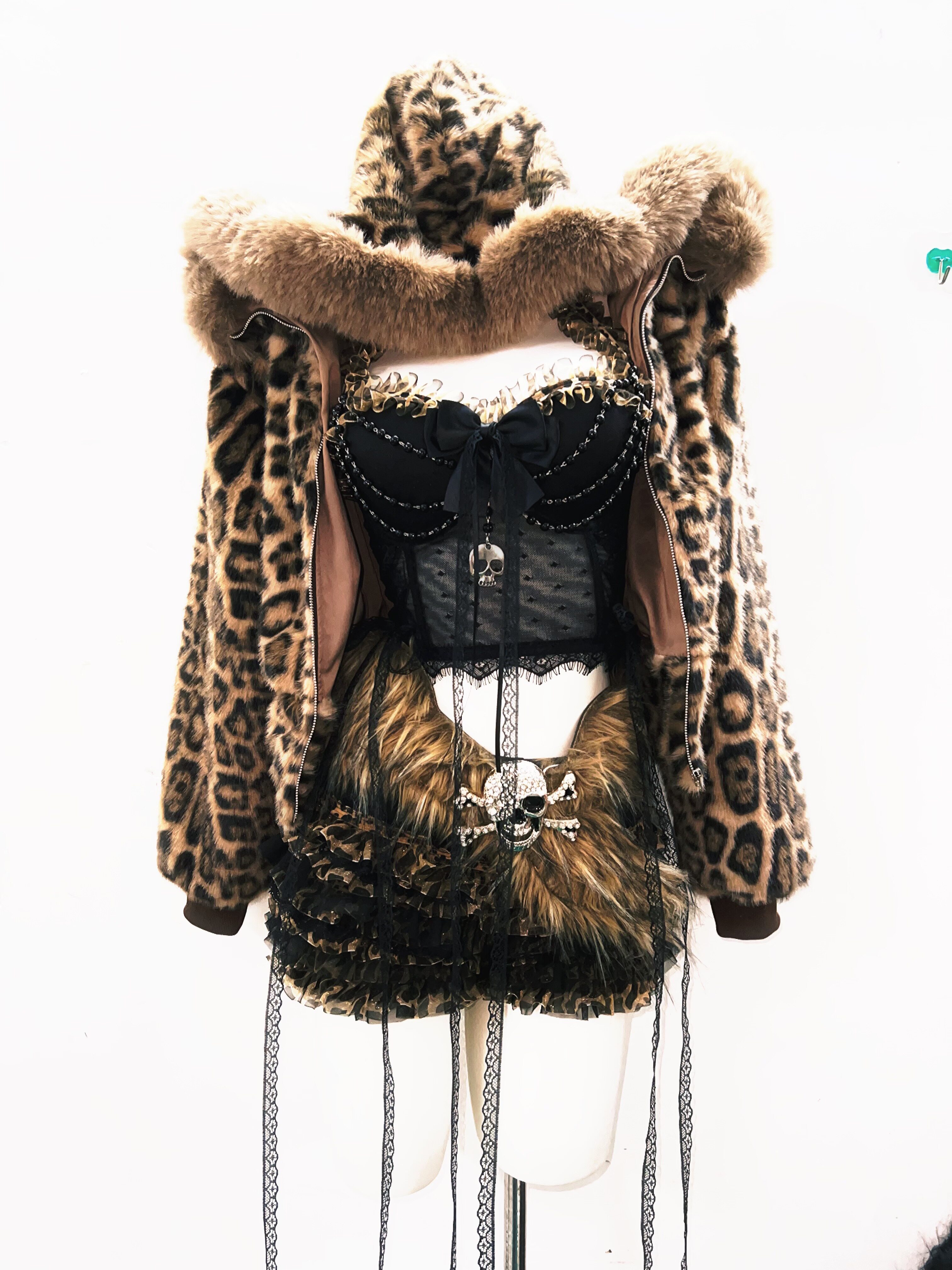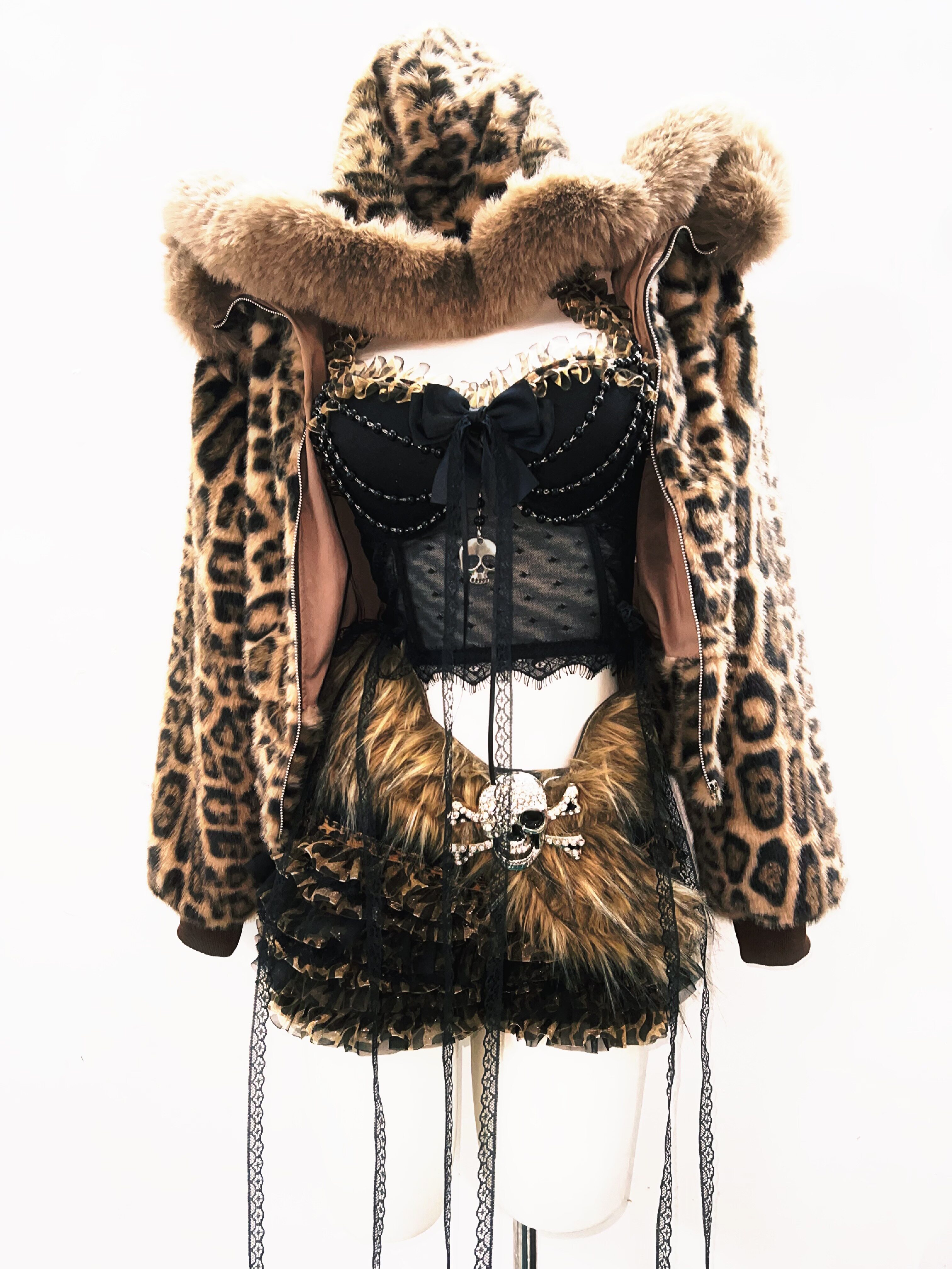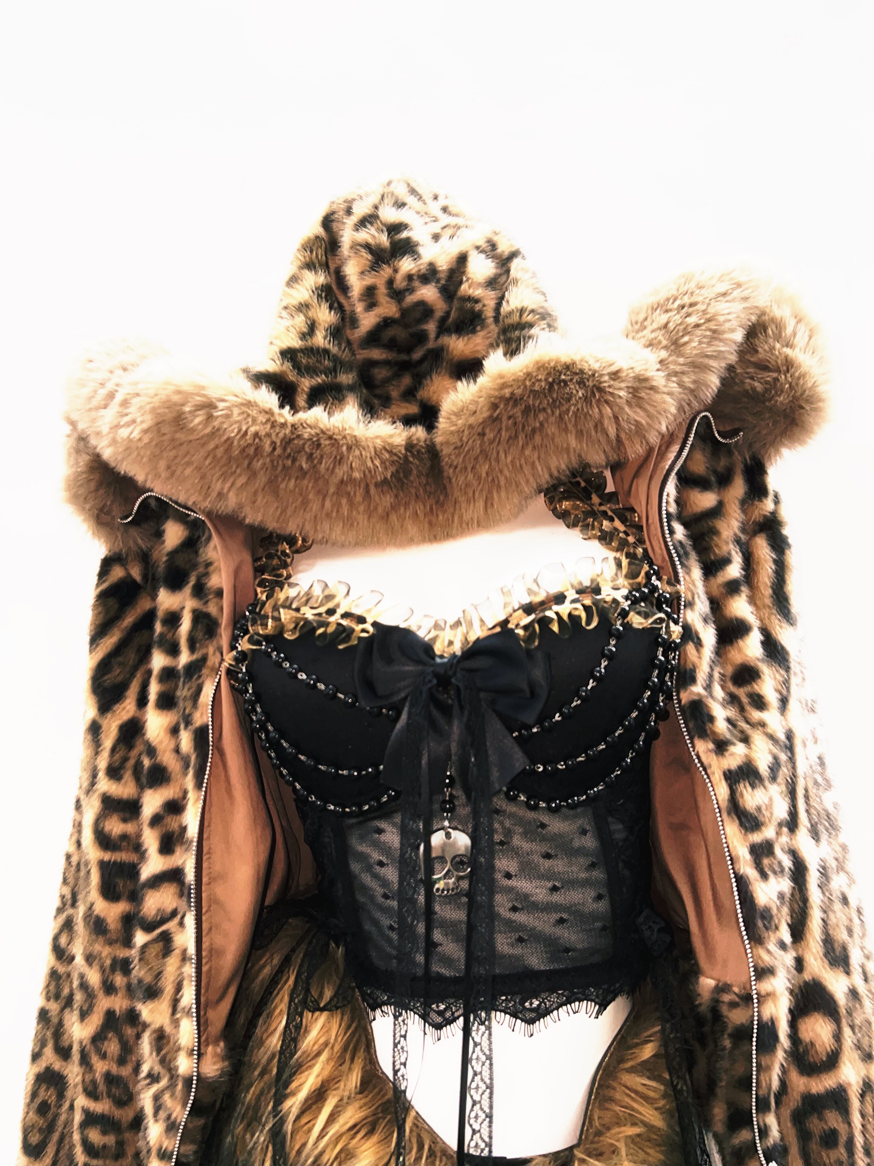 GR原创涩谷vintage套装豹纹外套女棕色毛领复古Y2K视觉系连帽女装 [Original Page Link]