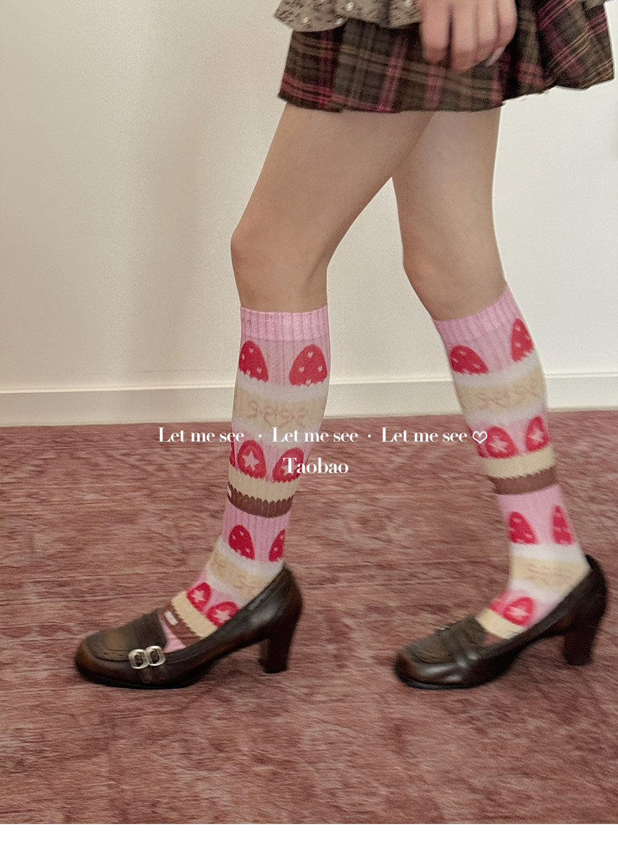 LET ME SEE 原创新款少女甜美氛围感中筒袜印花草莓甜妹小腿袜 [Original Page Link]