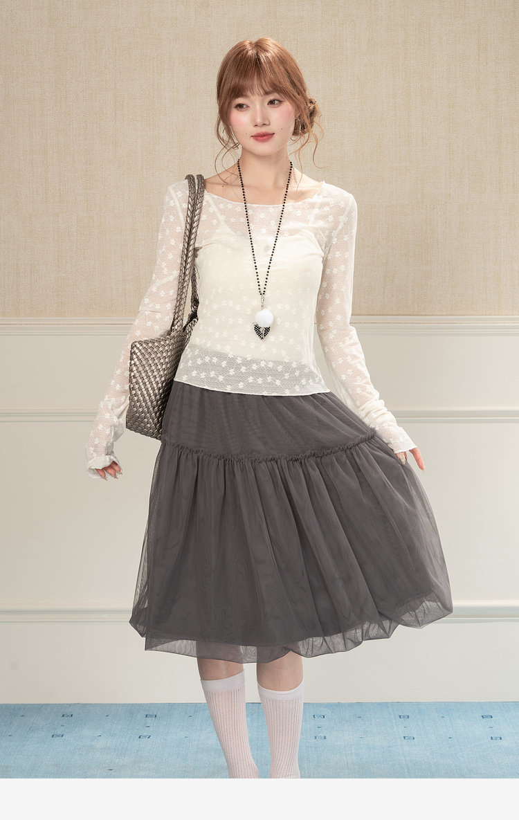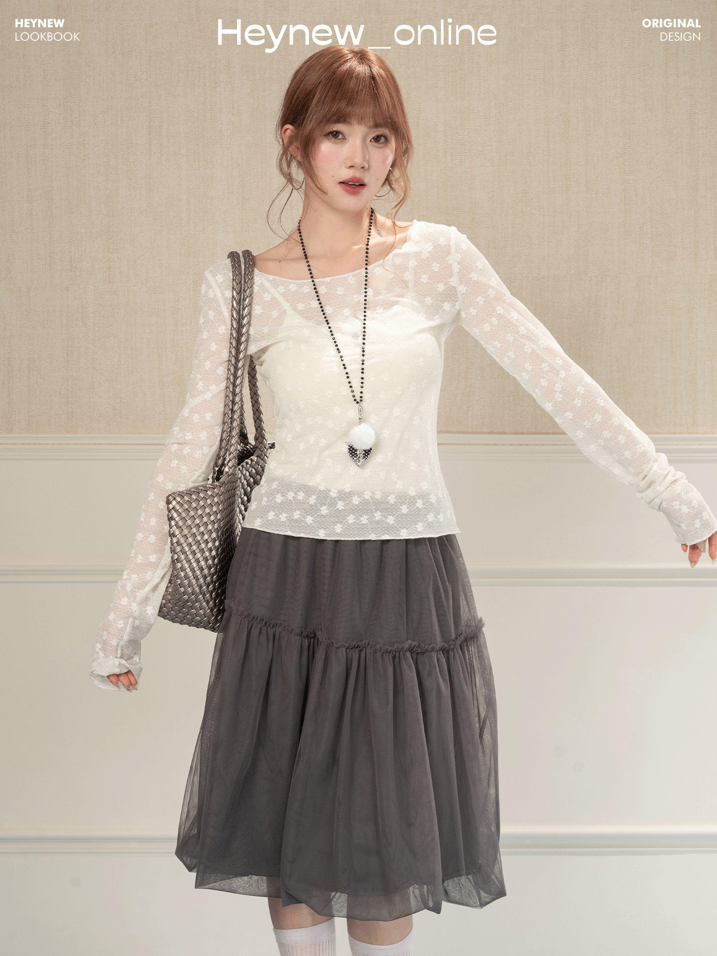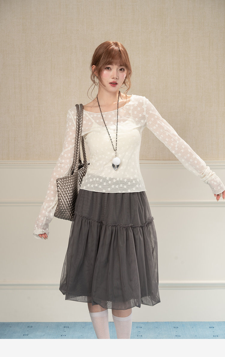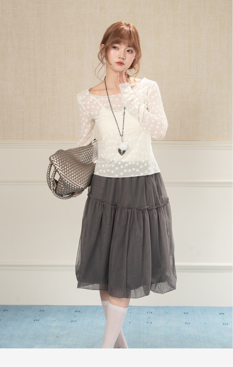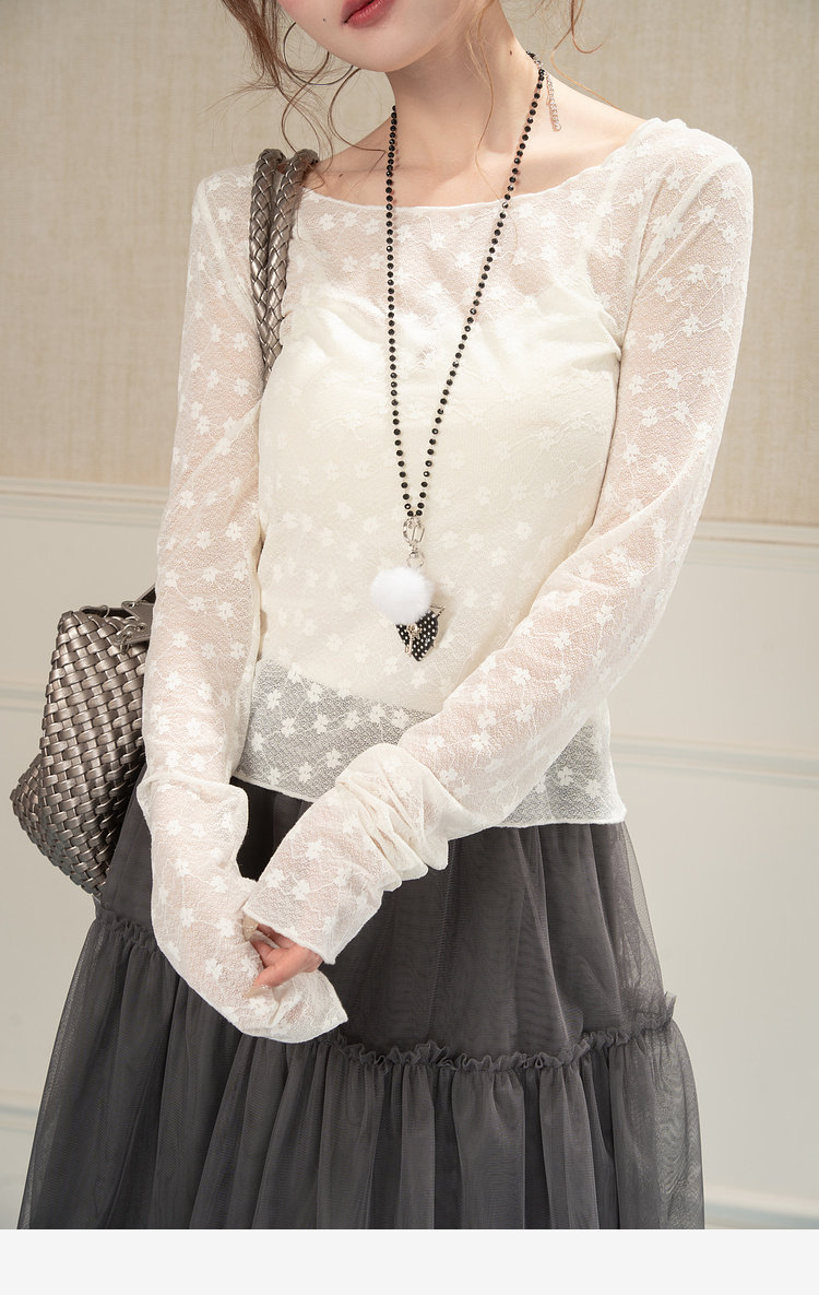 HEYNEW杏色碎花蕾丝圆领长袖T恤女春季新款修身叠穿别致小众上衣 [Original Page Link]