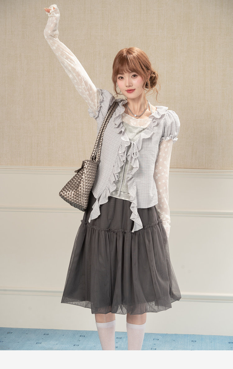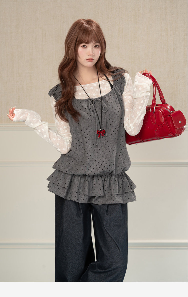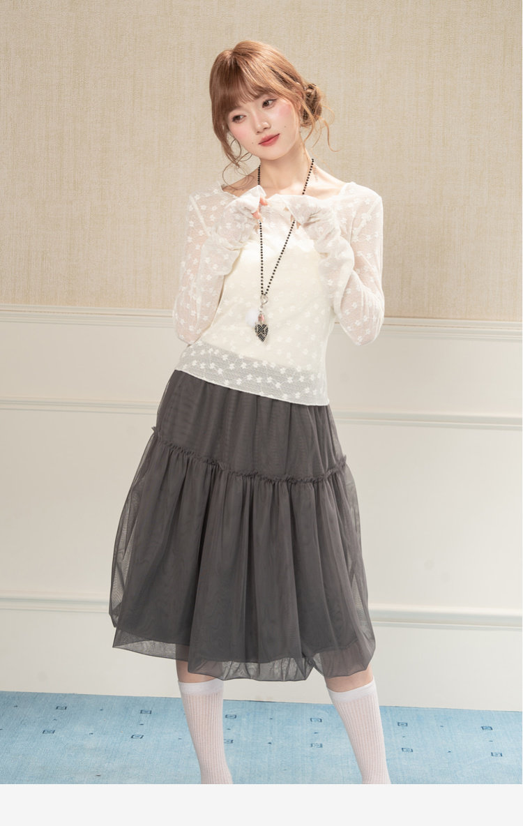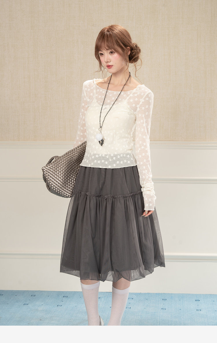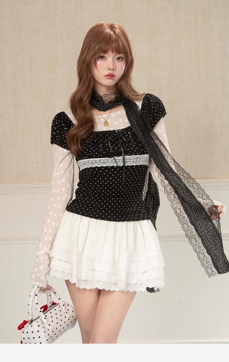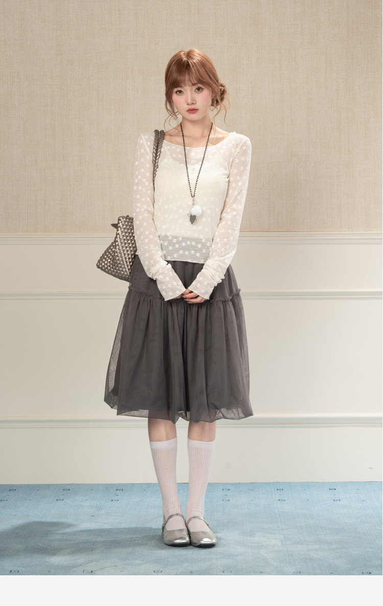 HEYNEW杏色碎花蕾丝圆领长袖T恤女春季新款修身叠穿别致小众上衣 [Original Page Link]