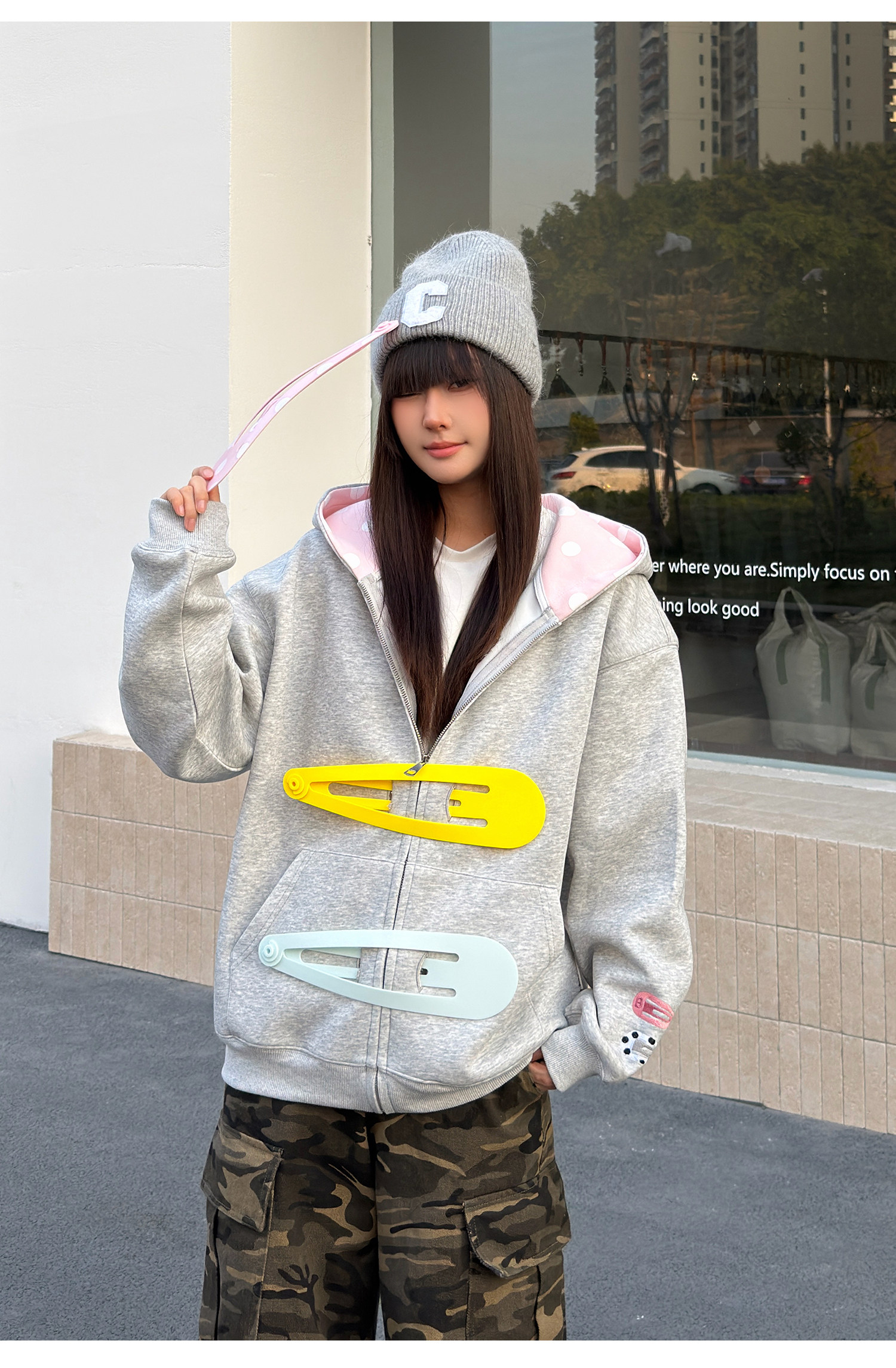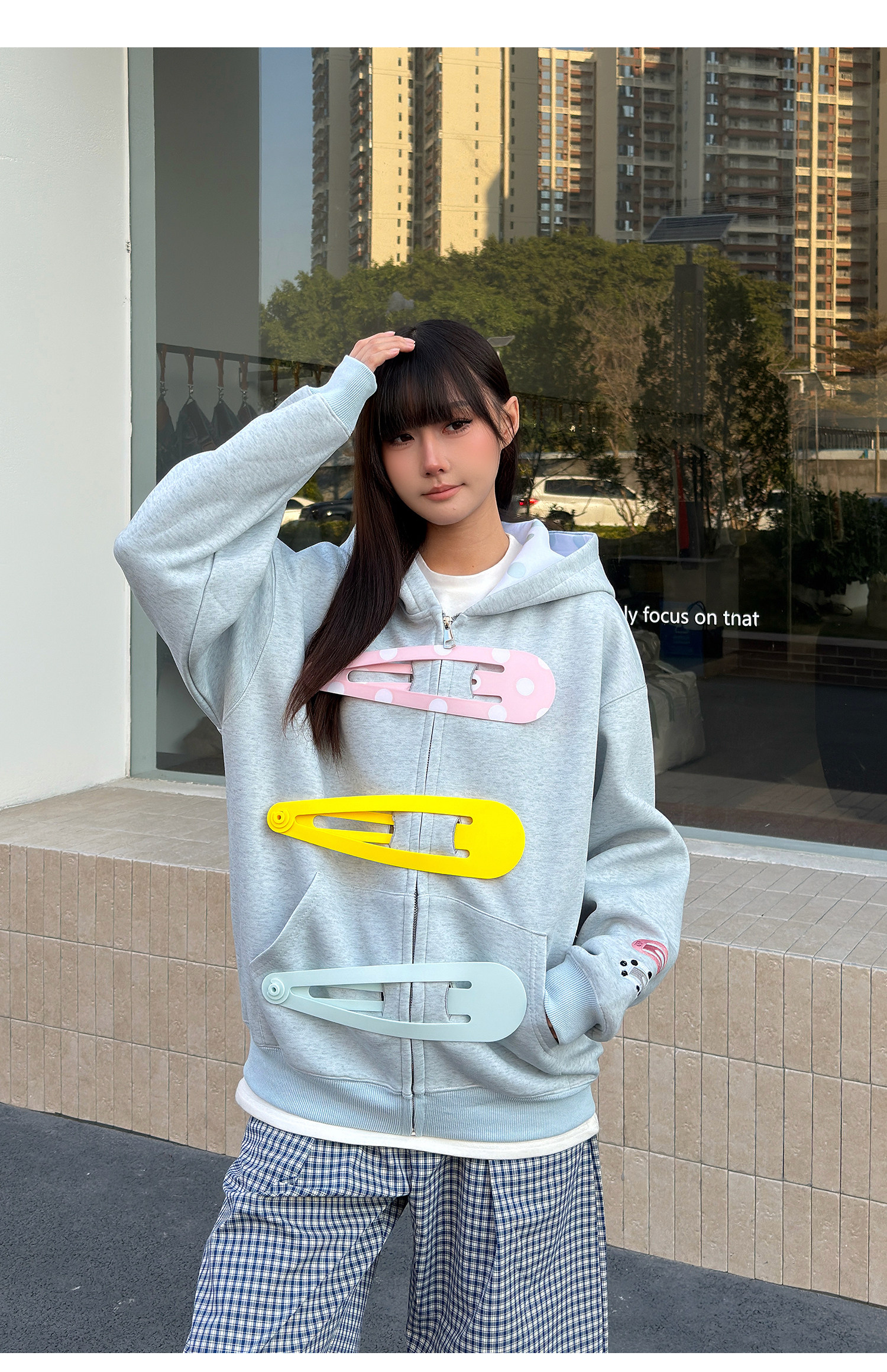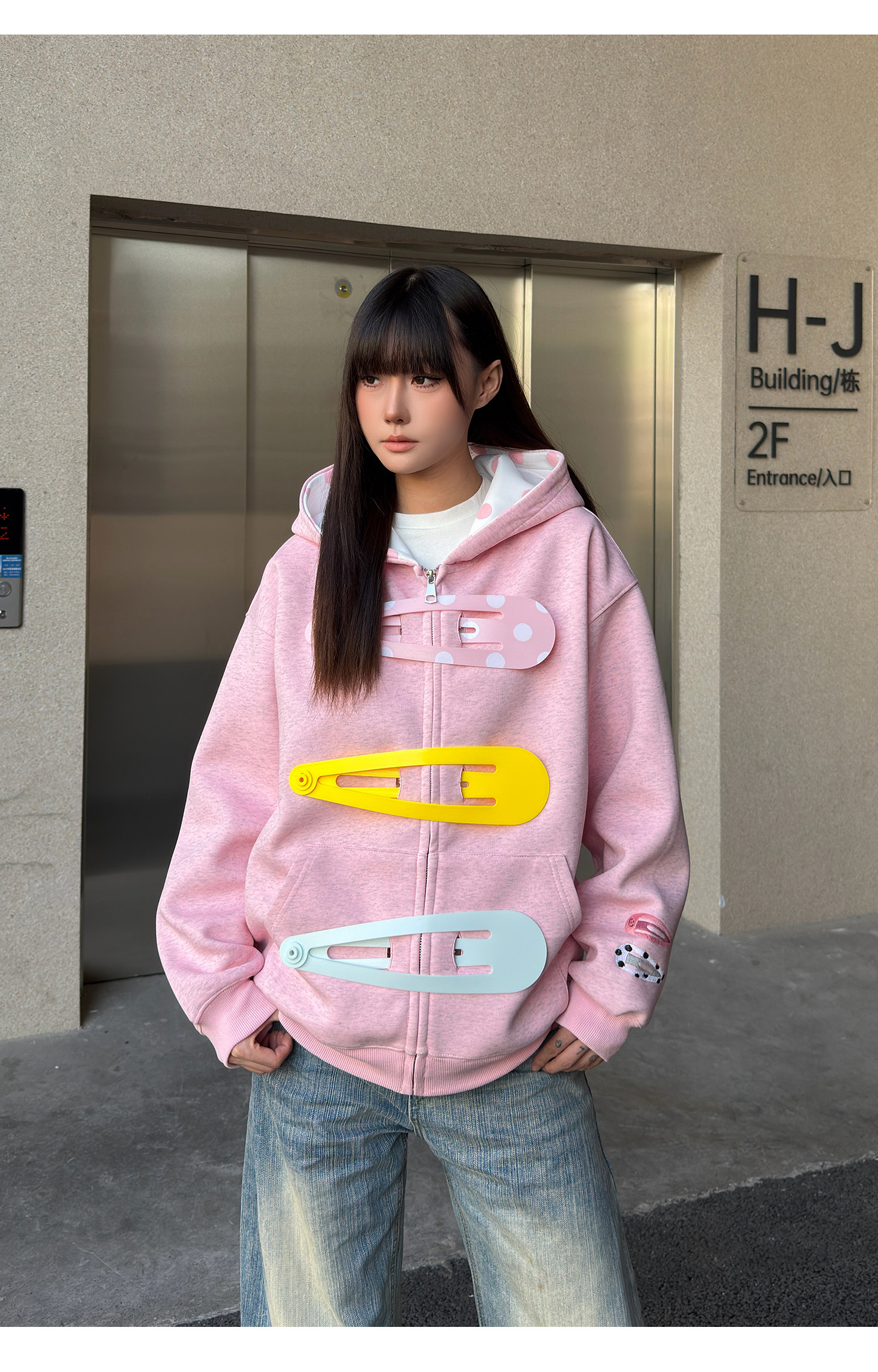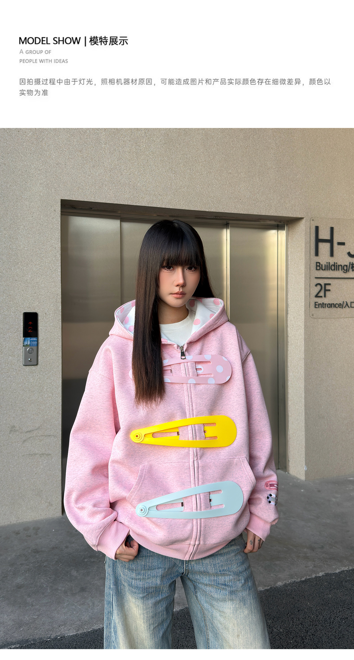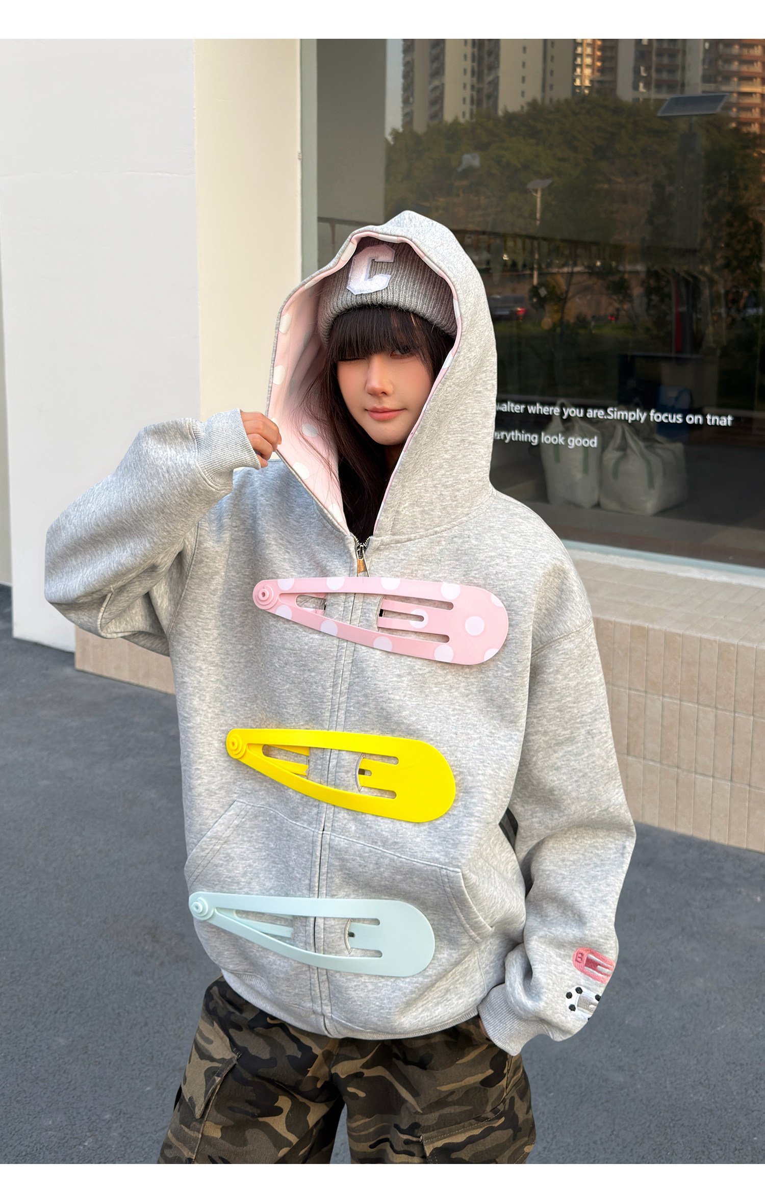 SREK新款设计感发夹印花连帽运动衫男女长袖宽松大廓形拉链开衫外套 [Original Page Link]