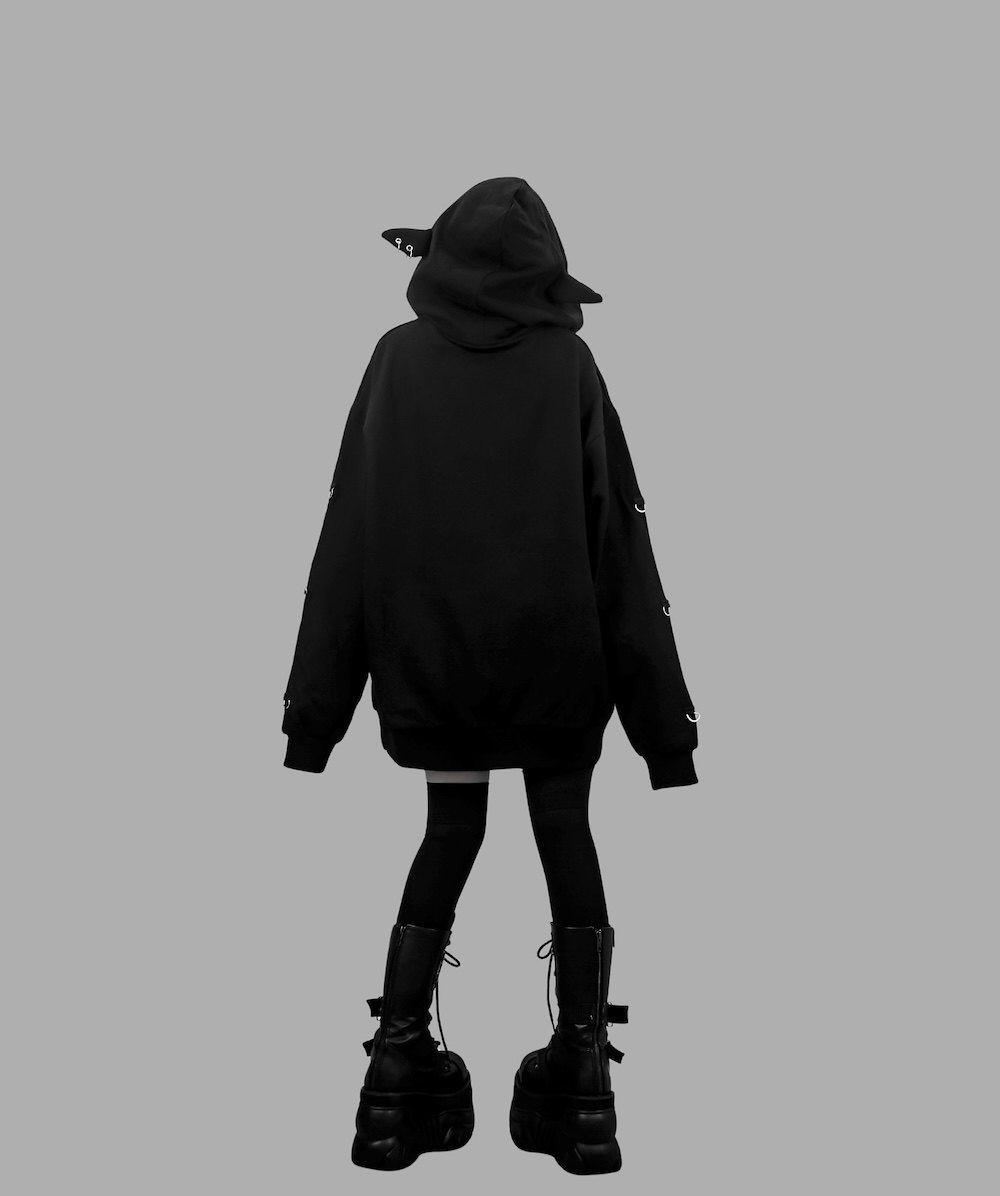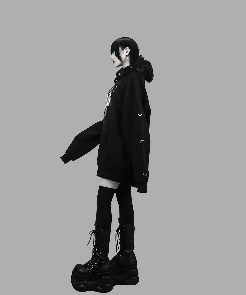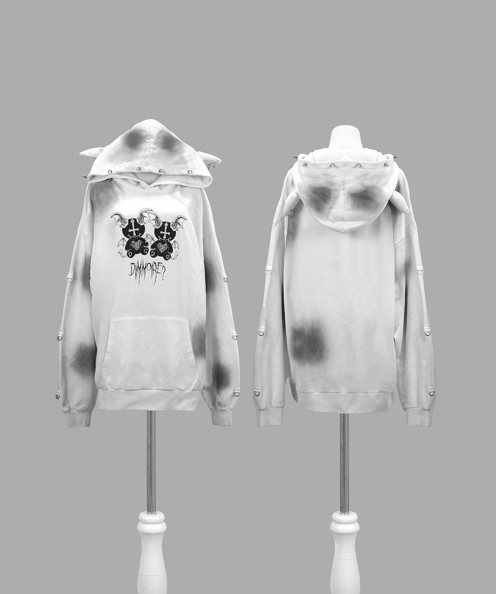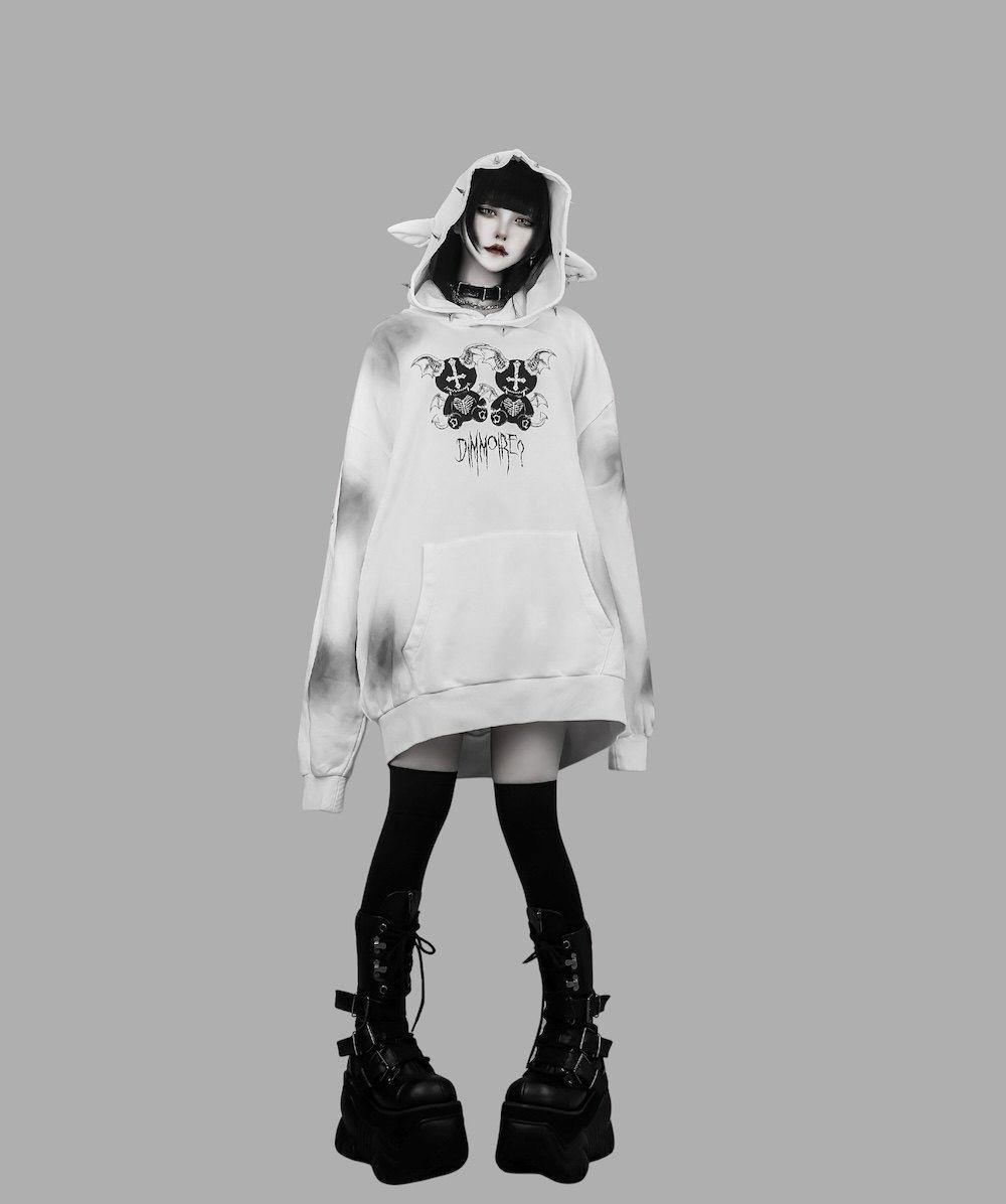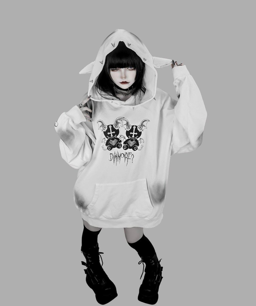 D. 日系原宿风 恶魔小熊印花 铆钉装饰 哥特朋克风宽松连帽衫卫衣 [Original Page Link]
