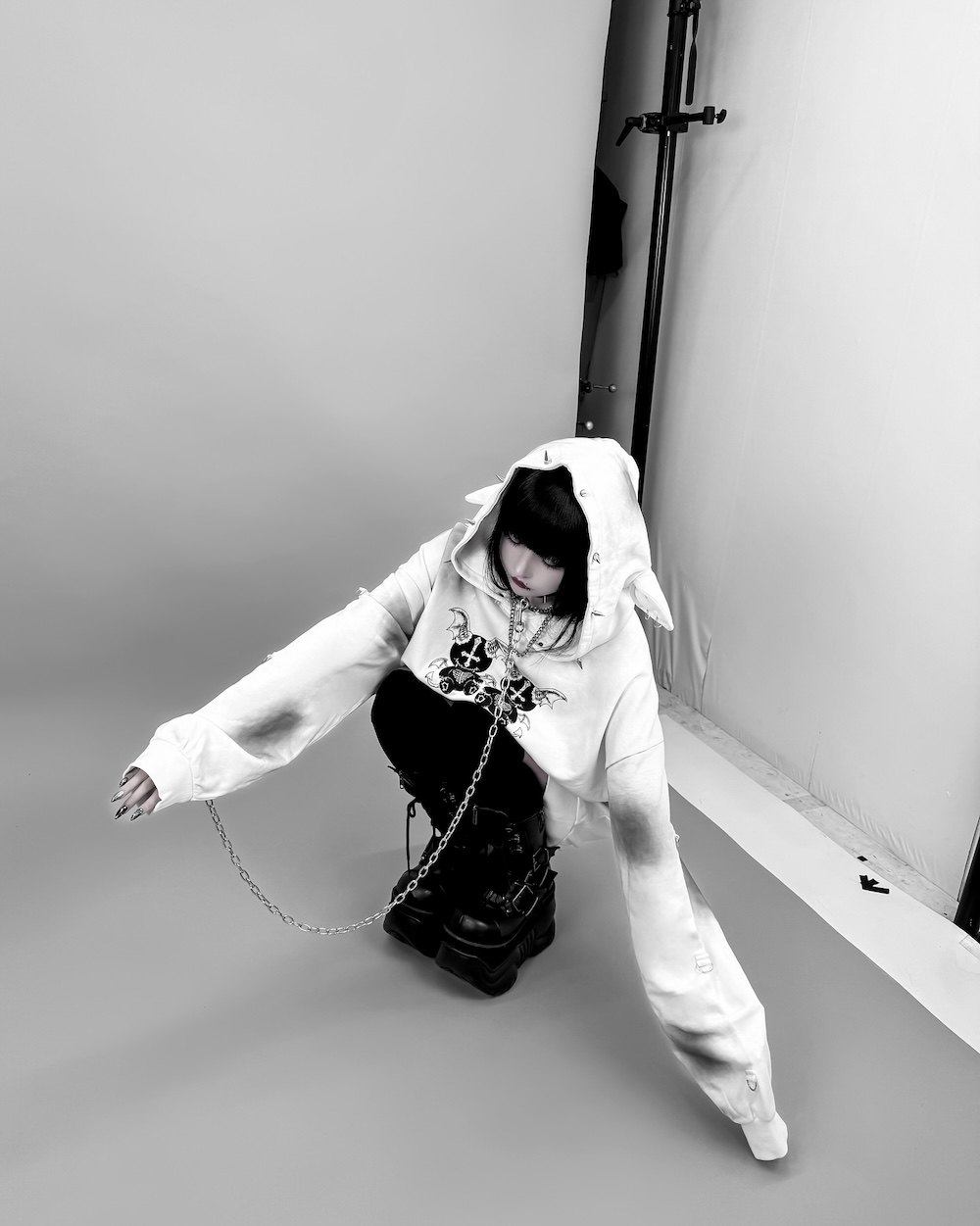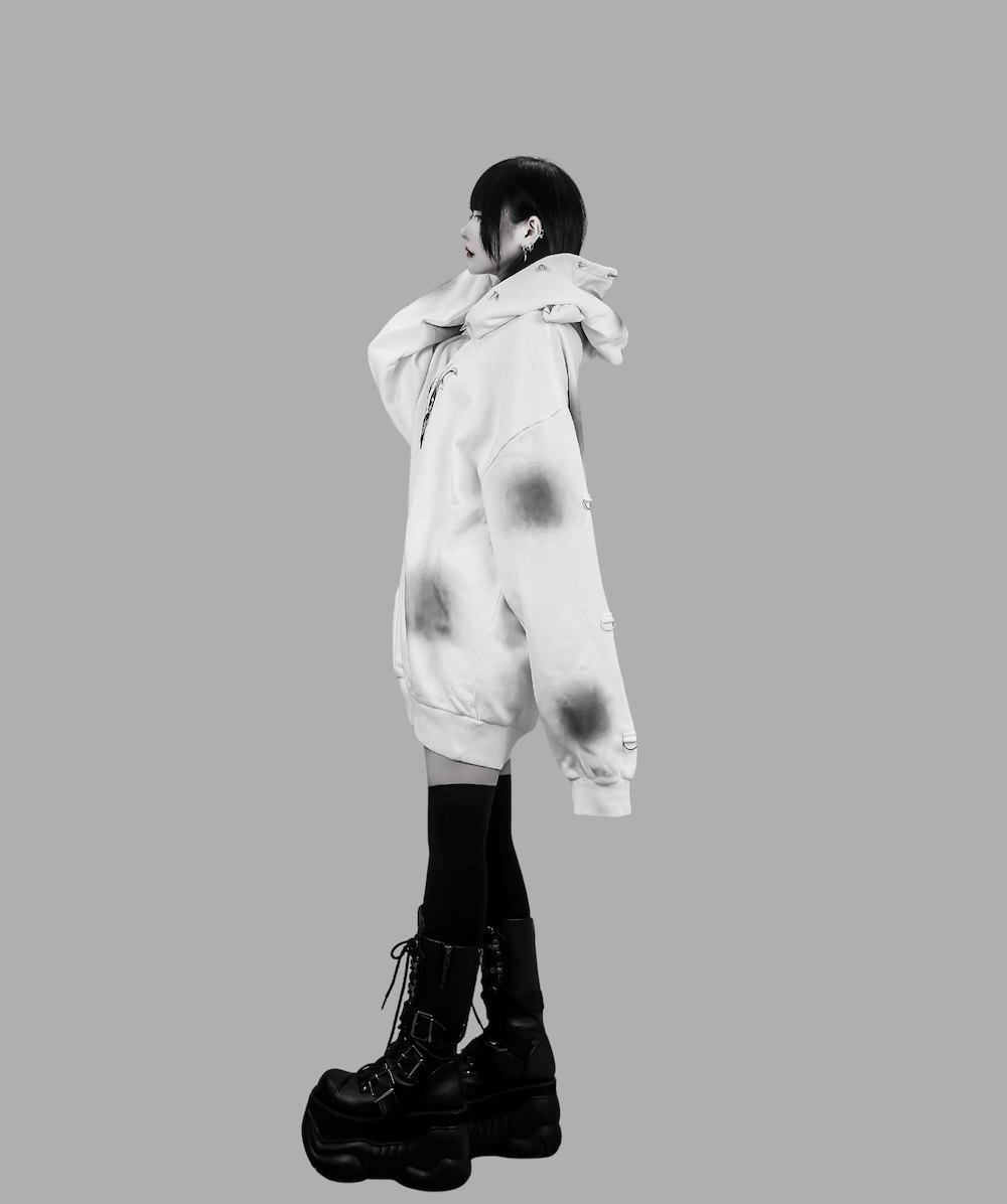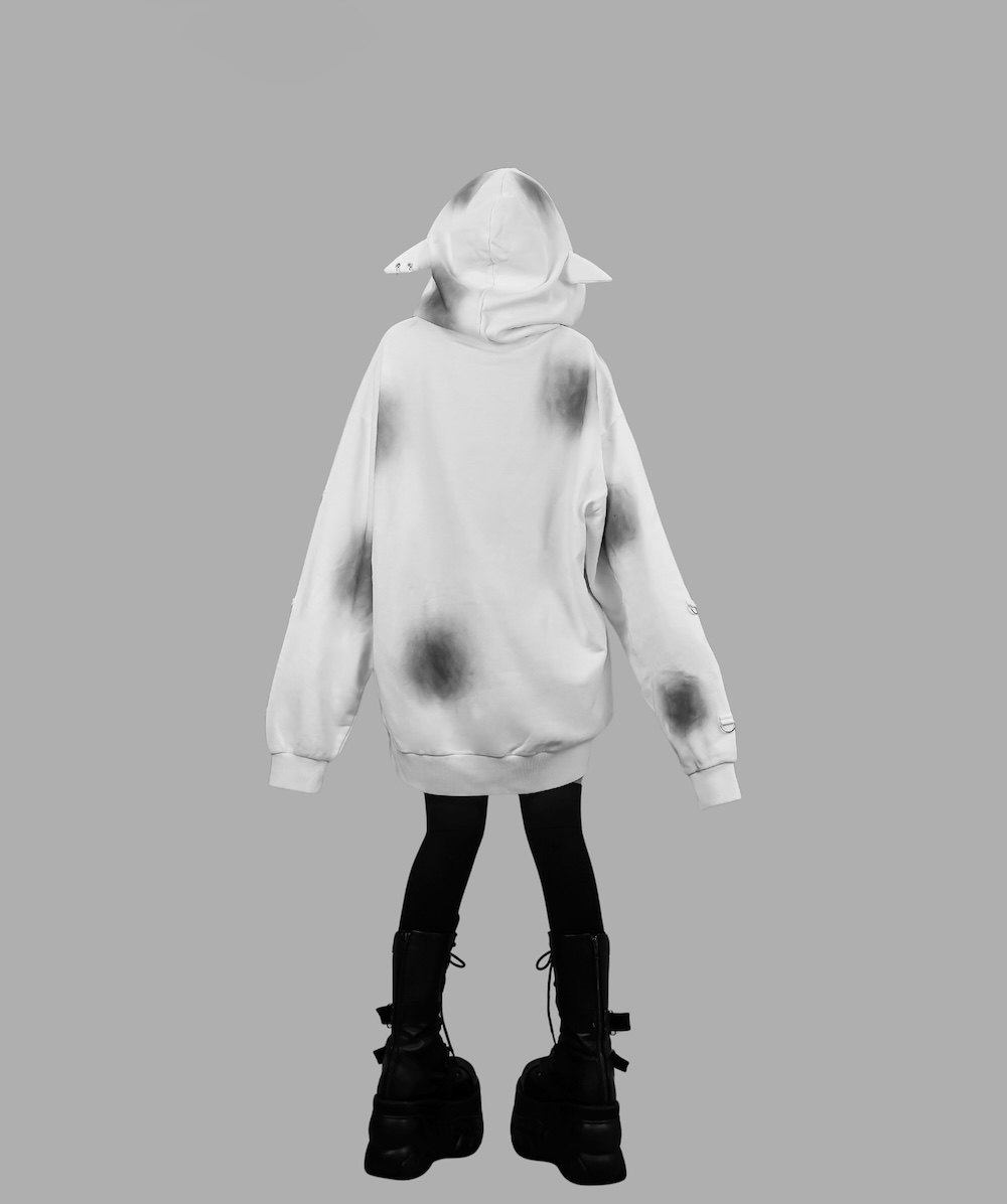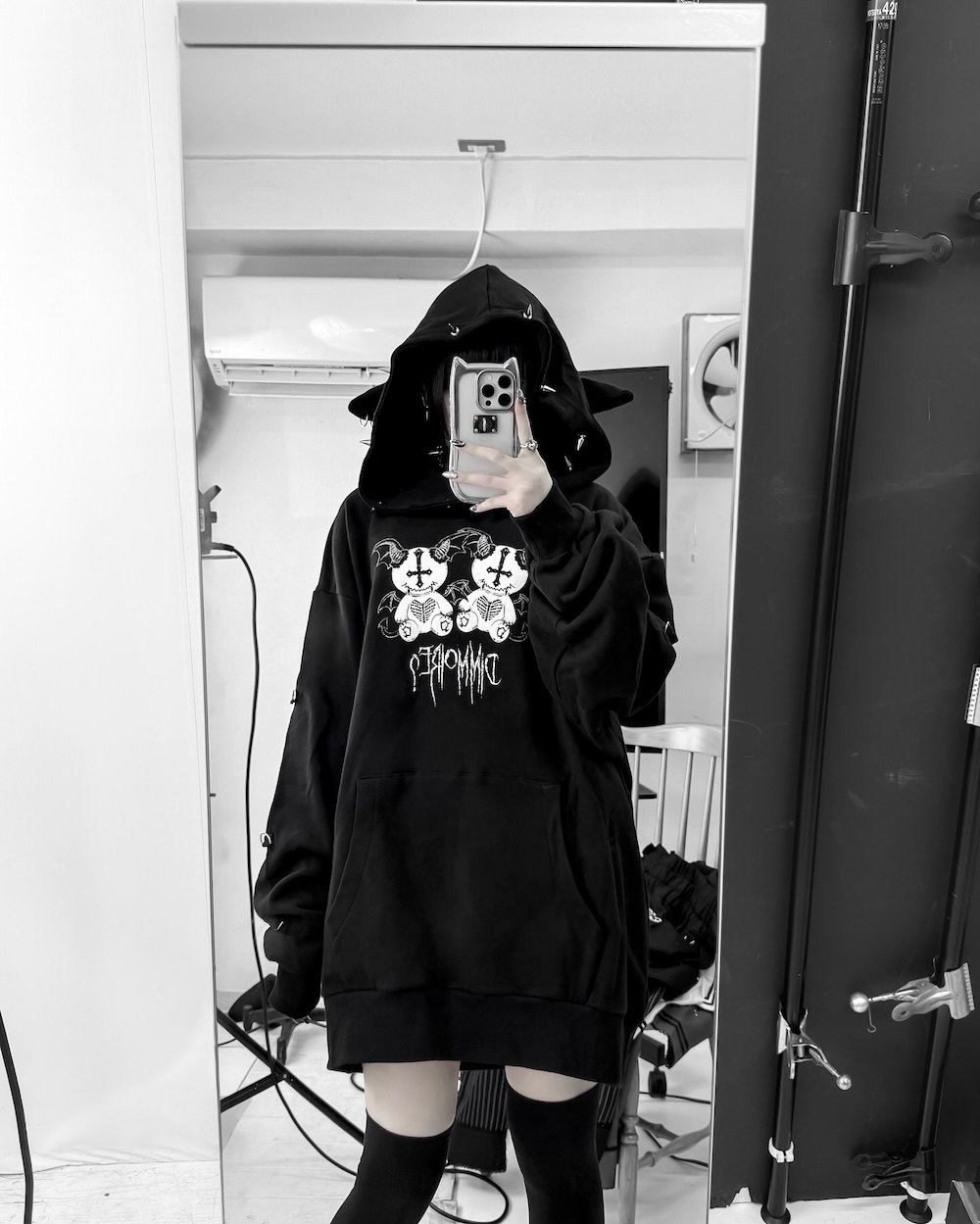 D. 日系原宿风 恶魔小熊印花 铆钉装饰 哥特朋克风宽松连帽衫卫衣 [Original Page Link]