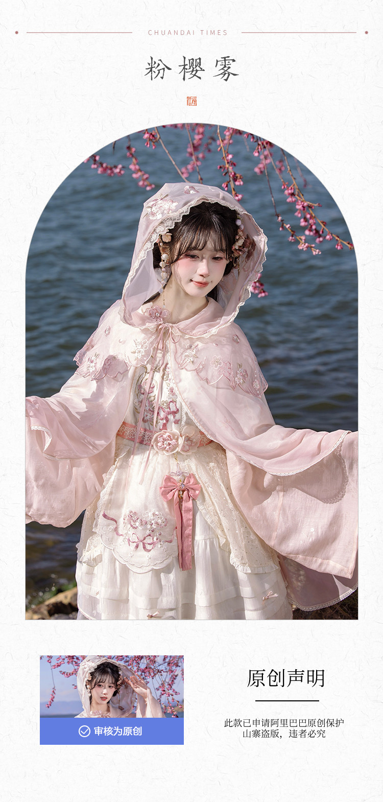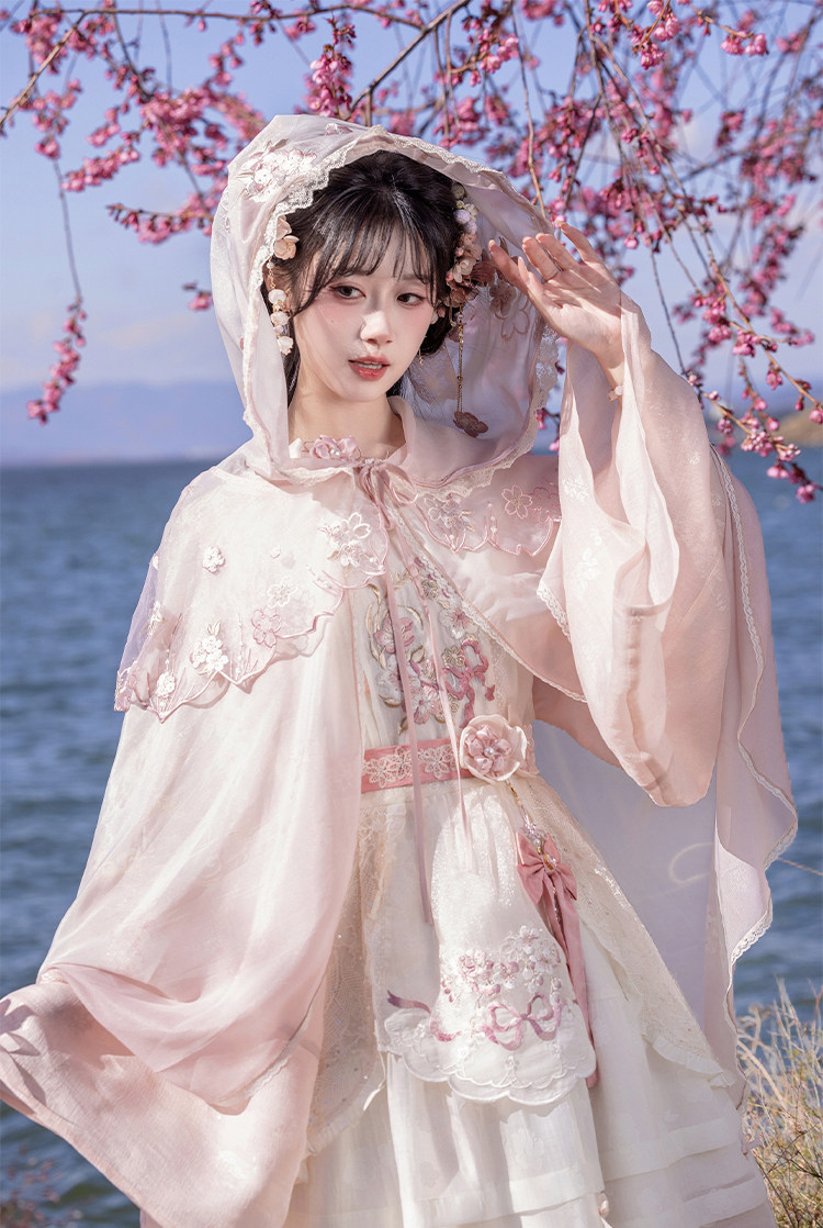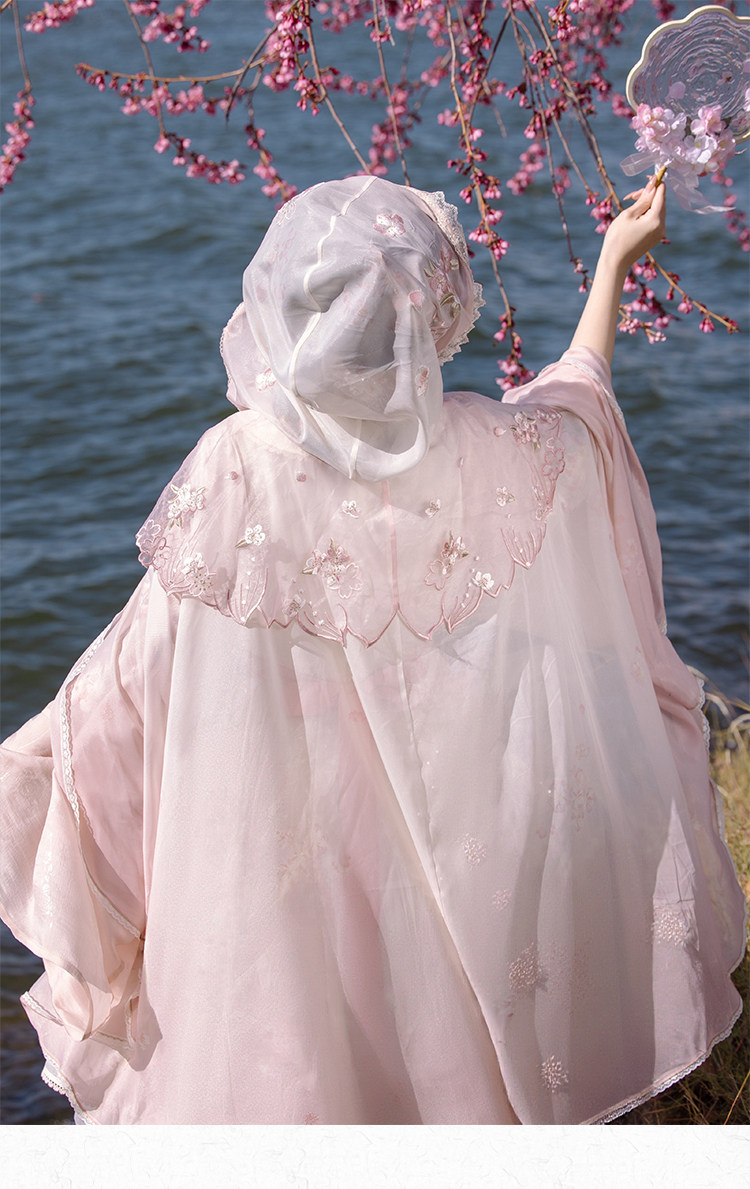 川黛时光:粉樱雾 原创樱花刺绣纱斗篷浪漫氛围春日赏花游玩披肩 [Original Page Link]