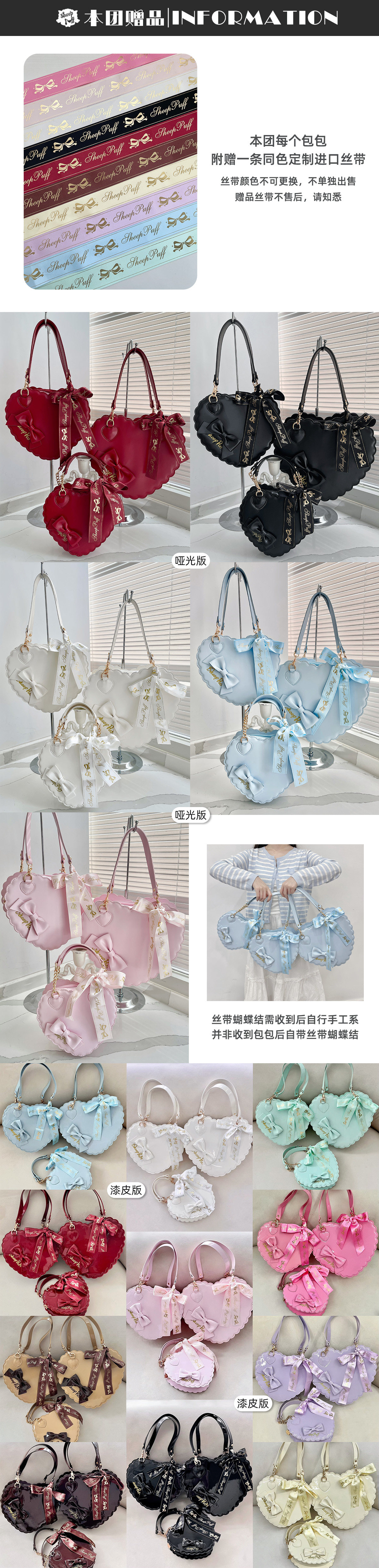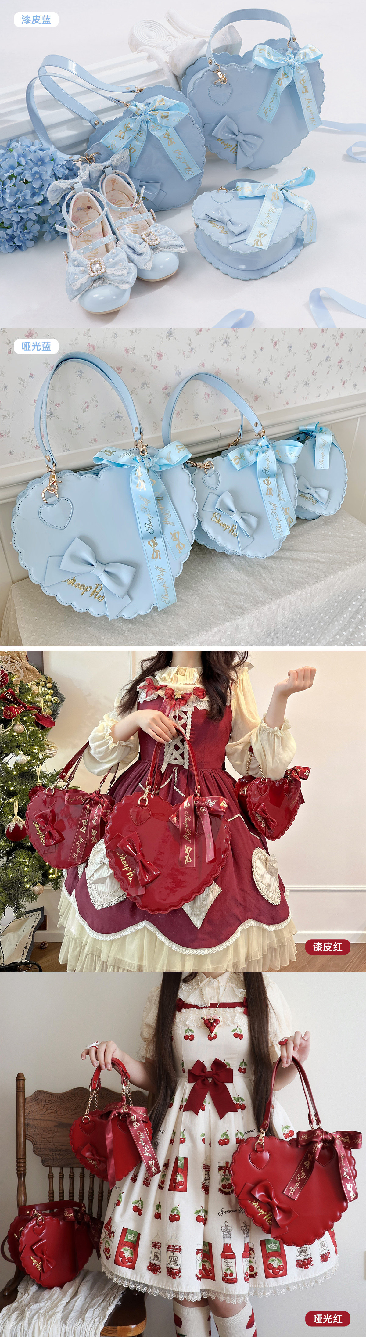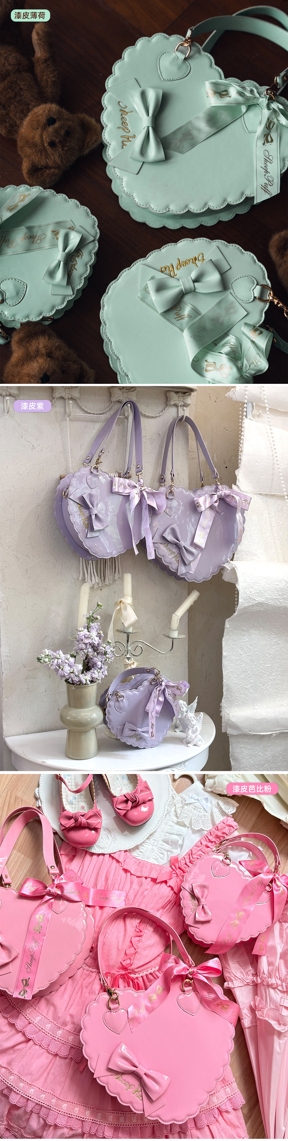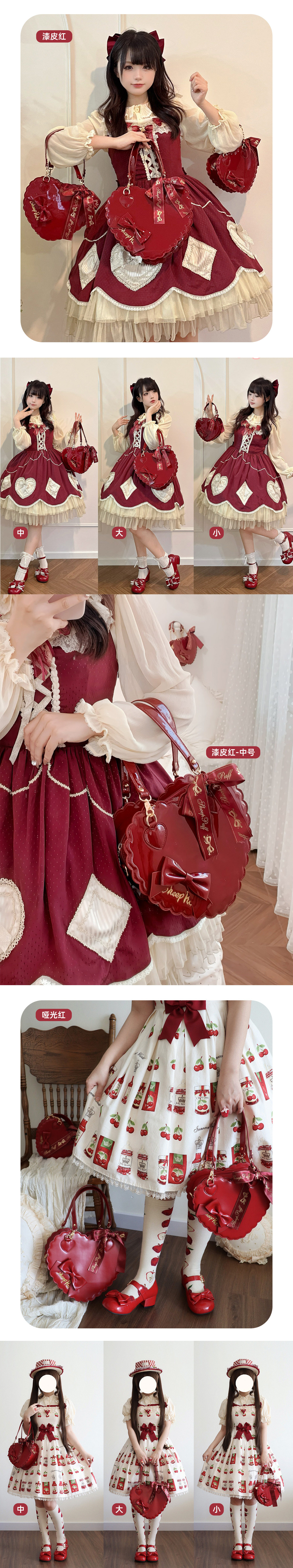 【六团现货】绵羊泡芙漆皮哑光大中小号爱心包lolita甜娘手提包 [Original Page Link]