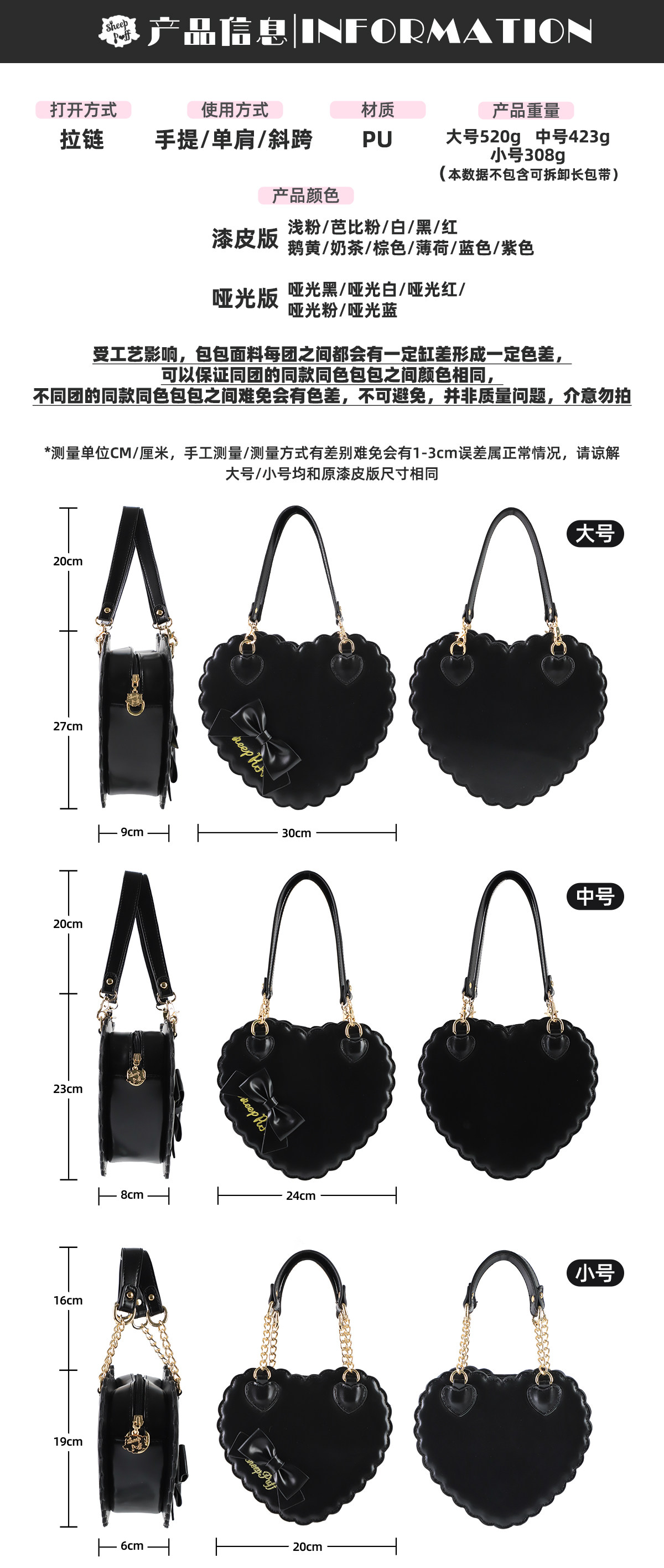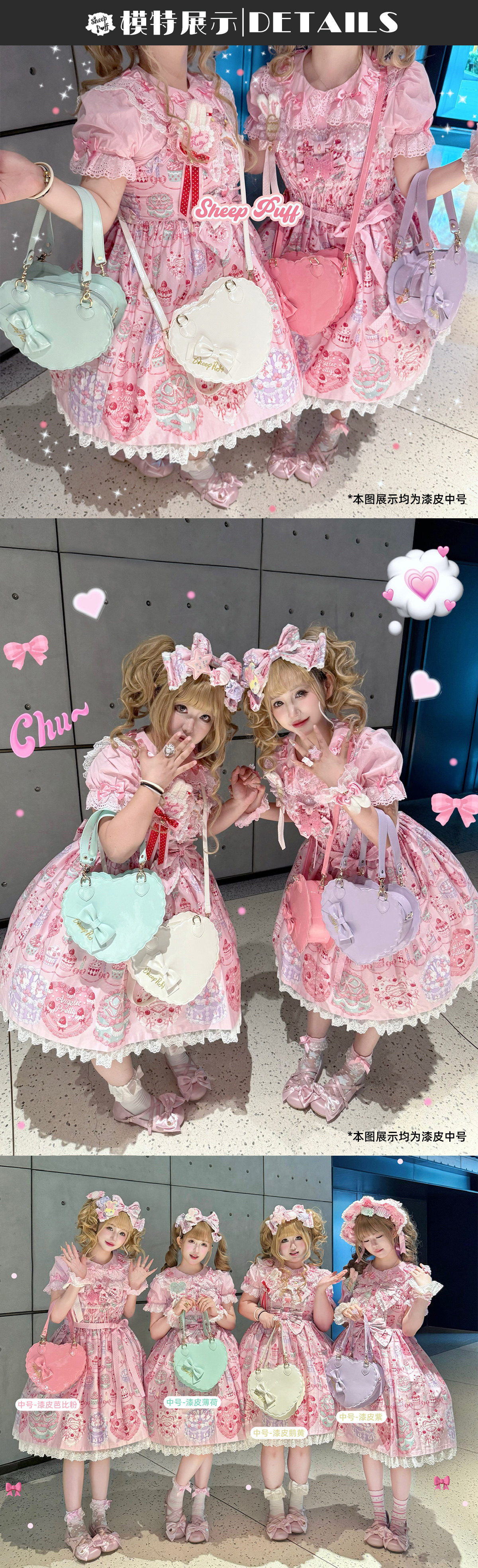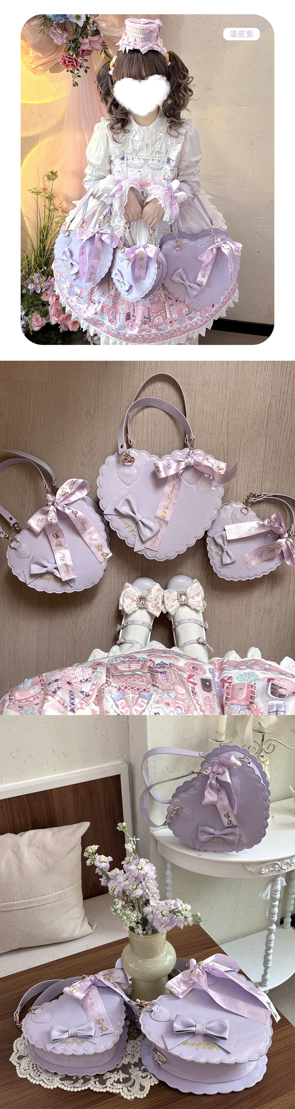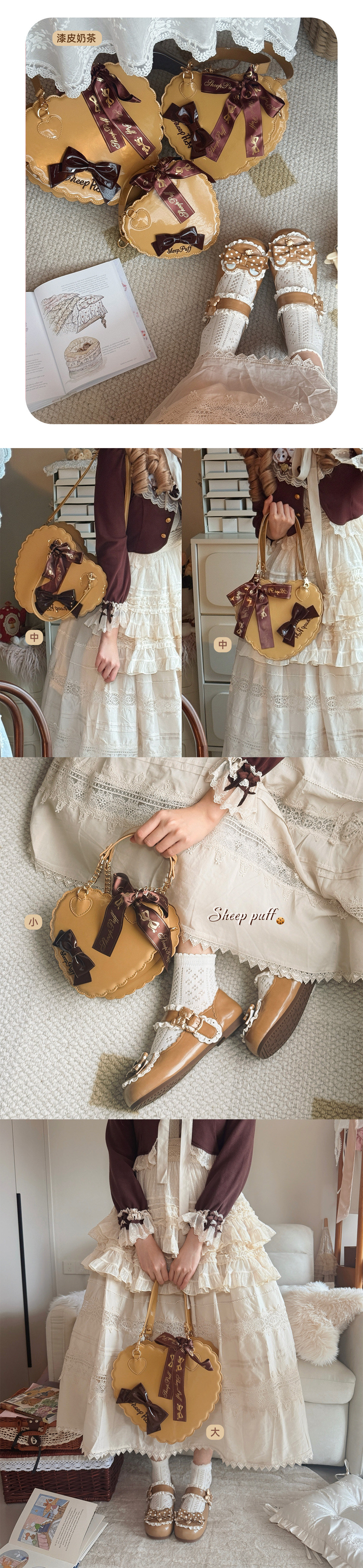 【六团现货】绵羊泡芙漆皮哑光大中小号爱心包lolita甜娘手提包 [Original Page Link]