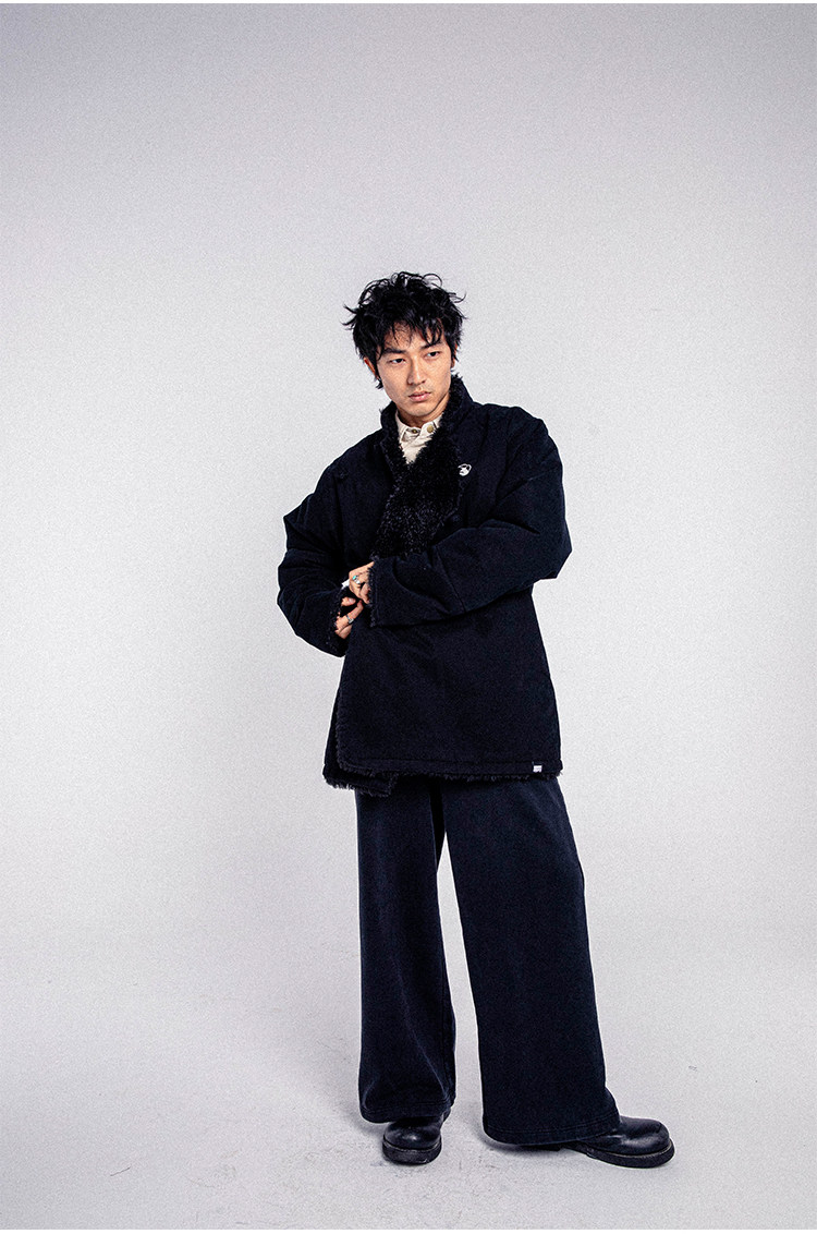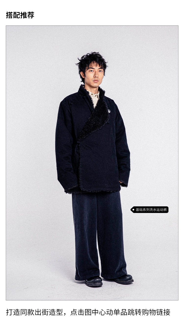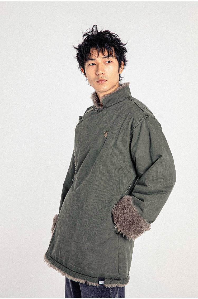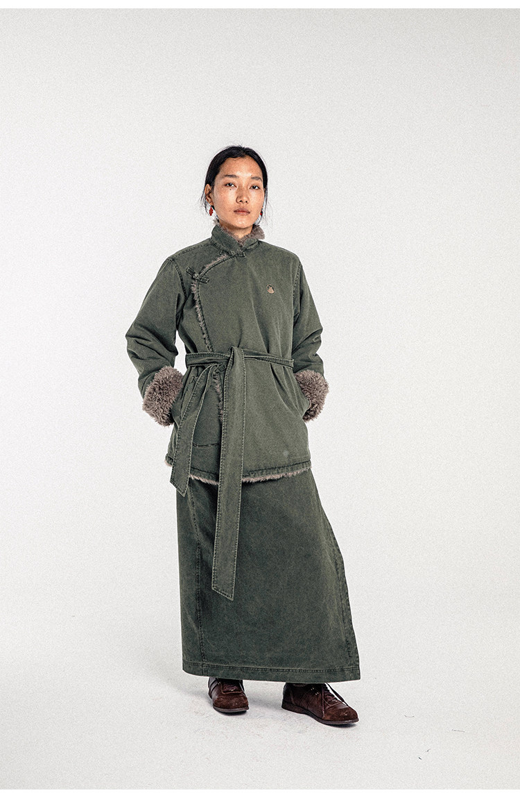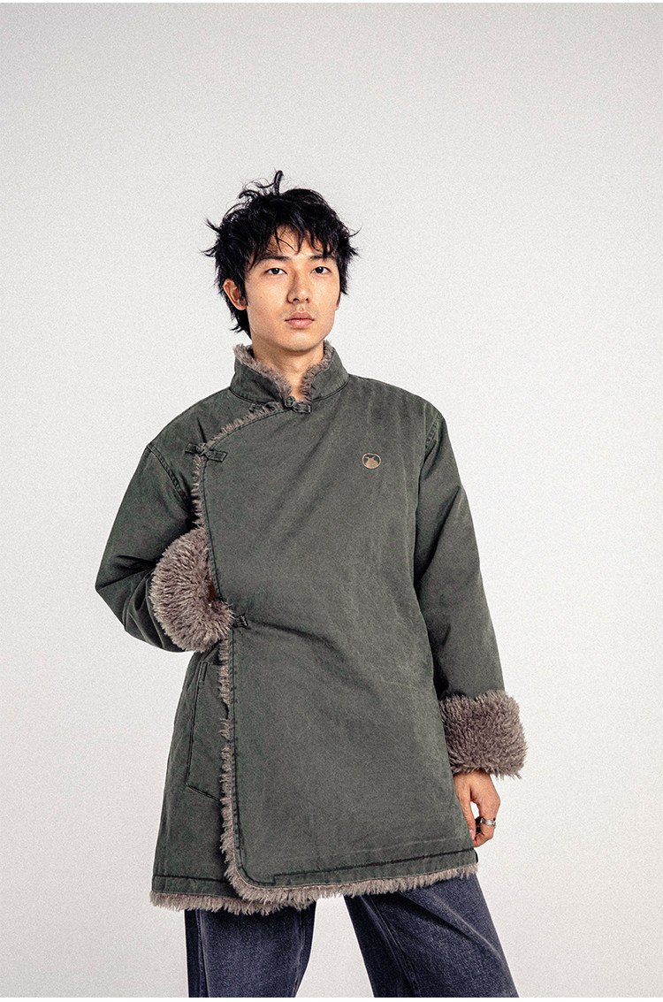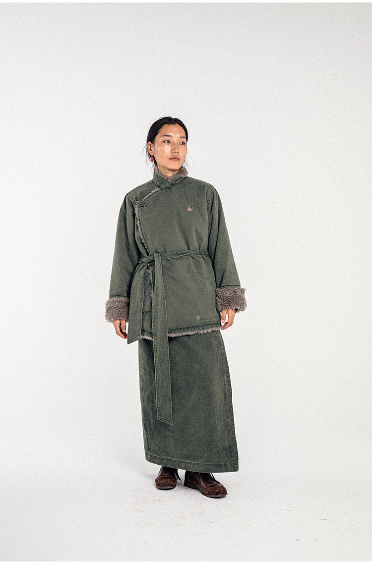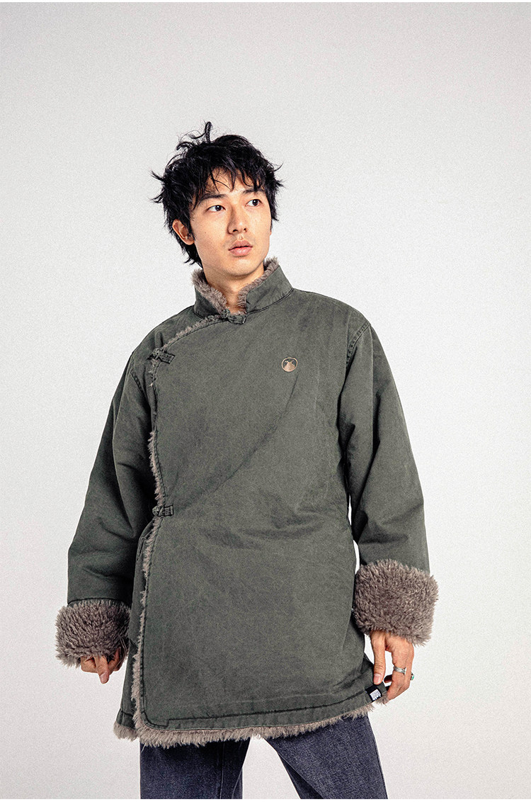 Holy Mountain Apparel Original Design Mid-Length Tibetan Style Diagonal Placket Tie Plush Autumn/Winter Trendy Fashion Coat for Commuting