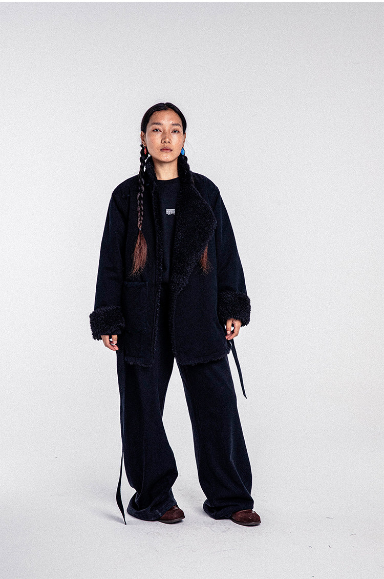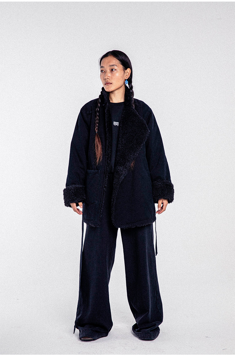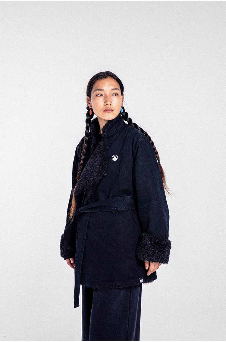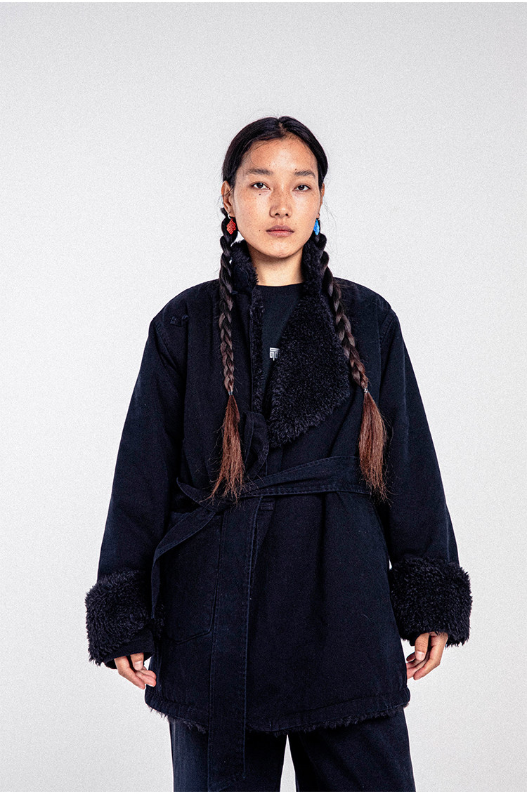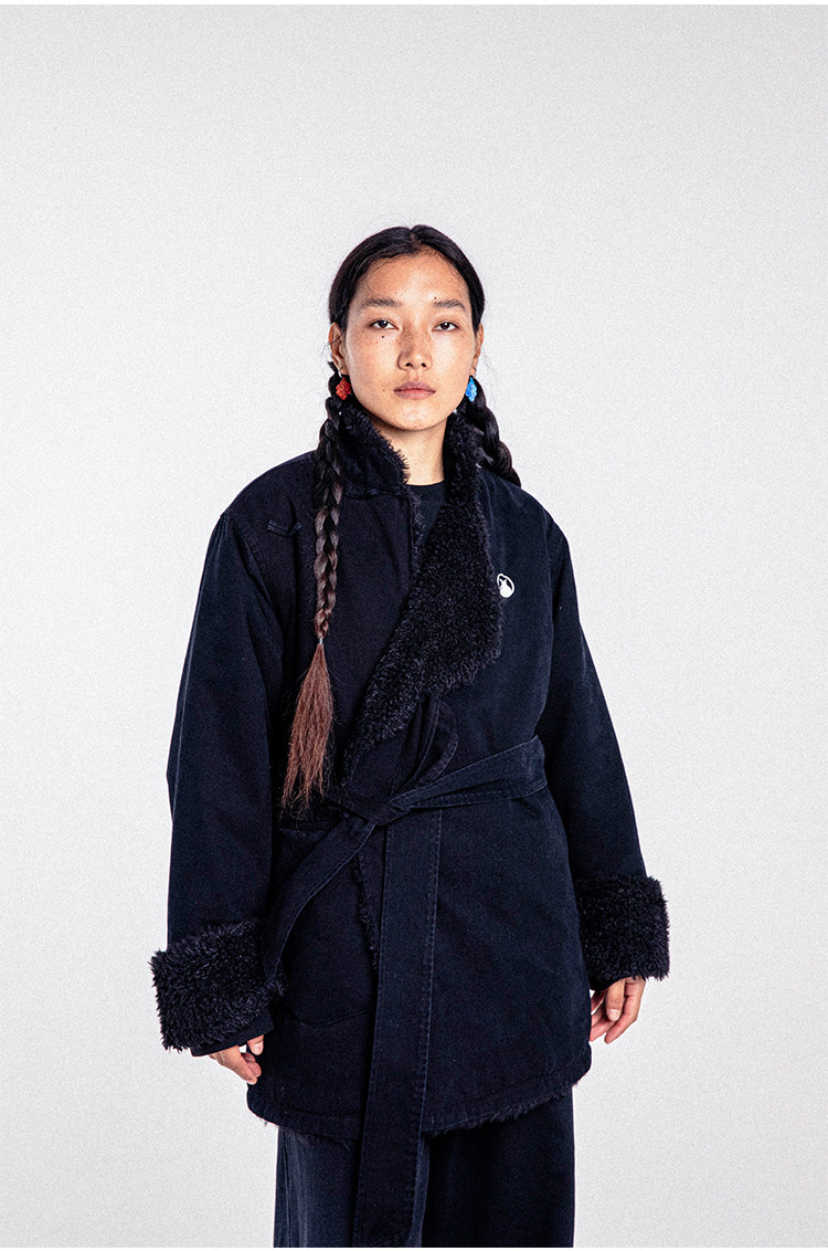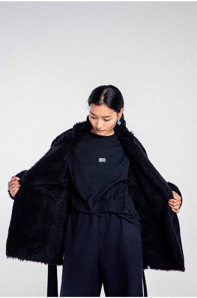 圣山服饰原创设计中长版藏式斜襟绑带毛绒秋冬潮流时装外套通勤 [Original Page Link]
